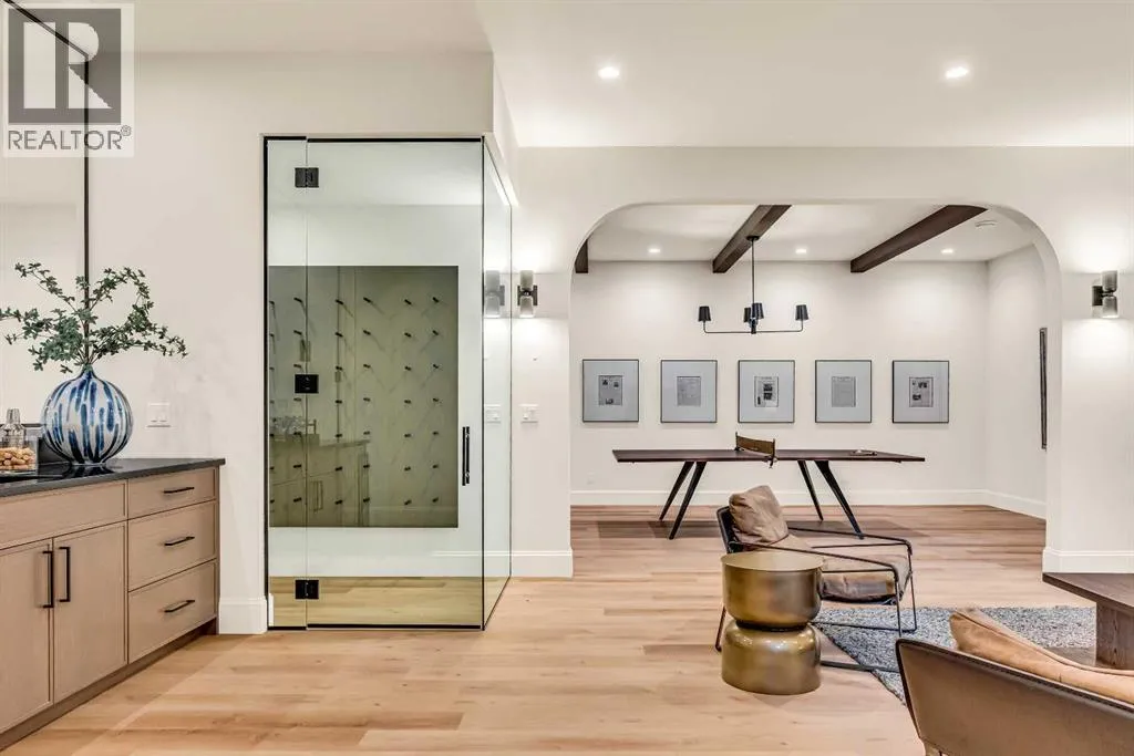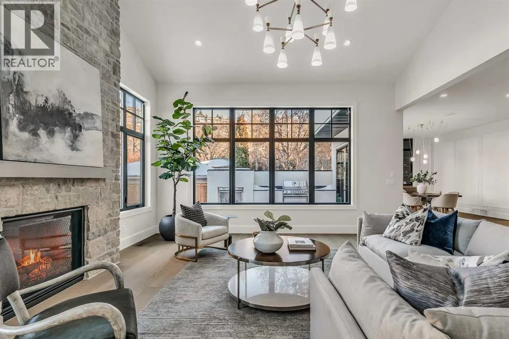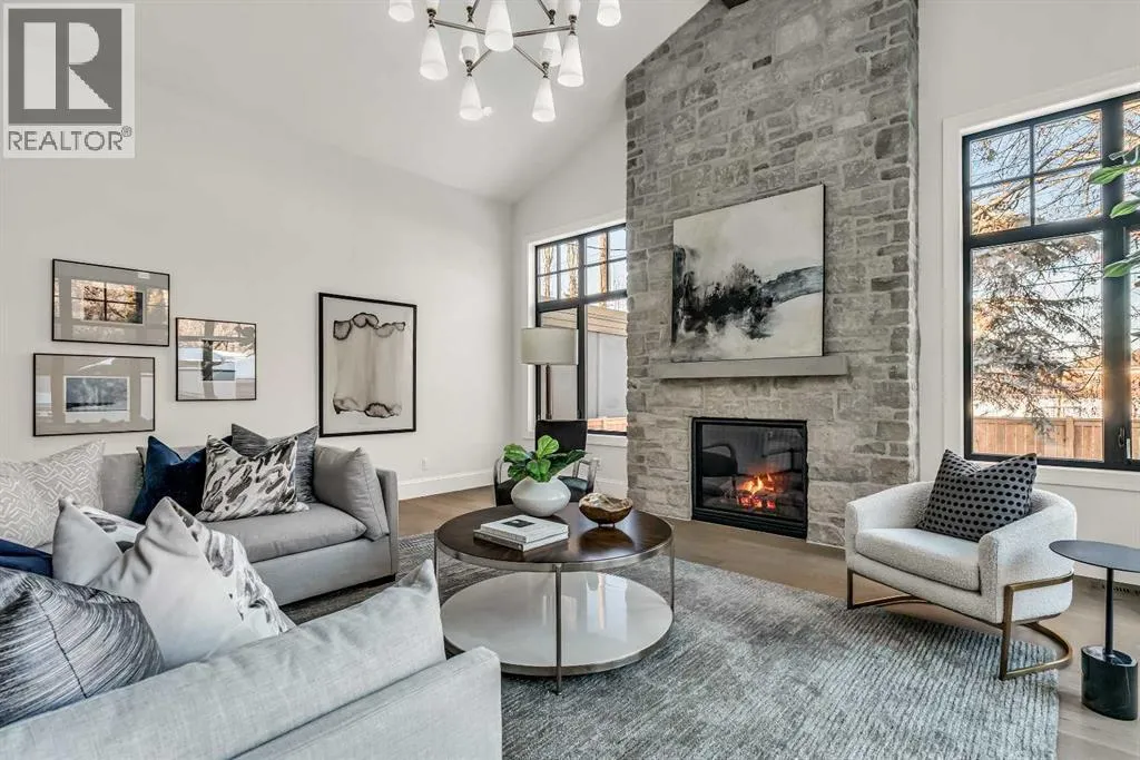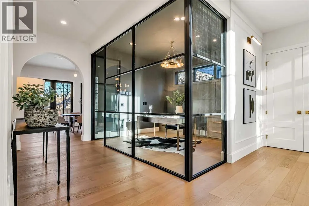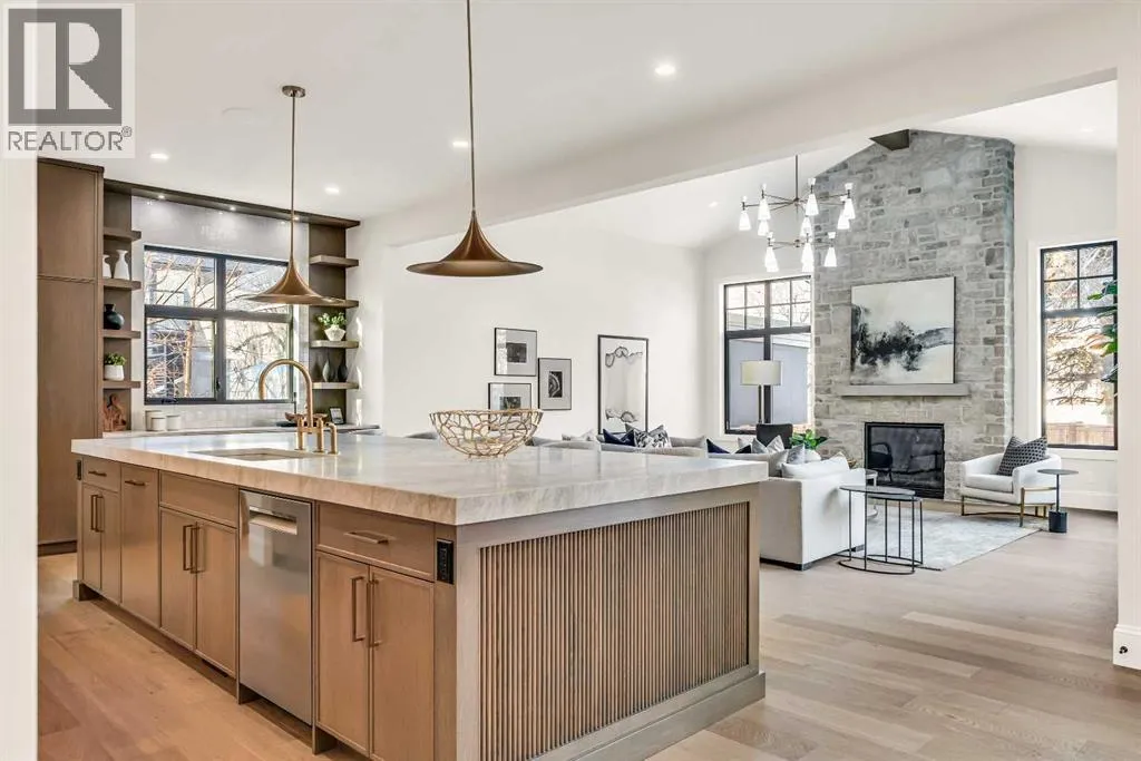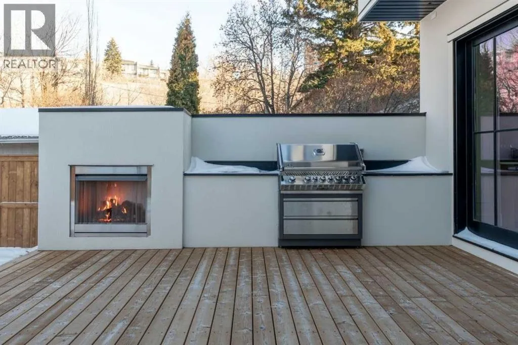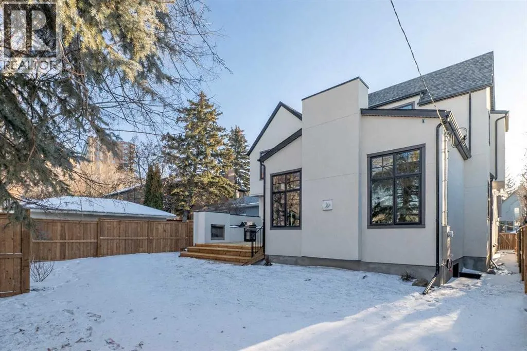 **Open House: Sat Jan 10th & Sun Jan 11th Noon to 2:00 pm each day** Located in a quiet cul-de-sac, this architecturally refined residence NEWLY BUILT by CNJ DEVELOPMENTS offers 4000 SQ FT ABOVE GRADE plus 1897 SQ FT OF FULLY DEVELOPED LOWER LIVING, backing onto green space with DOWNTOWN VIEWS. The main floor is anchored by an ENCLOSED OFFICE with STEEL FRAME GLASS WALLS and CUSTOM BUILT-INS, creating a private, light-filled workspace. A CHEFâS KITCHEN pairs WOLF AND SUB ZERO APPLIANCES with SOLID WOOD DOVETAIL CABINETRY, including a 6-BURNER GAS RANGE, WALL OVEN AND MICROWAVE, and oversized PANELLED FRIDGE AND FREEZER. A BUTLERâS PANTRY with SECOND DISHWASHER adds hosting efficiency, while a DEDICATED DINING ROOM with WET BAR AND SERVING STATION elevates everyday entertaining. FRENCH DOORS connect to the rear DECK AND YARD for indoor-outdoor flow. The living room impresses with VAULTED CEILINGS, EXPOSED WOOD BEAM and a FULL STONE ENCASED GAS FIREPLACE, designed for a future PICTURE FRAME TV. Daily function is supported by a spacious mudroom with OPEN LOCKERS and generous storage, plus a tucked-away powder room finished with DESIGNER WALLPAPER and a FLOATING WATERFALL-EDGE VANITY. The upper level features 9â CEILINGS and a PRIMARY RETREAT with INDEPENDENT HEATING CONTROLS, WET BAR, VAULTED CEILING WITH BEAMS, and DOWNTOWN VIEWS. A spa-calibre ensuite includes an OVERSIZED SHOWER and DUAL VANITY WITH MAKEUP DESK, while a separate WALK-IN CLOSET with CENTER ISLAND delivers exceptional organization. Three additional bedrooms each include WALK-IN CLOSETS. One bedroom features a 4-PIECE ENSUITE, while a separate 5-PIECE MAIN BATH with DUAL VANITY serves the remaining rooms. A well-designed laundry room includes extensive storage and a STEAM CLOSET for garment refreshing. The lower level is built for entertaining with 10â CEILINGS, a WET BAR WITH WINE ROOM, an enclosed GYM with GLASS WALL and INDEPENDENT HEATING CONTROL, a large REC ROOM for games and gathering, and a THE ATRE ROOM equally suited for a FUTURE GOLF SIMULATOR. A 5-PIECE BATHROOM includes SPACE AND ROUGH-IN FOR A SAUNA, alongside a 5th BEDROOM ideal for guests. Outdoor living is elevated with a large DECK featuring a GAS FIREPLACE, and BUILT-IN BBQ. HIGH-END UPGRADES include a COMMERCIAL-GRADE BOILER WITH MULTI-ZONE RADIANT HEAT, TWO A/C UNITS, TRIPLE PANE WINDOWS, SMART THERMOSTATS, 200 AMP PANEL, OPEN WEB JOISTS for flat stable floors, WIRING FOR FUTURE AUTOMATION, and VACUFLO ROUGH-IN. The OVERSIZED DOUBLE ATTACHED GARAGE is INSULATED with EPOXY FLOORING, HYDRONIC IN-FLOOR HEAT, and ROUGH-IN FOR EV CHARGING, plus yard space for RV parking. Rideau Park is one of Calgaryâs most discreet inner-city enclaves, valued for privacy, mature trees, limited through-traffic, and effortless access to downtown. Architectural distinction, thoughtful design, and quiet luxury define this gorgeous home! (id:27476)