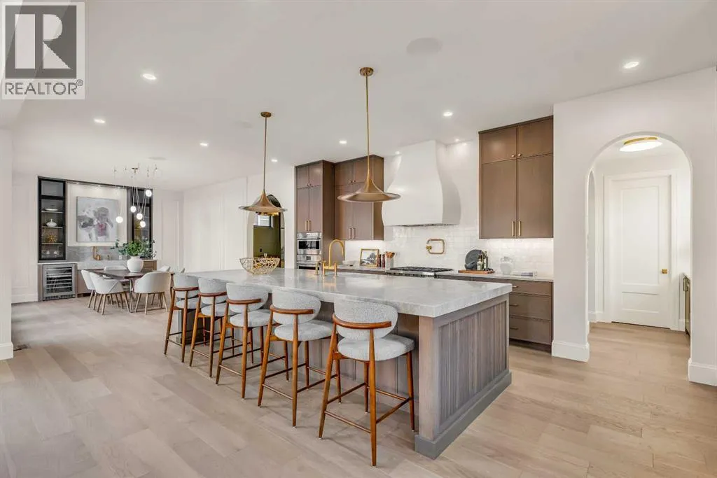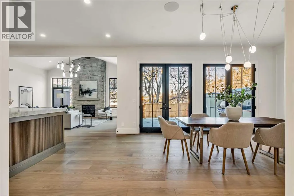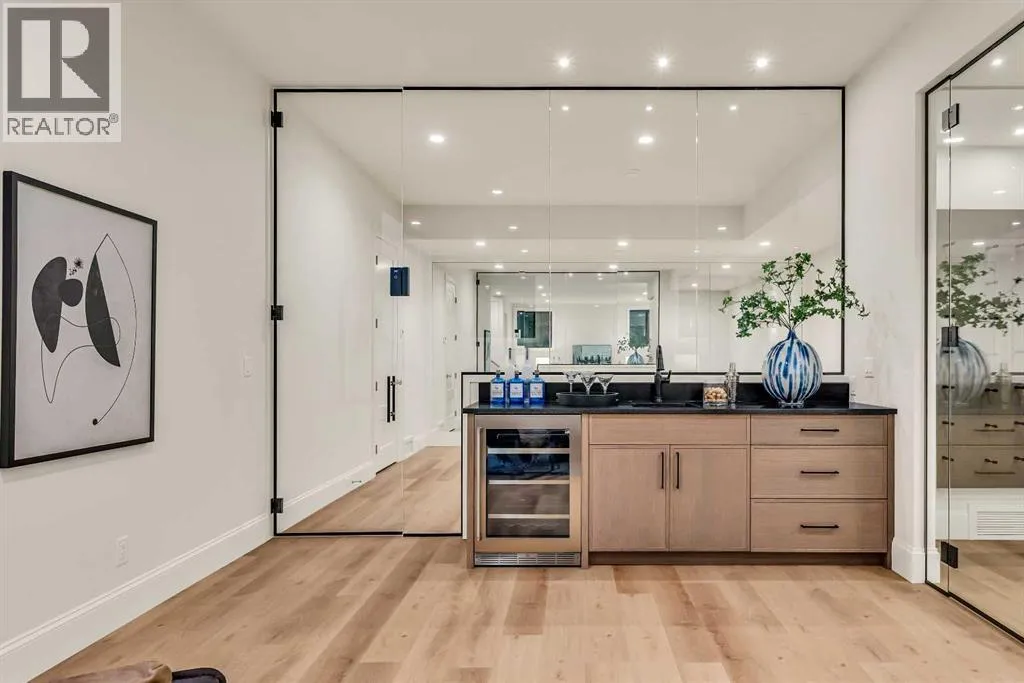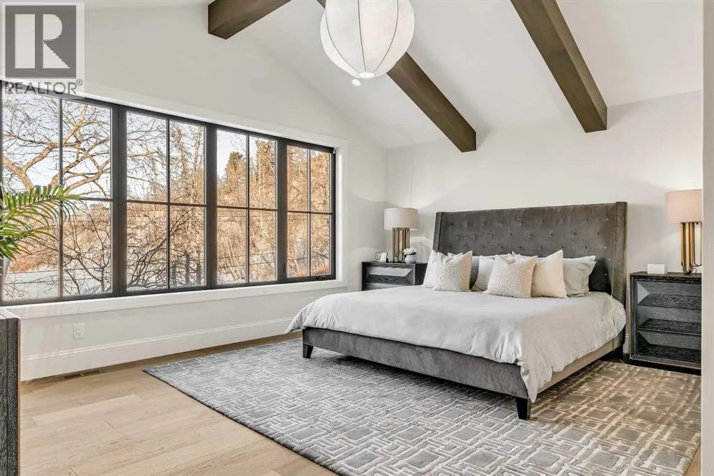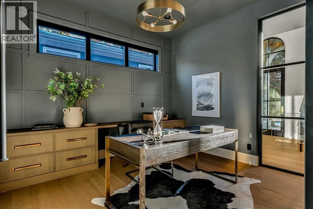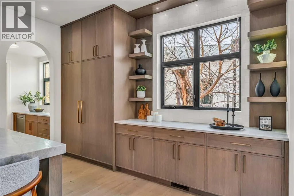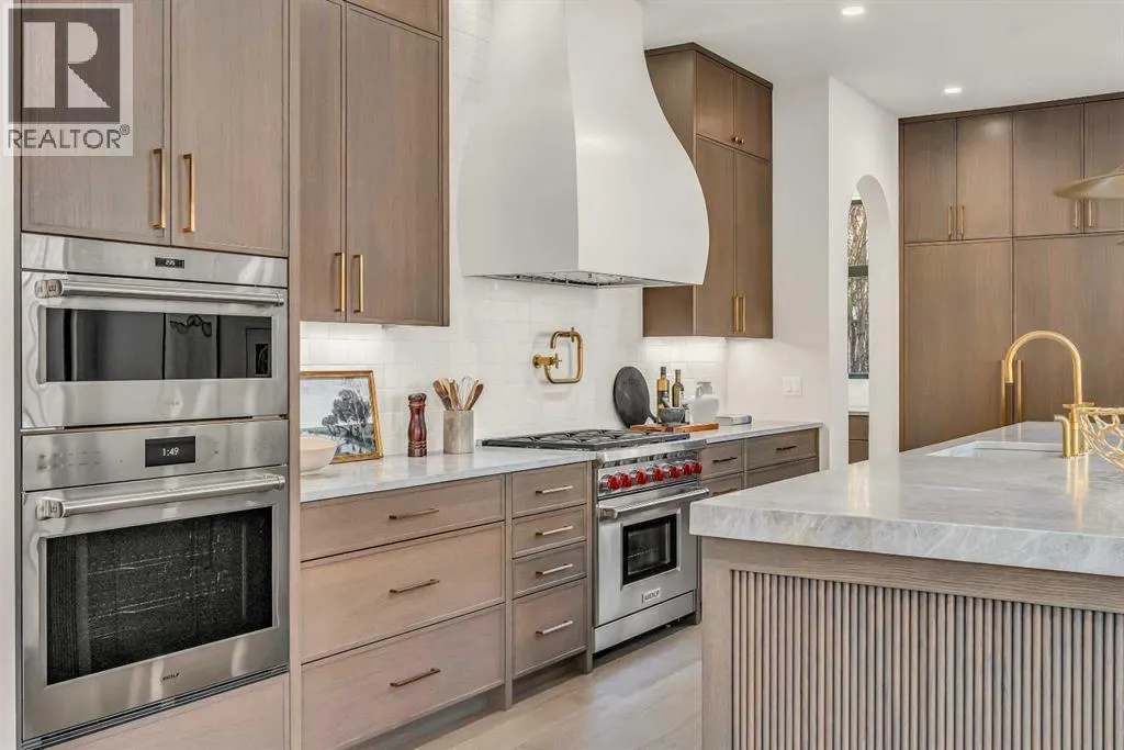 **Open House: Sat Jan 10th & Sun Jan 11th Noon to 2:00 pm each day** Located in a quiet cul-de-sac, this architecturally refined residence NEWLY BUILT by CNJ DEVELOPMENTS offers 4000 SQ FT ABOVE GRADE plus 1897 SQ FT OF FULLY DEVELOPED LOWER LIVING, backing onto green space with DOWNTOWN VIEWS. The main floor is anchored by an ENCLOSED OFFICE with STEEL FRAME GLASS WALLS and CUSTOM BUILT-INS, creating a private, light-filled workspace. A CHEFâS KITCHEN pairs WOLF AND SUB ZERO APPLIANCES with SOLID WOOD DOVETAIL CABINETRY, including a 6-BURNER GAS RANGE, WALL OVEN AND MICROWAVE, and oversized PANELLED FRIDGE AND FREEZER. A BUTLERâS PANTRY with SECOND DISHWASHER adds hosting efficiency, while a DEDICATED DINING ROOM with WET BAR AND SERVING STATION elevates everyday entertaining. FRENCH DOORS connect to the rear DECK AND YARD for indoor-outdoor flow. The living room impresses with VAULTED CEILINGS, EXPOSED WOOD BEAM and a FULL STONE ENCASED GAS FIREPLACE, designed for a future PICTURE FRAME TV. Daily function is supported by a spacious mudroom with OPEN LOCKERS and generous storage, plus a tucked-away powder room finished with DESIGNER WALLPAPER and a FLOATING WATERFALL-EDGE VANITY. The upper level features 9â CEILINGS and a PRIMARY RETREAT with INDEPENDENT HEATING CONTROLS, WET BAR, VAULTED CEILING WITH BEAMS, and DOWNTOWN VIEWS. A spa-calibre ensuite includes an OVERSIZED SHOWER and DUAL VANITY WITH MAKEUP DESK, while a separate WALK-IN CLOSET with CENTER ISLAND delivers exceptional organization. Three additional bedrooms each include WALK-IN CLOSETS. One bedroom features a 4-PIECE ENSUITE, while a separate 5-PIECE MAIN BATH with DUAL VANITY serves the remaining rooms. A well-designed laundry room includes extensive storage and a STEAM CLOSET for garment refreshing. The lower level is built for entertaining with 10â CEILINGS, a WET BAR WITH WINE ROOM, an enclosed GYM with GLASS WALL and INDEPENDENT HEATING CONTROL, a large REC ROOM for games and gathering, and a THE ATRE ROOM equally suited for a FUTURE GOLF SIMULATOR. A 5-PIECE BATHROOM includes SPACE AND ROUGH-IN FOR A SAUNA, alongside a 5th BEDROOM ideal for guests. Outdoor living is elevated with a large DECK featuring a GAS FIREPLACE, and BUILT-IN BBQ. HIGH-END UPGRADES include a COMMERCIAL-GRADE BOILER WITH MULTI-ZONE RADIANT HEAT, TWO A/C UNITS, TRIPLE PANE WINDOWS, SMART THERMOSTATS, 200 AMP PANEL, OPEN WEB JOISTS for flat stable floors, WIRING FOR FUTURE AUTOMATION, and VACUFLO ROUGH-IN. The OVERSIZED DOUBLE ATTACHED GARAGE is INSULATED with EPOXY FLOORING, HYDRONIC IN-FLOOR HEAT, and ROUGH-IN FOR EV CHARGING, plus yard space for RV parking. Rideau Park is one of Calgaryâs most discreet inner-city enclaves, valued for privacy, mature trees, limited through-traffic, and effortless access to downtown. Architectural distinction, thoughtful design, and quiet luxury define this gorgeous home! (id:27476)