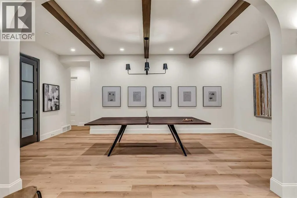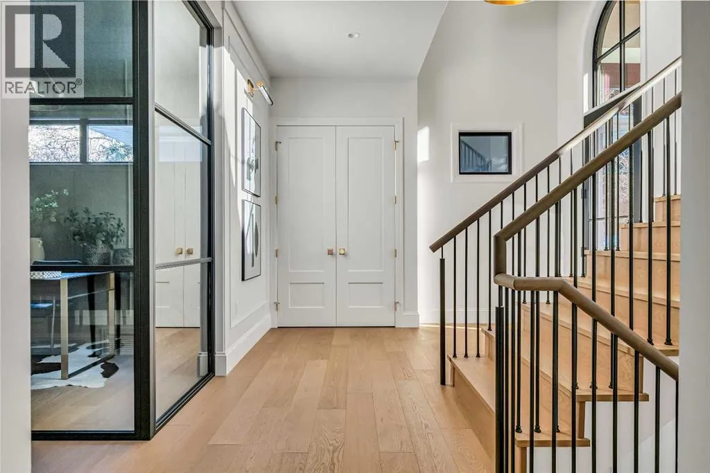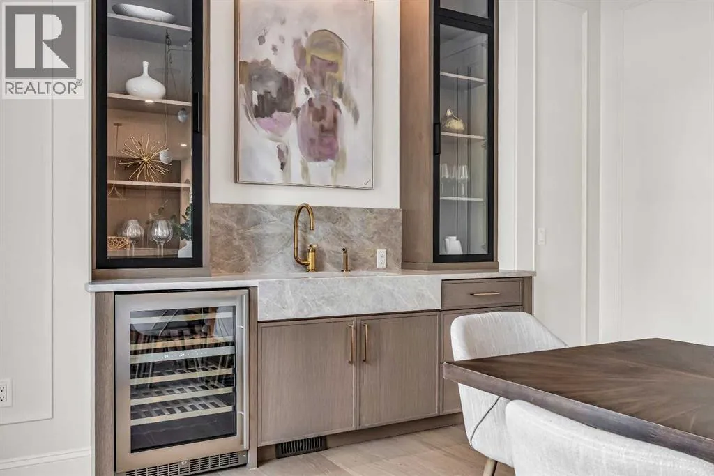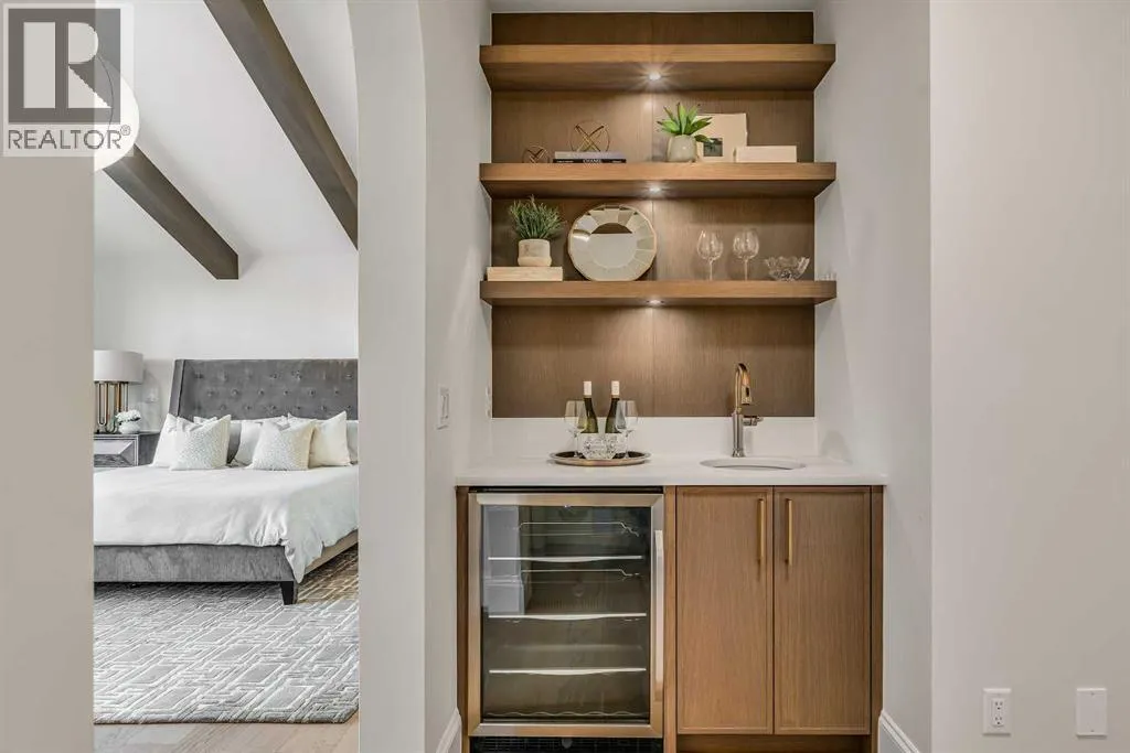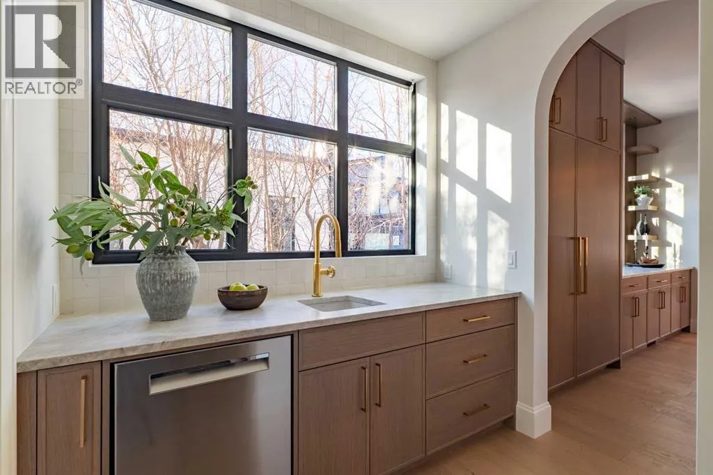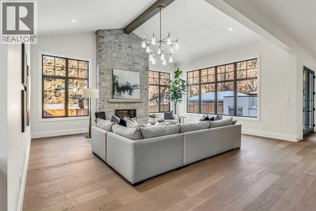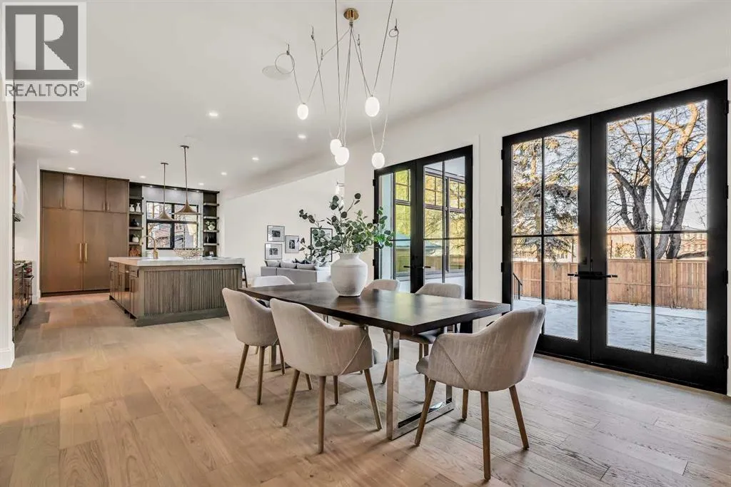 **Open House: Sat Jan 10th & Sun Jan 11th Noon to 2:00 pm each day** Located in a quiet cul-de-sac, this architecturally refined residence NEWLY BUILT by CNJ DEVELOPMENTS offers 4000 SQ FT ABOVE GRADE plus 1897 SQ FT OF FULLY DEVELOPED LOWER LIVING, backing onto green space with DOWNTOWN VIEWS. The main floor is anchored by an ENCLOSED OFFICE with STEEL FRAME GLASS WALLS and CUSTOM BUILT-INS, creating a private, light-filled workspace. A CHEFâS KITCHEN pairs WOLF AND SUB ZERO APPLIANCES with SOLID WOOD DOVETAIL CABINETRY, including a 6-BURNER GAS RANGE, WALL OVEN AND MICROWAVE, and oversized PANELLED FRIDGE AND FREEZER. A BUTLERâS PANTRY with SECOND DISHWASHER adds hosting efficiency, while a DEDICATED DINING ROOM with WET BAR AND SERVING STATION elevates everyday entertaining. FRENCH DOORS connect to the rear DECK AND YARD for indoor-outdoor flow. The living room impresses with VAULTED CEILINGS, EXPOSED WOOD BEAM and a FULL STONE ENCASED GAS FIREPLACE, designed for a future PICTURE FRAME TV. Daily function is supported by a spacious mudroom with OPEN LOCKERS and generous storage, plus a tucked-away powder room finished with DESIGNER WALLPAPER and a FLOATING WATERFALL-EDGE VANITY. The upper level features 9â CEILINGS and a PRIMARY RETREAT with INDEPENDENT HEATING CONTROLS, WET BAR, VAULTED CEILING WITH BEAMS, and DOWNTOWN VIEWS. A spa-calibre ensuite includes an OVERSIZED SHOWER and DUAL VANITY WITH MAKEUP DESK, while a separate WALK-IN CLOSET with CENTER ISLAND delivers exceptional organization. Three additional bedrooms each include WALK-IN CLOSETS. One bedroom features a 4-PIECE ENSUITE, while a separate 5-PIECE MAIN BATH with DUAL VANITY serves the remaining rooms. A well-designed laundry room includes extensive storage and a STEAM CLOSET for garment refreshing. The lower level is built for entertaining with 10â CEILINGS, a WET BAR WITH WINE ROOM, an enclosed GYM with GLASS WALL and INDEPENDENT HEATING CONTROL, a large REC ROOM for games and gathering, and a THE ATRE ROOM equally suited for a FUTURE GOLF SIMULATOR. A 5-PIECE BATHROOM includes SPACE AND ROUGH-IN FOR A SAUNA, alongside a 5th BEDROOM ideal for guests. Outdoor living is elevated with a large DECK featuring a GAS FIREPLACE, and BUILT-IN BBQ. HIGH-END UPGRADES include a COMMERCIAL-GRADE BOILER WITH MULTI-ZONE RADIANT HEAT, TWO A/C UNITS, TRIPLE PANE WINDOWS, SMART THERMOSTATS, 200 AMP PANEL, OPEN WEB JOISTS for flat stable floors, WIRING FOR FUTURE AUTOMATION, and VACUFLO ROUGH-IN. The OVERSIZED DOUBLE ATTACHED GARAGE is INSULATED with EPOXY FLOORING, HYDRONIC IN-FLOOR HEAT, and ROUGH-IN FOR EV CHARGING, plus yard space for RV parking. Rideau Park is one of Calgaryâs most discreet inner-city enclaves, valued for privacy, mature trees, limited through-traffic, and effortless access to downtown. Architectural distinction, thoughtful design, and quiet luxury define this gorgeous home! (id:27476)