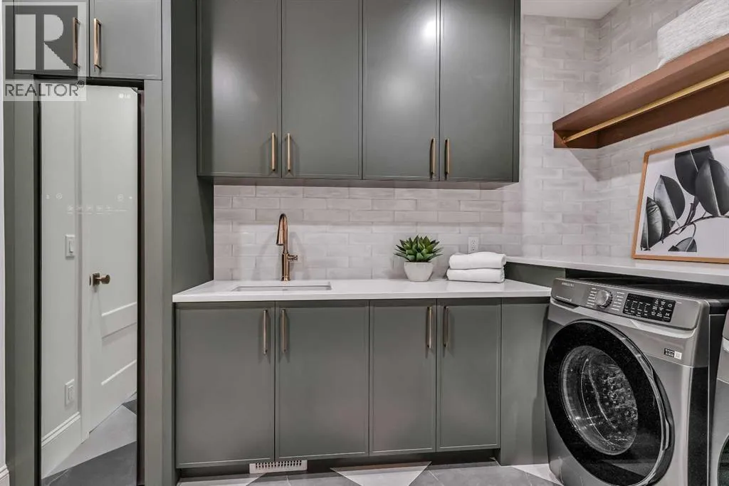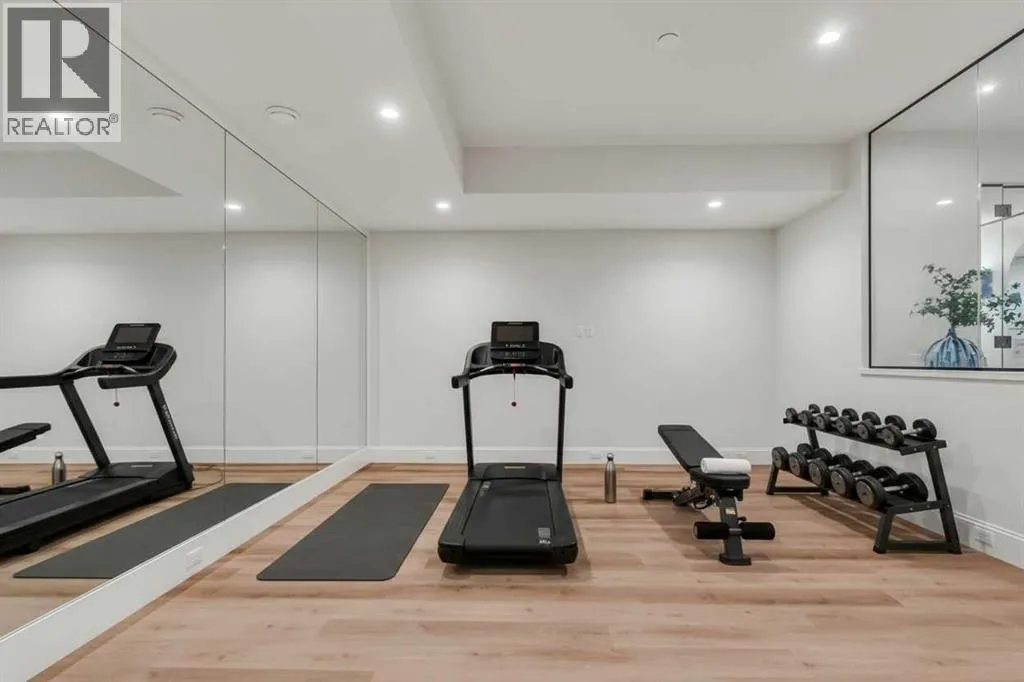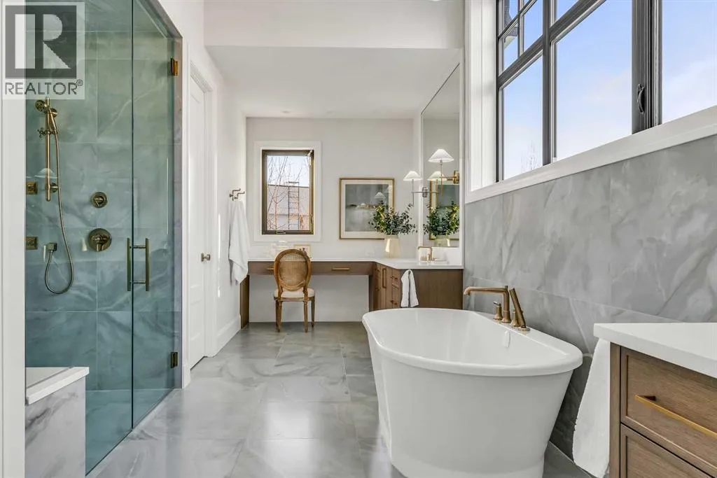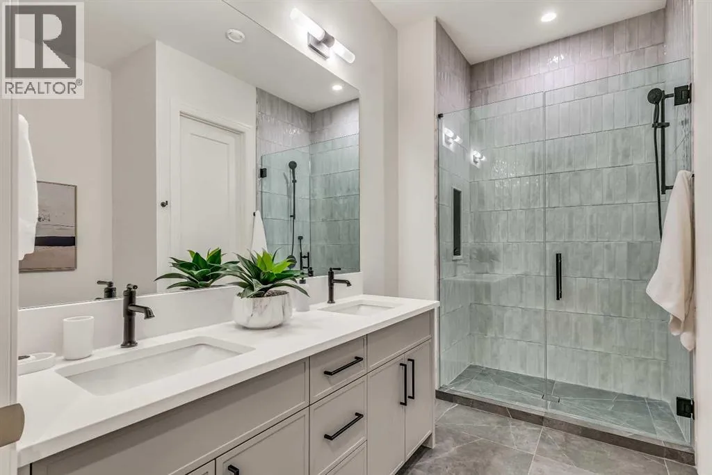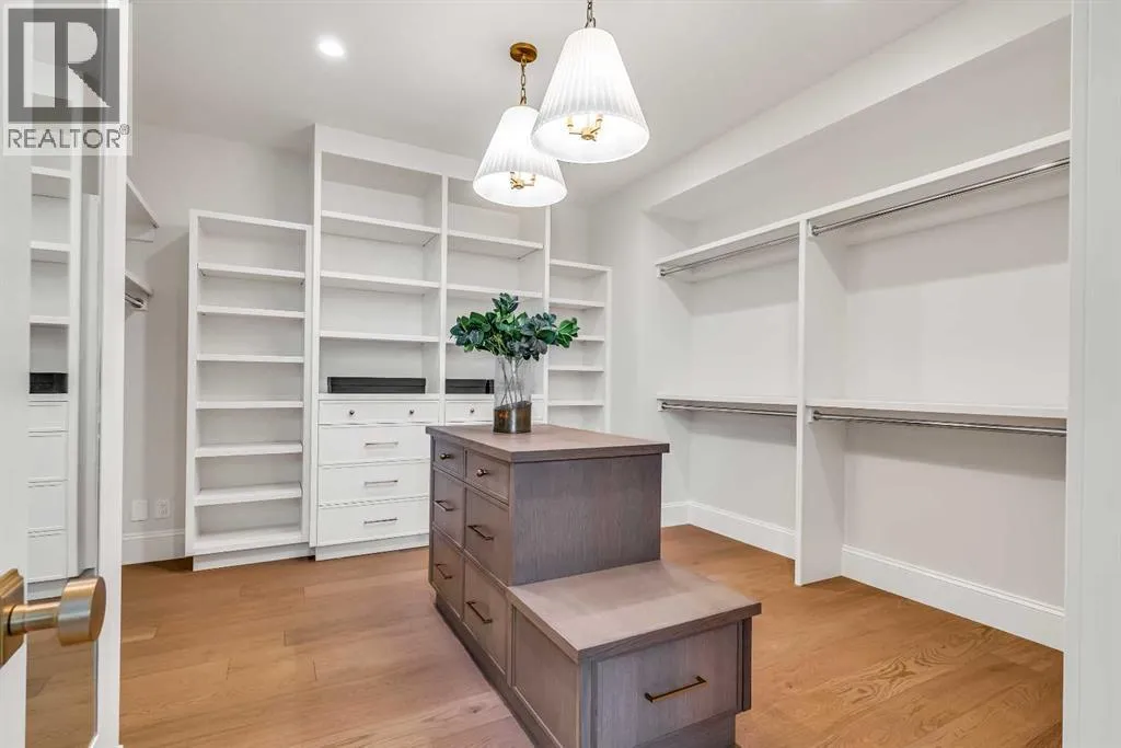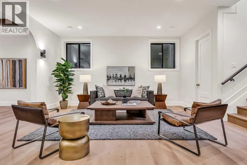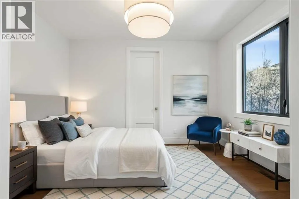 **Open House: Sat Jan 10th & Sun Jan 11th Noon to 2:00 pm each day** Located in a quiet cul-de-sac, this architecturally refined residence NEWLY BUILT by CNJ DEVELOPMENTS offers 4000 SQ FT ABOVE GRADE plus 1897 SQ FT OF FULLY DEVELOPED LOWER LIVING, backing onto green space with DOWNTOWN VIEWS. The main floor is anchored by an ENCLOSED OFFICE with STEEL FRAME GLASS WALLS and CUSTOM BUILT-INS, creating a private, light-filled workspace. A CHEFâS KITCHEN pairs WOLF AND SUB ZERO APPLIANCES with SOLID WOOD DOVETAIL CABINETRY, including a 6-BURNER GAS RANGE, WALL OVEN AND MICROWAVE, and oversized PANELLED FRIDGE AND FREEZER. A BUTLERâS PANTRY with SECOND DISHWASHER adds hosting efficiency, while a DEDICATED DINING ROOM with WET BAR AND SERVING STATION elevates everyday entertaining. FRENCH DOORS connect to the rear DECK AND YARD for indoor-outdoor flow. The living room impresses with VAULTED CEILINGS, EXPOSED WOOD BEAM and a FULL STONE ENCASED GAS FIREPLACE, designed for a future PICTURE FRAME TV. Daily function is supported by a spacious mudroom with OPEN LOCKERS and generous storage, plus a tucked-away powder room finished with DESIGNER WALLPAPER and a FLOATING WATERFALL-EDGE VANITY. The upper level features 9â CEILINGS and a PRIMARY RETREAT with INDEPENDENT HEATING CONTROLS, WET BAR, VAULTED CEILING WITH BEAMS, and DOWNTOWN VIEWS. A spa-calibre ensuite includes an OVERSIZED SHOWER and DUAL VANITY WITH MAKEUP DESK, while a separate WALK-IN CLOSET with CENTER ISLAND delivers exceptional organization. Three additional bedrooms each include WALK-IN CLOSETS. One bedroom features a 4-PIECE ENSUITE, while a separate 5-PIECE MAIN BATH with DUAL VANITY serves the remaining rooms. A well-designed laundry room includes extensive storage and a STEAM CLOSET for garment refreshing. The lower level is built for entertaining with 10â CEILINGS, a WET BAR WITH WINE ROOM, an enclosed GYM with GLASS WALL and INDEPENDENT HEATING CONTROL, a large REC ROOM for games and gathering, and a THE ATRE ROOM equally suited for a FUTURE GOLF SIMULATOR. A 5-PIECE BATHROOM includes SPACE AND ROUGH-IN FOR A SAUNA, alongside a 5th BEDROOM ideal for guests. Outdoor living is elevated with a large DECK featuring a GAS FIREPLACE, and BUILT-IN BBQ. HIGH-END UPGRADES include a COMMERCIAL-GRADE BOILER WITH MULTI-ZONE RADIANT HEAT, TWO A/C UNITS, TRIPLE PANE WINDOWS, SMART THERMOSTATS, 200 AMP PANEL, OPEN WEB JOISTS for flat stable floors, WIRING FOR FUTURE AUTOMATION, and VACUFLO ROUGH-IN. The OVERSIZED DOUBLE ATTACHED GARAGE is INSULATED with EPOXY FLOORING, HYDRONIC IN-FLOOR HEAT, and ROUGH-IN FOR EV CHARGING, plus yard space for RV parking. Rideau Park is one of Calgaryâs most discreet inner-city enclaves, valued for privacy, mature trees, limited through-traffic, and effortless access to downtown. Architectural distinction, thoughtful design, and quiet luxury define this gorgeous home! (id:27476)