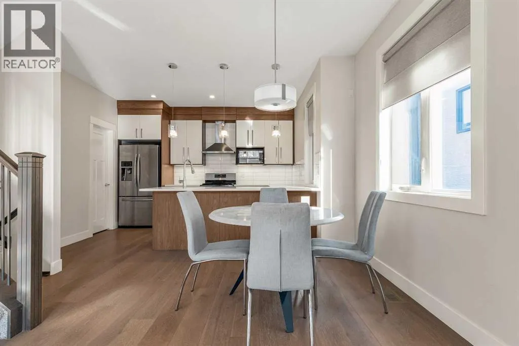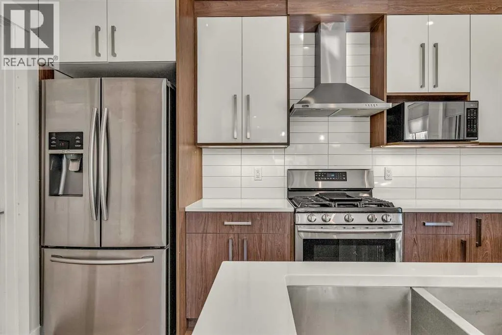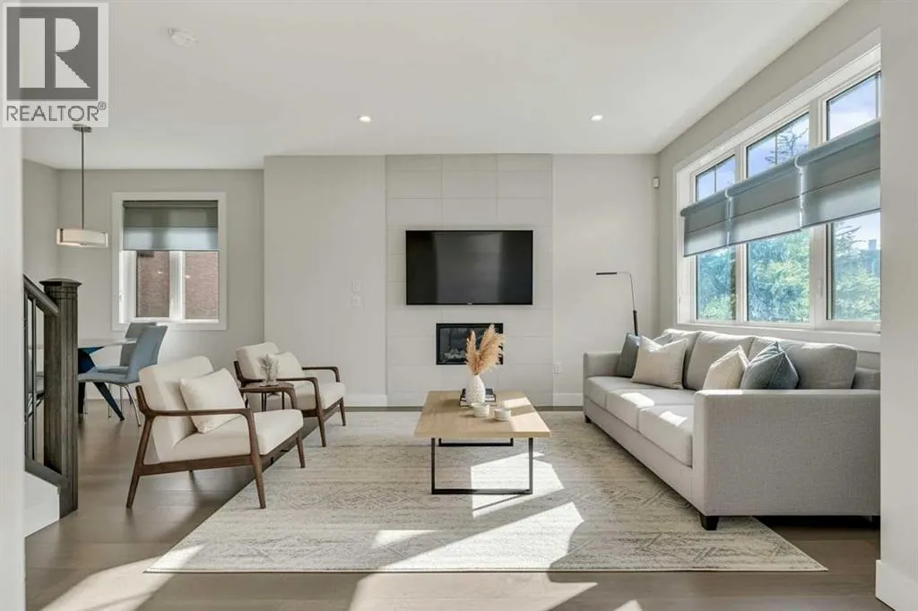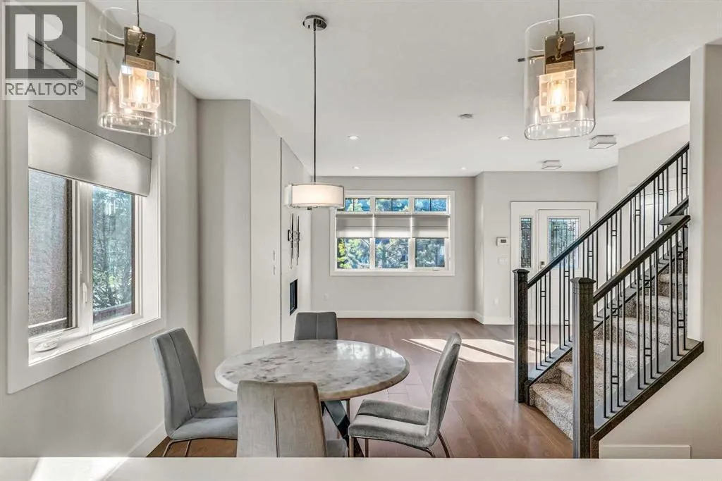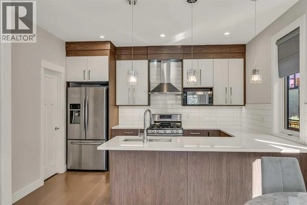 ***OPEN HOUSE DATES: Saturday, Jan 10th and Sunday, Jan 11th 12:00pm - 4:00pm each day*** FRONT UNIT with WEST EXPOSURE, CENTRAL AC, and a thoughtful layout designed for comfort and flexibility. NATURAL LIGHT fills the main level where a front living room overlooks the street and a GAS FIREPLACE with floor-to-ceiling tile adds a relaxing focal point. Wide-plank HARDWOOD floors extend into a central dining area with a table and chairs included. The modern kitchen is appointed with QUARTZ COUNTERTOPS, a peninsula island, GAS STOVE, FULL HEIGHT CABINETS, CORNER PANTRY, and stainless steel appliances. A tucked-away powder room completes the main floor. Upstairs, a SKYLIGHT brightens the stairwell and illuminates the upper level. The primary bedroom is spacious with a COFFERED CEILING, WALK-IN CLOSET with BUILT-IN ORGANIZERS, and a LUXURIOUS ENSUITE featuring a DUAL VANITY and STAND-UP SHOWER. A second bedroom includes its own 4PC ENSUITE with skylight, creating a DUAL PRIMARY FLOORPLAN ideal for guests, roommates, or family members. The FINISHED BASEMENT expands the living space with a rec room perfect for movie or game nights, a THIRD BEDROOM that offers flexibility for guests, a teenagerâs retreat, or a quiet home office, a 3PC BATH with a sleek stand-up shower for modern convenience, and a thoughtfully placed laundry area with washer/dryer included for everyday practicality. Outside, a PRIVATE FRONT COURTYARD creates ample outdoor space to barbeque and unwind, complemented by low-maintenance landscaping. A SINGLE GARAGE provides secure parking and storage. Situated in the established neighborhood of KILLARNEY/GLENGARRY, this home balances quiet residential streets with urban convenience. Westbrook LRT, Killarney Aquatic Centre, and numerous local parks are nearby along with schools, coffee shops, and restaurants on 17th Avenue. Quick access to downtown and major routes ensures effortless connectivity. This thoughtfully designed residence combines style, comfort, and a walkable location for a lifestyle that feels both connected and at ease. (id:27476)