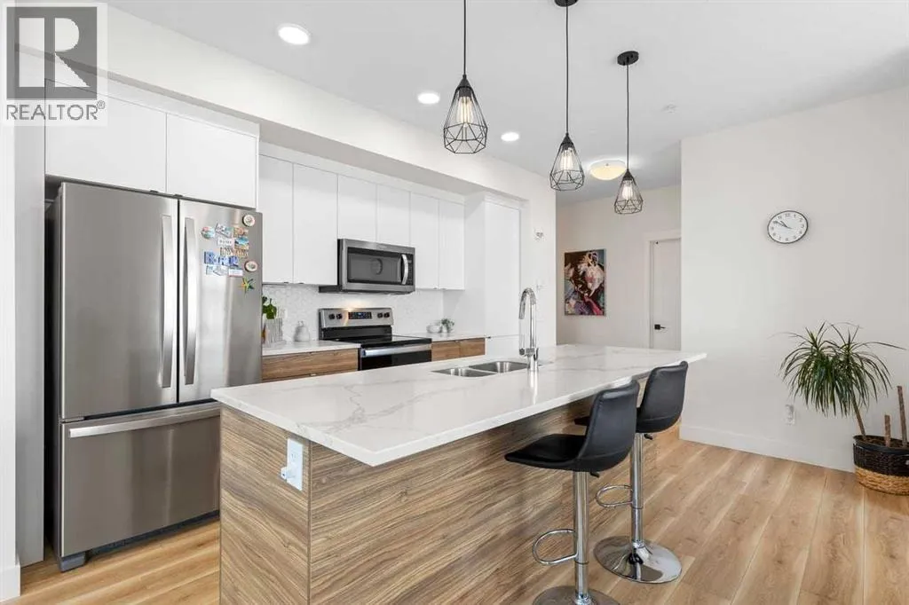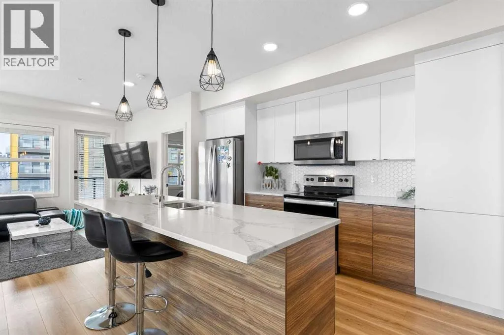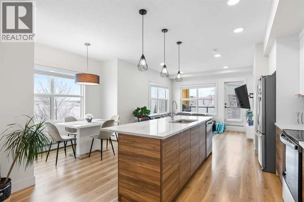 DISCOVER THS BRIGHT, WELL-MAINTAINED, OPEN-CONCEPT, CORNER CONDO LOCATED IN THE COMMUNITY OF SETON boasting modern finishes, 9-foot ceilings, and expansive natural light from large windows. The spacious layout centers around a bright dining area and a convenient kitchen layout featuring a LARGE CENTRAL ISLAND, STYLISH CABINETS, QUARTZ COUNTERTOPS, and STAINLESS STEEL APPLIANCES... perfect for everyday meals or entertaining guests. Retreat to the comfortable primary bedroom, complete with a walk-in closet and a luxurious 5-PIECE ENSUITE. This unit also includes a second 4 piece bathroom, ensuring comfort and convenience for guests or roommates. Step outside to a LARGE BALCONY that extends your living space outdoors, while the convenience of UNDERGROUND TITLED PARKING and a TITLED STORAGE LOCKER adds practical appeal. Located in excellent community of Seton, youâll be walking distance to essential amenities including South Health Campus, JCS High School, YMCA, Superstore, Cineplex, banks, restaurants, and professional services, with quick and easy access to Deerfoot Trail for commuting and exploring the area. DON'T MISS THE OPPORTUNITY to own this bright, modern home that blends comfort, style, and an unbeatable location. BOOK YOUR SHOWING TODAY! (id:27476)