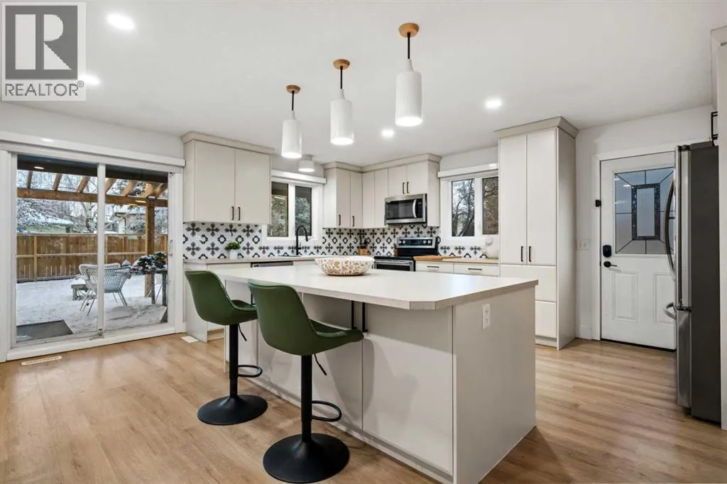 Welcome to this bright and beautifully updated bungalow in the heart of Deer Run, just steps from the incredible pathways and natural beauty of Fish Creek Park. Vaulted ceilings and an inviting open layout create a warm, airy feel throughout the main floor. The thoughtfully renovated open-concept kitchen features a large island, generous pantry space, and flows seamlessly into the living and formal dining areas and is perfect for everyday living and entertaining. Cozy up by the wood-burning fireplace or enjoy hosting family and friends in this welcoming space.The main level offers three spacious bedrooms, including a primary retreat with a 2-piece ensuite that can easily accommodate a shower, plus a large, updated main bath. Downstairs, the fully developed basement includes a comfortable family room, an additional bedroom, a 3-piece bathroom, a dedicated workshop area, and a separate laundry room. This space is ideal for guests, hobbies, or extended family living. Recent upgrades include a brand NEW FURNACE DEC 2025, HOT WATER TANK 2025, NEW ROOF 2021. Step outside to enjoy both a front and back decks with extra access from the primary bedroom. This yard is massive and incredibly private. There is also a convenient parking pad. This unbeatable location offers quick access to Deerfoot Trail and Macleod Trail, is close to schools and Deer Valley Shopping Centre, and is just minutes from Sikome Lake, a public lake with a sandy beach, playgrounds, and picnic areas. A fantastic opportunity to enjoy space, comfort, and one of Calgaryâs best outdoor lifestyles! Call for a private viewing today. (id:27476)