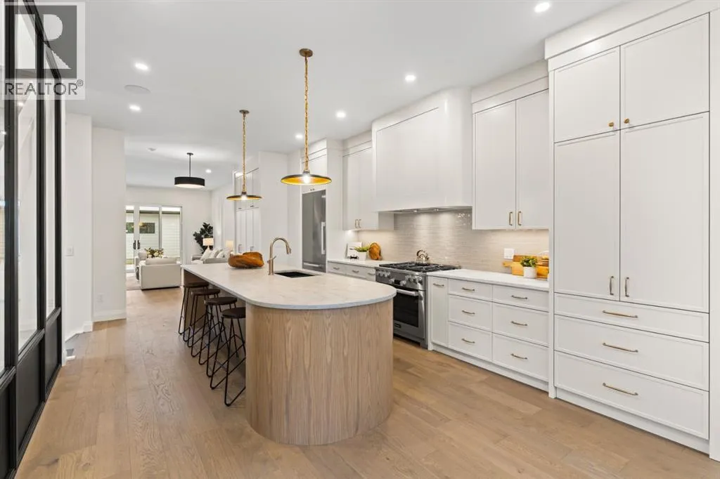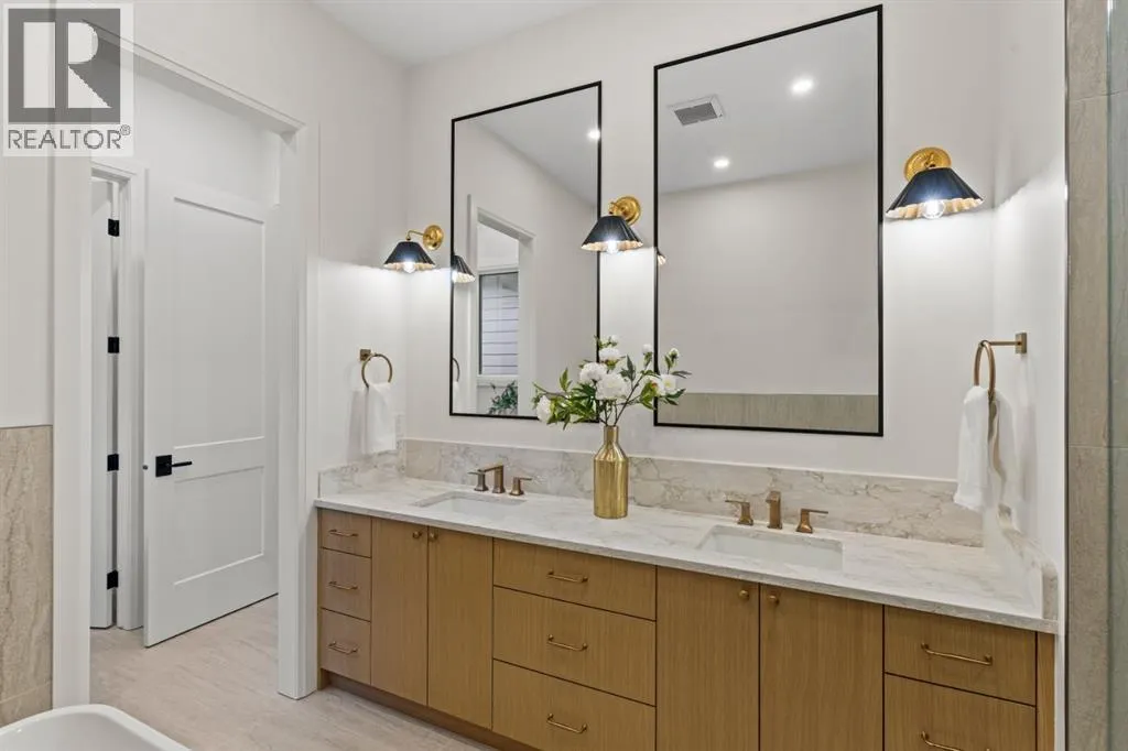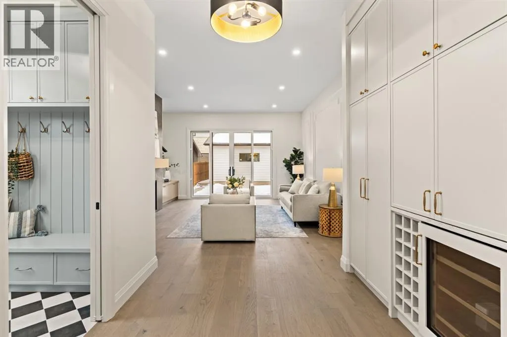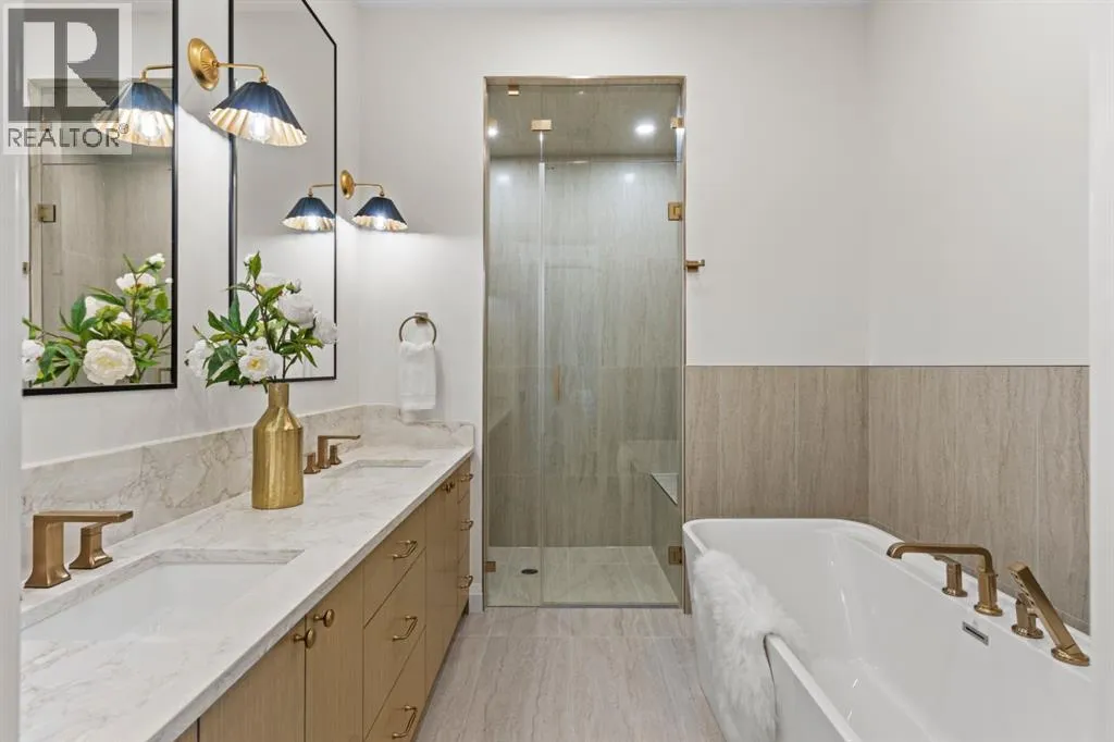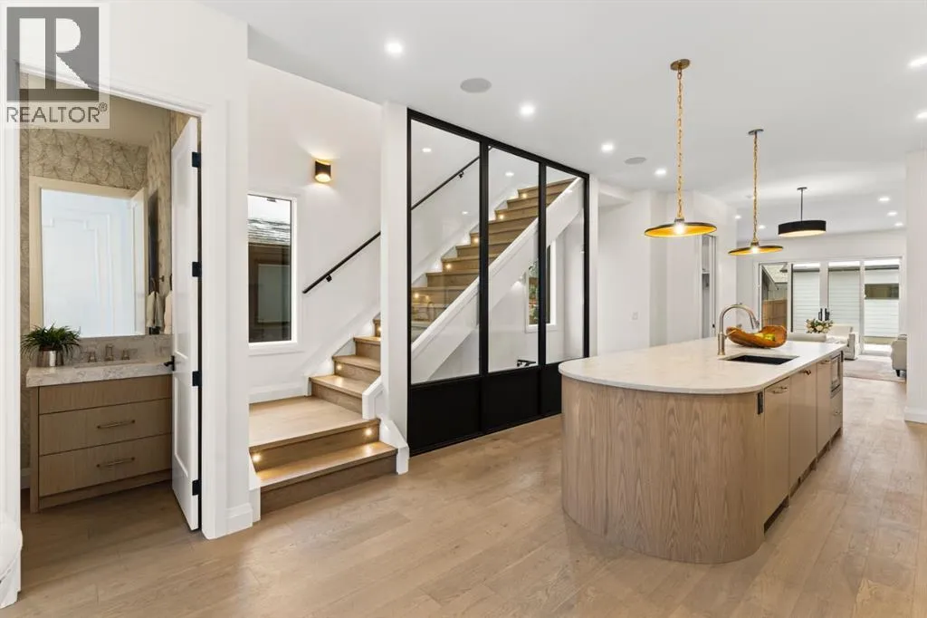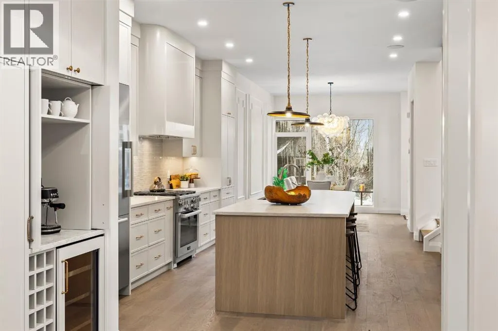 Open House Sat **CANCELLED**. Welcome to The Vega â a beautifully crafted home by Cedar Rock Homes, set on one of Briar Hillâs most desirable streets. This four-bedroom, 3.5-bath residence offers over 3,200 sq ft of developed living space on an oversized 130-foot-deep lot. Architectural elegance meets thoughtful functionality and elevated finishes to create a space that feels both sophisticated and comfortable.Step inside to soaring 10-foot ceilings, wide-plank white oak floors, and natural light that fills every corner. The open-concept main floor flows seamlessly from the chefâs kitchen â complete with custom millwork and a full Miele appliance package â to the inviting living area anchored by a sleek gas fireplace and full dining space perfect for family gatherings and entertaining.With 10-foot ceilings on the upper floor and vaulted bedrooms, the primary suite feels like a private retreat, featuring heated floors, a curbless steam shower, freestanding tub, and dual walk-in closets. Two additional bedrooms â each with walk-in closets â share a spacious five-piece bath, while a pocket office provides a quiet spot to work or study.The lower level offers room to live and play, with a large family area, wet bar, home gym, fourth bedroom, full bathroom, and roughed in infloor heating â ideal for guests or extended family.Outside, enjoy quiet evenings in your private yard or coffee on the front courtyard patio. With a double detached fully insulated, drywalled and painted garage, smart-home wiring, and high-efficiency mechanicals, every detail has been designed for lasting comfort and performance.Nestled in Briar Hill, one of Calgaryâs premier inner-city communities, youâre just minutes from Kensington, Foothills Hospital, SAIT, the University of Calgary, and some of the cityâs best parks and schools.The Vega â modern living, perfectly grounded in a classic Calgary neighbourhood. Book your private showing today! (id:27476)