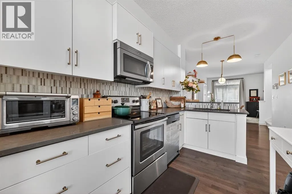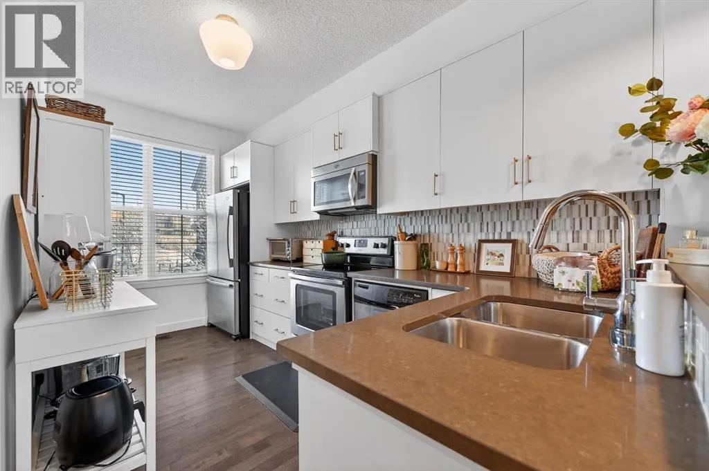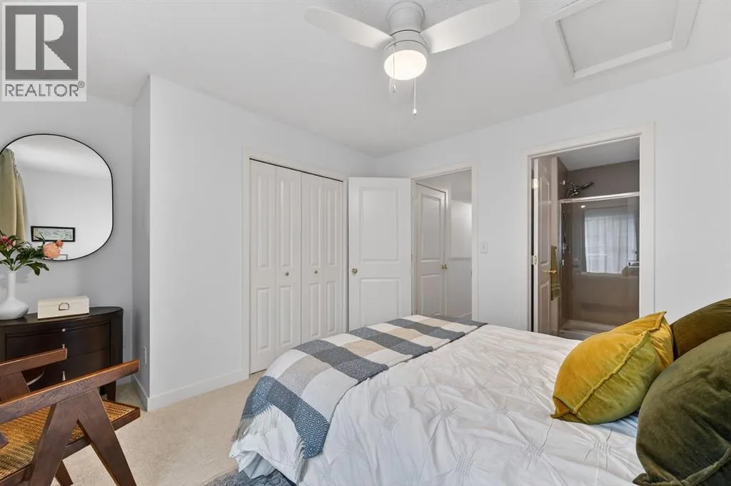 Welcome to this beautifully updated townhome in The Enclave, a sought-after complex nestled in the heart of Castle Keep. Perfectly positioned on the west side of Aspen Woods, this home offers the best of both worldsâpeaceful surroundings with the convenience of Aspen Landing, Blush Lane, and everyday amenities just a short walk away.Tucked away from the main road, this unit enjoys a sunny west-facing balcony, filling the home with natural light throughout the day. The main floor features rich hardwood flooring, stainless steel appliances, and a bright, open-concept layout ideal for both everyday living and entertaining. The kitchen has been tastefully refreshed with a crisp white colour palette, complemented by new lighting, fresh paint, and new carpet throughout.Upstairs, the thoughtful dual primary bedroom layout offers two spacious bedrooms, each with its own ensuite, along with convenient upper-level laundry. The quality of finishing throughout the home is evident and beautifully maintained.The double tandem garage provides ample room for two vehicles or additional storage, adding to the homeâs functionality. Set in a serene and walkable location, youâll love being close to nature pathways, charming coffee spots, and quick access to the mountains for weekend escapes.All of thisâand offered at the best price in Castle Keep! Call today for your private showing! (id:27476)