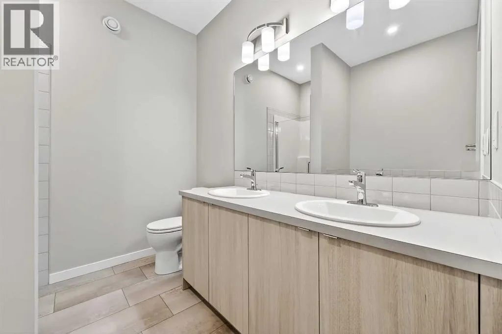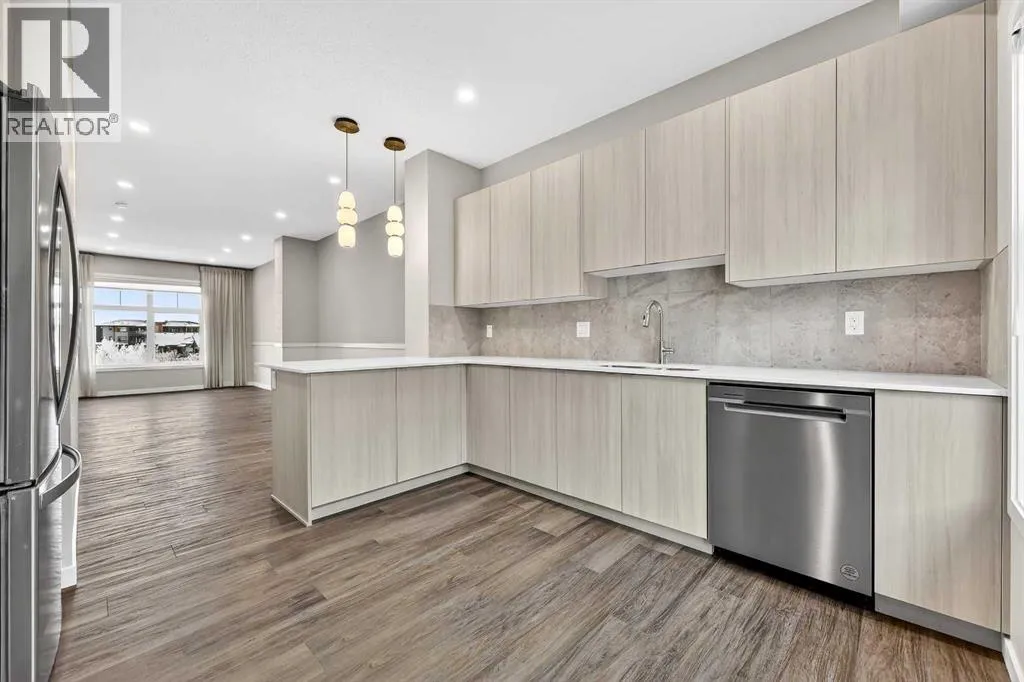 Welcome home to Jayman's beautiful former Show Home. The newest addition to Jayman BUILT's Resort Living Collection are the luxurious, maintenance-free townhomes of Park Place, anchored on Mahogany's Central Green. A 13 acre green space sporting pickle ball courts, tennis courts, community gardens and an Amphitheatre. Discover the MOSCATO! An elevated townhome with North and South exposures featuring a SHOW HOME CUSTOM SELECTED ELEVATED COLOUR PALETTE. You will love this palette - The ELEVATED package includes wood-like grain cabinetry throughout. Eye catching tile at kitchen backsplash. Luxurious quartz countertops in the kitchen and extended island. Premium luxury flooring at bathrooms and laundry and luxury vinyl plank flooring on the main. Complimentary modern cabinet hardware and interior door hardware throughout. Stunning pendant light fixtures over kitchen eating bar along with stylish vanity fixtures. The home welcomes you into over 1300 sq ft of developed fine living showcasing 2 PRIMARY BEDROOMS each with their very own private ensuite and a SINGLE ATTACHED HEATED GARAGE. The thoughtfully designed open floor plan offers a beautiful kitchen boasting a sleek Whirlpool appliance package, undermount sinks through out, a contemporary lighting package, Moen kitchen fixtures, Vichey bathroom fixtures, quartz counter tops in the kitchen, foyer area on the lower level with a sizeable flex space with feature wall for additional living, air conditioning and EV rough-in plug. Enjoy the expansive main living area that has room for a designated dining area and enjoyable living room complimented with a nice selection of windows making this home bright and airy along with a stunning linear site line with a deck and patio for your leisure. The TWO Primary Bedrooms on the upper level, both includes a generous walk-in closet with private ensuites with one boasting a 5 piece oasis featuring dual vanities, stand alone shower and large soaker tub. Park Place home owners will enjoy fully landscaped and fenced yards, lake access, 22km of community pathways and is conveniently located close to the shops and services of Mahogany and Westman Village. Jayman's standard inclusions for this stunning home are 6 solar panels, BuiltGreen Canada Standard, with an EnerGuide rating, UVC ultraviolet light air purification system, high efficiency furnace with Merv 13 filters, active heat recovery ventilator, tankless hot water heater, triple pane windows and smart home technology solutions. Discover your next home today! (id:27476)