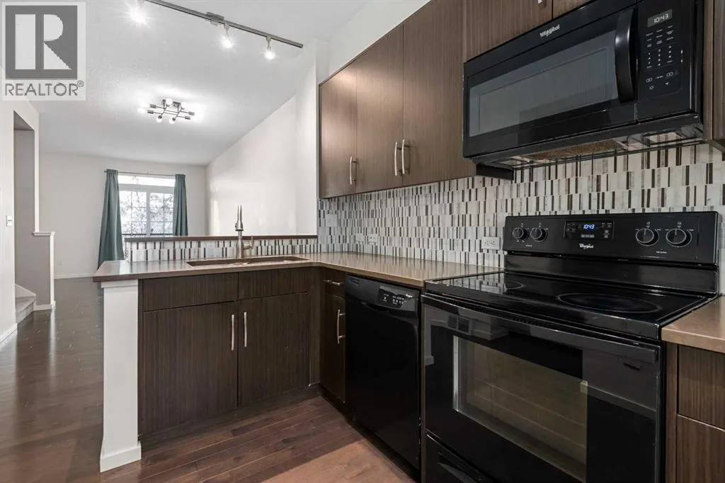 Welcome to 111 Ascot Point SW, a beautifully located Aspen Woods 2 bed 2 bath townhouse backing directly onto an environmental reserve and wetlands, a rare offering in West Calgary. This peaceful, nature filled setting offers exceptional privacy and scenic views, while still providing easy access to everyday amenities. Ideally situated on the west side of Aspen Woods, this home is minutes from Aspen Landing Shopping Centre, markets, cafes, transit, top rated schools, and major commuter routes. This two-storey, air conditioned, townhome offers approximately 1,200 sq ft of well-designed living space with 9â ceilings, maple hardwood flooring, quartz countertops, a breakfast bar, and open living and dining areas ideal for modern living. Upstairs, the primary bedroom overlooks the wetlands, providing a quiet and private retreat. A 5 piece bathroom, a spacious second bedroom and newer washer & dryer complete the upper level. Additional features include an attached double garage, an additional parking pad, private outdoor space, and access to a community terrace overlooking the reserve. An ideal opportunity for professionals or couples seeking a West Calgary townhome in a highly desirable, walkable community. Quick possession available. (id:27476)