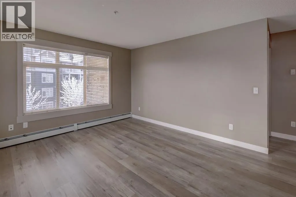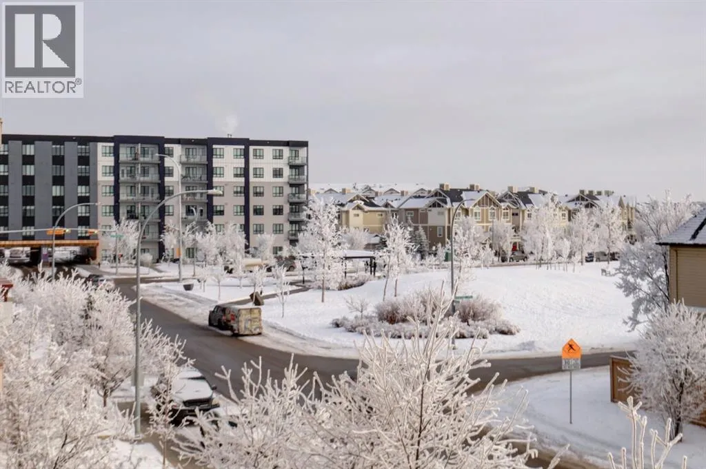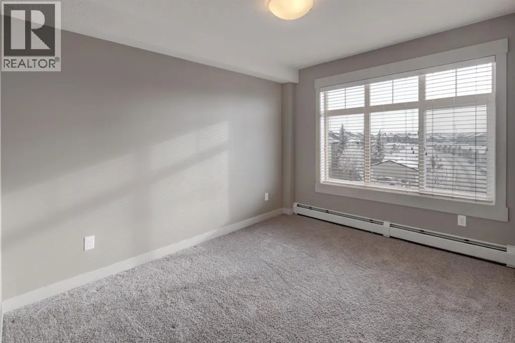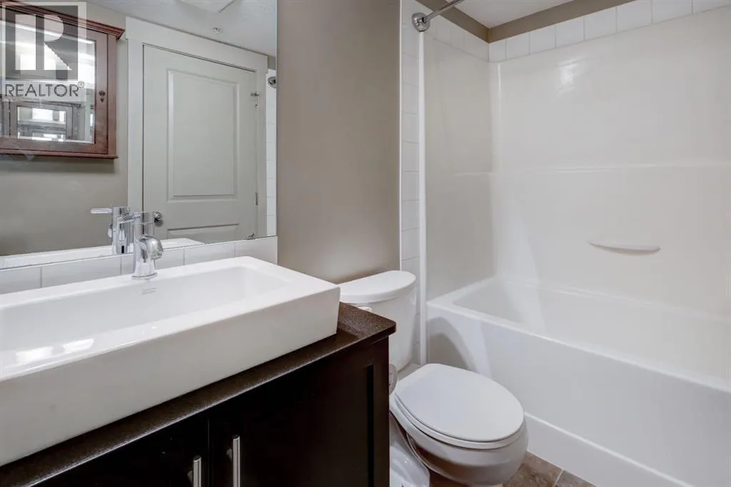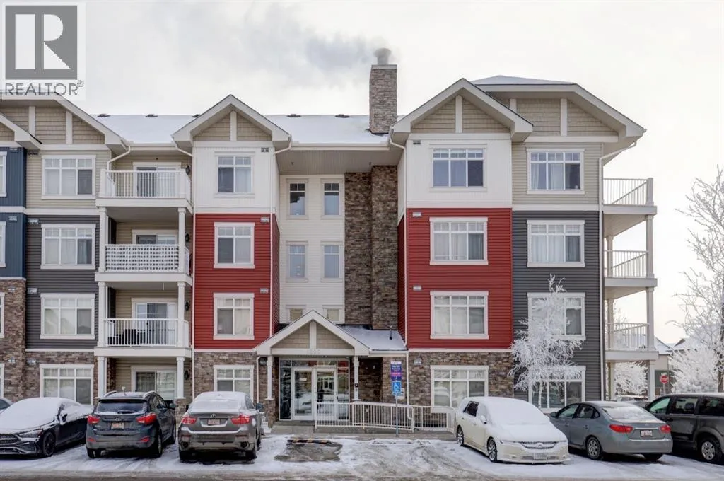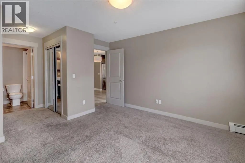 This contemporary corner unit offers 903 square foot of stylish living space with 2 bedrooms, 2 bathrooms and panoramic south-west exposure. Step out onto the balcony, complete with gas BBQ line and enjoy the stunning mountain views. Fresh laminate flooring and an open-concept design create a modern, airy feel that's filled with natural light throughout the day. The contemporary kitchen features dark-stained cabinetry, tiled backsplash, granite counter, and stainless steel appliances. The spacious primary bedroom includes a walk-through closet leading to a 4 piece ensuite, while the second bedroom and full bathroom provide flexibility for guests or a home office. The two bedrooms are thoughtfully positioned on opposite sides of the condo for added privacy - please see the included floor plan for full layout. Additional highlights include in-suite laundry, titled heated underground parking with a storage locker conveniently located directly in front of the stall. Ideally located with easy access to Stoney and Deerfoot Trail, just minutes from the airport and Cross Iron Mills, plus shopping, parks, schools, and everyday amenities nearby - including a bus stop right on the street. This move-in ready condo is available for immediate possession. It blends comfort, convenience and incredible views - a fantastic place to call home. Be sure to take time to explore the 3D virtual tour. (id:27476)