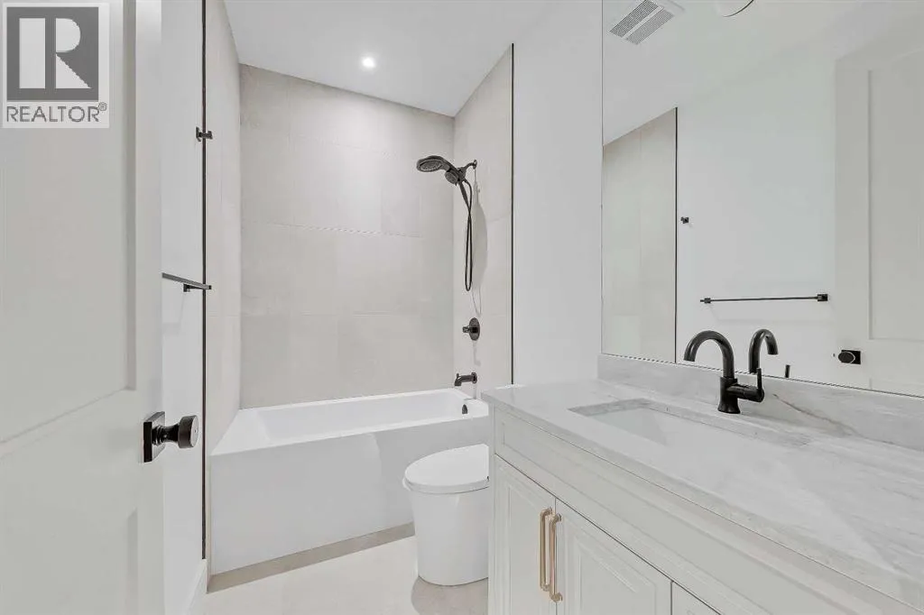 Every inch of this new luxury infill feels like a curated experience in refined design. Thoughtfully styled from the inside out, the home pairs timeless architectural details with contemporary softnessâarched windows, warm wood tones, creamy stone finishes, and that quiet kind of luxury you feel the moment you step through the front door.Inside, you're greeted by a central foyer that opens into a bright, airy space with soaring ceilings and oversized windows that let in light from every angle. The dining area connects naturally to a chef-inspired kitchen past a convenient bar area with space for a beverage fridge and custom cabinetry, while the kitchen itself impresses with a full-height quartz backsplash, designer pendants, and upgraded high-end appliances, including a gas range, custom hood fan, and French door fridge/freezer. The spacious living area feels open yet cozy, grounded by a GAS FIREPLACE with built-in shelving on either side and a view of the landscaped yard, with access to the custom mudroom with built-ins, adding the kind of functional polish that makes day-to-day life feel seamless.Upstairs, youâll find two secondary bedrooms, a bright 4-piece main bath with a fully tiled tub/shower combo and elegant finishes, and a good-sized laundry room with a quartz folding counter and an undermount sink - practical and polished. The primary suite is a true retreat, featuring DUAL WALK-IN CLOSETS for all the space, and a gorgeous ensuite with dual vanity, freestanding soaker tub, and an oversized, fully tiled WALK-IN STEAM SHOWER.The third level is where things really elevateâliterally. A bonus lounge area with a WET BAR opens onto a PRIVATE SOUTH-FACING BALCONY, making it a standout space for entertaining or relaxing in the sun. Another large bedroom with a full bathroom rounds out the top floor, offering flexibility for guests, teens, or a second home office.Downstairs, a fully developed basement includes a large rec room, built-in media setup, gym spa ce, a fifth bedroom, and another full bath. Thereâs also ample storage and mechanicals tucked discreetly away.Located in the heart of Altadore, this home is surrounded by some of Calgaryâs most sought-after schools. You're within walking distance to Altadore School (Kâ6) and Dr. Oakley School (Grades 3â9), with easy access to top private options like Rundle Academy and Lycée Louis Pasteur. Mount Royal University is just a 7-minute drive away, and Central Memorial High School and St. James are close by. Families will also love the proximity to River Park, Sandy Beach, and the Elbow River Pathway system. Marda Loopâs shops, cafés, fitness studios, and amenities are just a few minutes up the road, offering everything you need! (id:27476)