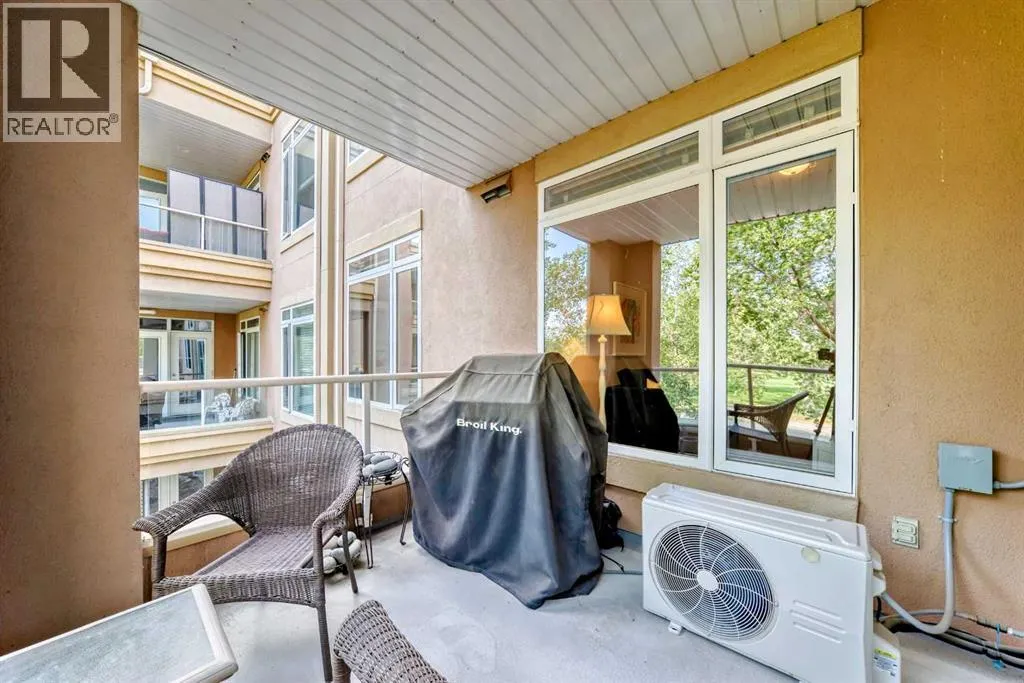 OPEH HOUSE SAT FEB 14th 11-1pm. Welcome to Copperwood II, where this immaculate and updated 1,340 sq. ft. condo offers an exceptional blend of luxury, comfort, and security, with backing views onto the serene Shaganappi Golf Courseâan ideal setting for downsizers seeking quality without compromise.What sets this home apart: no wasted square footage, beautiful views, California Closets, a functional and spacious layout, a financially healthy building, numerous recent upgrades, an oversized titled parking stall ideally located near the elevator, and a 2-ton A/C unit.This bright, open home is filled with natural light and enhanced by 9â ceilings, Hunter Douglas window coverings, and fresh paint throughout. The thoughtfully updated interior features a refaced fireplace, new LVP flooring (2022), custom California Closets, and a dedicated office with built-in cabinetry. The kitchen offers light granite countertops, newer backsplash, and stainless steel appliances (all within the past five years), while both bathrooms include matching updated plumbing fixtures.Additional comforts include in-floor heating, air conditioning, and a BBQ gas line for year-round convenience. This very quiet, secure, and well-managed building offers outstanding amenities including titled underground parking, a large 4â x 10â storage unit, secure bike storage, car wash bay, woodshop, well-equipped gym, guest suite, reasonable condo fees, and a strong board.The location is second to noneâset against a private golf course backdrop while just minutes to shopping, downtown, the LRT, major roadways, and extensive walking and biking paths. In winter, enjoy cross-country skiing or snowshoeing right out your back door. Homes in the 5000â8000 buildings of Copperwood II are among the most sought-after, and this spacious, upgraded unit stands out as one of the best. (id:27476)
