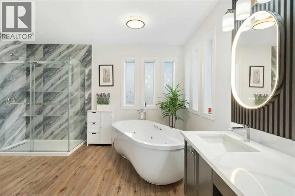Welcome to 124 Cresthaven Place in the highly desirable community of Crestmont, a former showhome offering 5 bedrooms, a fully finished walkout basement, and a private west-facing yard surrounded by mature trees. This home is bright, inviting, and truly move-in ready.Tucked away on a quiet cul-de-sac, youâre just steps from the community centre and park, with plenty of street parking for family and friends. The backyard is a true retreat, featuring a lower walkout patio, a brand-new hot tub (2024), and a cozy seating area nestled among the trees.Inside, the vaulted ceilings with dormers fill the living room with incredible natural light. The main floor features a comfortable office with a double-sided gas fireplace, a recently updated kitchen with newer appliances, and convenient main floor laundry.Upstairs, youâll find three bright bedrooms with no carpet, along with a beautifully renovated ensuite complete with a tiled shower and jetted free-standing tub.This home has been thoughtfully updated so you can move right in and enjoy: new roof (2020), furnace (2024), central A/C (2024), hot water tank (2020), fresh paint (2025), and a new hot tub (2024).Crestmont is one of Calgaryâs best-kept secrets quiet, established, and surrounded by nature, yet just minutes to Winsport, major roadways, and city amenities. With its family-friendly parks, walking paths, and a beautiful community hall, itâs a place where neighbours know each other and life feels a little more peaceful.If youâve been waiting for a warm, inviting home in Crestmont, this is it. Book a showing with your favourite Realtor today! (id:27476)