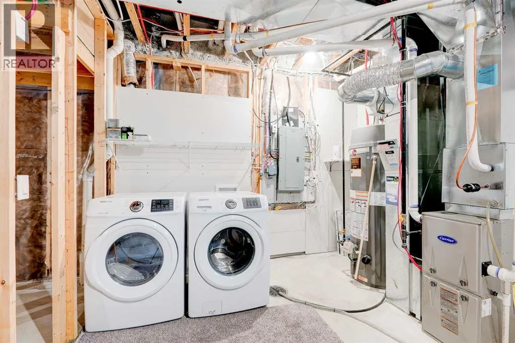 Welcome to this beautifully maintained duplex in the heart of Mahogany, Calgaryâs premier lake community. Enjoy year-round lake living, with summer beach access, tennis courts, and top-tier recreational facilities just a 5-minute walk from your front door; perfect for active families and outdoor enthusiasts.Offering over 1,200 square feet of bright, open-concept above grade living space, this home features a functional layout ideal for everyday life and entertaining. The kitchen is finished with quartz countertops, stainless steel appliances, and flows seamlessly into the main living area, while central air conditioning keeps you comfortable year-round.The undeveloped basement boasts high ceilings, providing a fantastic opportunity to create additional living space exactly how you want; whether itâs a home gym, rec room, home theatre or a home office.Outside, enjoy a private, fully fenced backyardâgreat for kids, pets, and summer BBQsâplus the convenience of a detached double garage that is wired for and ready to accommodate electric vehicle charging.Located in a family-friendly neighbourhood close to schools, parks, pathways, and all the amenities Mahogany is known for, this home offers exceptional value in one of Calgaryâs most sought-after communities. Book your showing today! (id:27476)