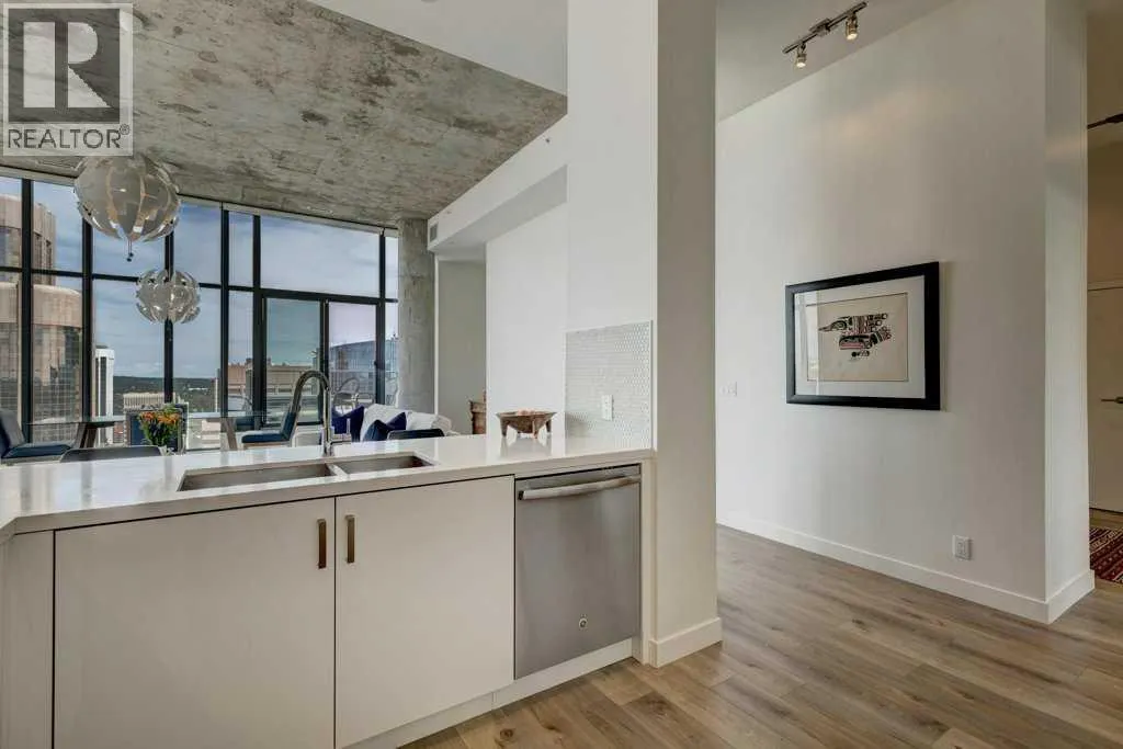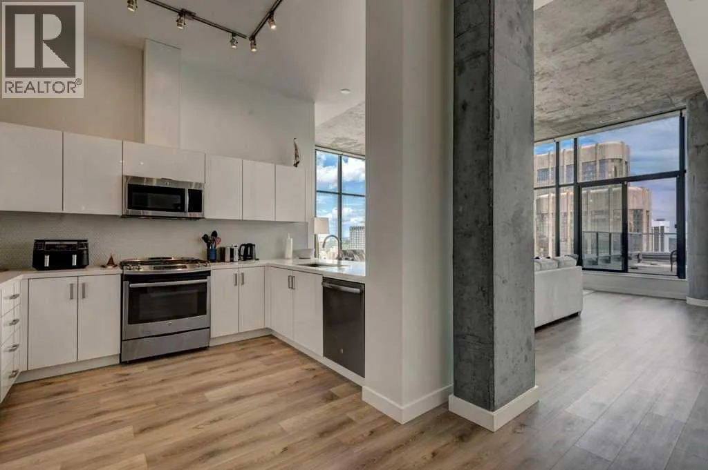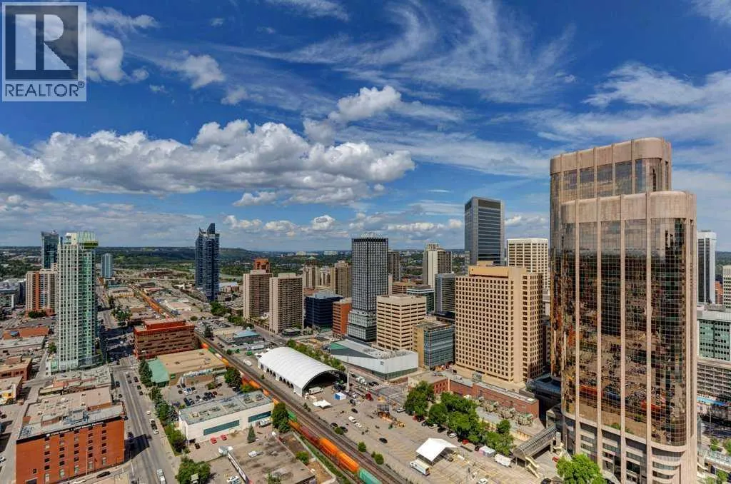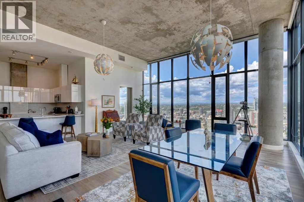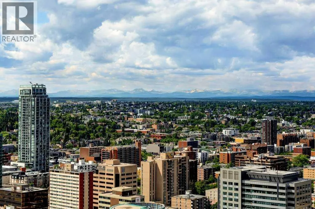 Fantastic views from this beautiful Penthouse! Location location, enjoy all the great new amenities in the heart of downtown Calgaryâs Beltline, this modern penthouse suite is situated on the 31st floor of 6th and 10th. With over 1700 sqft. of living space on the inside and an additional 970 sq.ft. of outdoor living space, this stunning two-bedroom home is the largest and most impressive suite in the tower. The massive outdoor terrace area is one of the largest of any penthouses within the city and boasts stunning panoramic, mountain and city views, ideal for entertaining friends and family. The floorplan has been thoughtfully designed and features an open concept floor plan creating a bright and spacious living space. The chef inspired kitchen is well equipped with sleek, high gloss and modern cabinetry, stone countertops, stylish backsplash, and stainless-steel appliances with a gas stove. This incredibly open concept design is highlighted by 12 ft ceilings and floor to ceiling windows. Youâre going to love working in the den, which offers incredible light and breathtaking views towards the Rocky Mountains, making it a perfect place to work or relax. The gorgeous master bedroom features a luxurious spa inspired ensuite with marble flooring, oversized shower (with mountain views!), double sink and a deep soaker tub, a brilliantly designed walk-in closet and a spacious private balcony offering some of the best views in the city. The second bedroom is inviting, also offering incredible views with a private balcony and large closet. Conveniently located close to the second bedroom is the 4-piece bath that features stunning marble flooring, a soaker tub, and a stone countertop. Additional special features include in-suite laundry, a large foyer and full-sized closet. Amenities in the building include the outdoor plunge pool and lounging area in the summer,24 Hour executive concierge and security, gym, and ownerâs lounge. This incredible penthouse suite also includes 2 titled parking stalls conveniently located close to the elevator along with a titled storage unit and bicycle storage. Donât miss out on this great opportunity to invest in this unique, one-of-a-kind home which is located so close to so many amazing amenities! (id:27476)