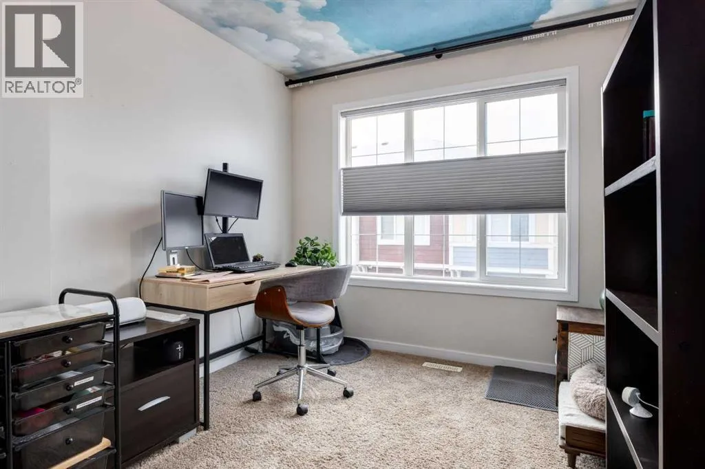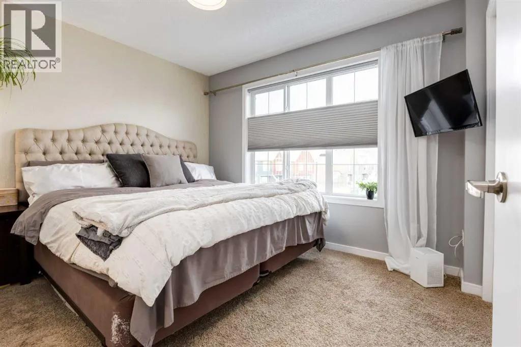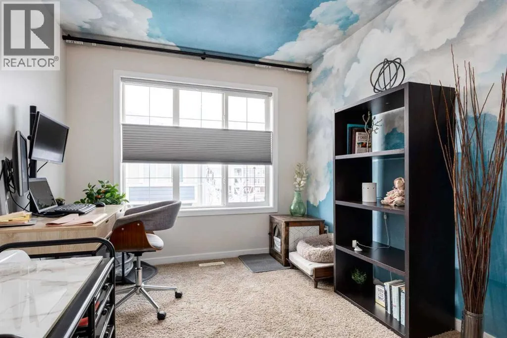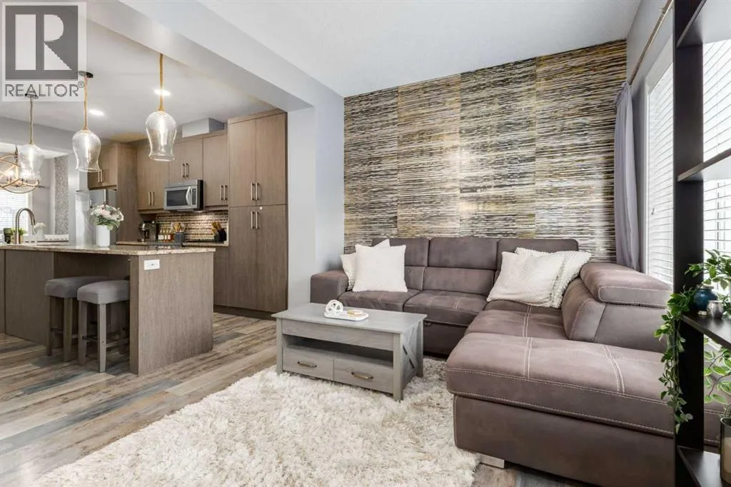 Weâre pleased to present this modern townhouse in the highly sought-after lake community of Mahogany. This unit presents an excellent opportunity for prospective homeowners, featuring low condo fees and a fabulous open floor plan. This high-end build features a spacious living area filled with abundant natural light streaming through large windows that highlight the luxury vinyl plank floors, updated fixtures, high-end wall coverings and other aesthetic accents that make it feel as though youâre in a show home. This is not the wall paper from Grandma and Grandpa's house, this is made from luxurious natural fibers like silk, velvet, grasscloth (jute, hemp, reed), and even real wood veneers, often with hand-finished details, metallic threads, or applied to durable non-woven or fabric backings for superior texture, depth, and longevity, moving beyond standard paper to offer rich, tactile finishes. Some other value added updates include; heated tile floor at the entry, new furnace (2025), Tesla charge station, new Samsung washer & dryer, top-down/bottom-up window shades, added plugs in kitchen island, and a heater in the garage! The kitchen showcases sleek cabinetry with a wood grain effect in tones of dark wood and greys, perfectly accented by a mosaic tiled backsplash. Stainless steel appliances, granite countertops, and an island with seating space add both functionality and style to this culinary haven. Adjacent to the kitchen, the generous dining area opens to a balcony equipped with a gas line for BBQs, making it an ideal spot for entertaining guests. A cozy living room is a must and the included surround sound speakers will be an added bonus. Additionally, a powder room on the main floor with updated tile flooring caters to your visitors. The upper level features a primary bedroom complete with a four-piece en-suite bathroom and a spacious walk-in closet, with natural light so youâll know if your top and bottoms actually match! This level also includes two addit ional bedrooms, a family bathroom, and a convenient laundry area. The air conditioning and a tandem heated garage with ample space for two vehicles under covered with a 3rd in the driveway and additional storage will be major checkmarks for your lifestyle. The visitor parking stalls are right across the street from your driveway, so your guests wonât mind coming over at all. Additionally, the location is prime and is just steps away from both Public and Catholic schools and within walking distance to the lake, which offers year-round recreational activities for residents. The amenities at Westman Village, Mahogany Village, Auburn Station, and Seton are easily accessible, as well as major routes like Stoney and Deerfoot trails, making this townhouse a perfect blend of convenience and comfort. Donât hesitate to book a showing today, weâre happy to accommodate! (id:27476)