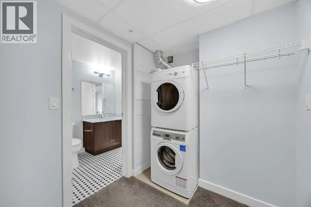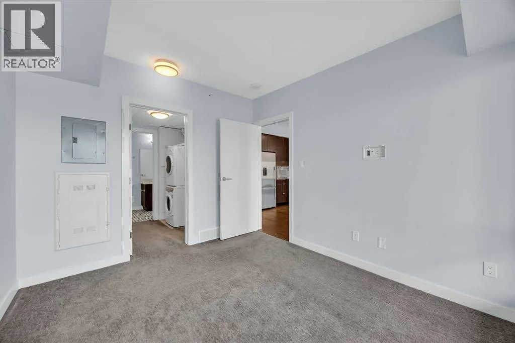 Set high on the 11th floor of Vogue, this refined 1 bedroom + den /1 bathroom residence offers an exceptional downtown living experience with contemporary finishes. The OPEN-CONCEPT LAYOUT showcases a sleek modern kitchen with quartz countertops, generous cabinetry and stainless-steel appliances, seamlessly connecting to a bright living space finished with HARDWOOD FLOORINGâideal for both relaxed living and elegant entertaining. The SEPARATE DEN provides a versatile space for a home office or additional storage, while the SPACIOUS BEDROOM comfortably accommodates a queen or king-sized bed and features a WALK-THROUGH CLOSET leading to the ensuite bathroom. Additional highlights include AIR CONDITIONING, a private balcony, a secured underground PARKING STALL and a STORAGE LOCKER. Access to PREMIUM AMENITIES including a rooftop fitness centre, ownerâs lounge, games room, professional boardroom, SECURE VISITOR PARKING and full concierge service. Located in the heart of downtown, this suite offers EXCEPTIONAL WALKABILITY with immediate access to the Bow River pathways, Princeâs Island Park, the C-Train and Calgaryâs +15 network.. A fantastic opportunity for individuals, couples, or investors seeking quality, convenience and the welcoming spirit of a vibrant community! (id:27476)