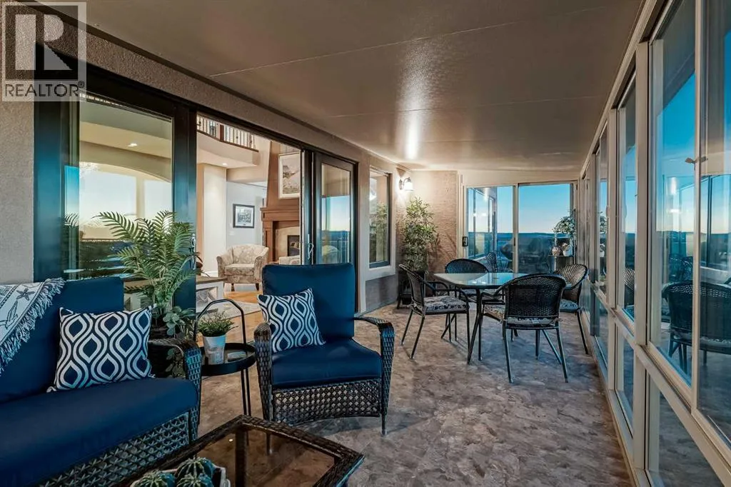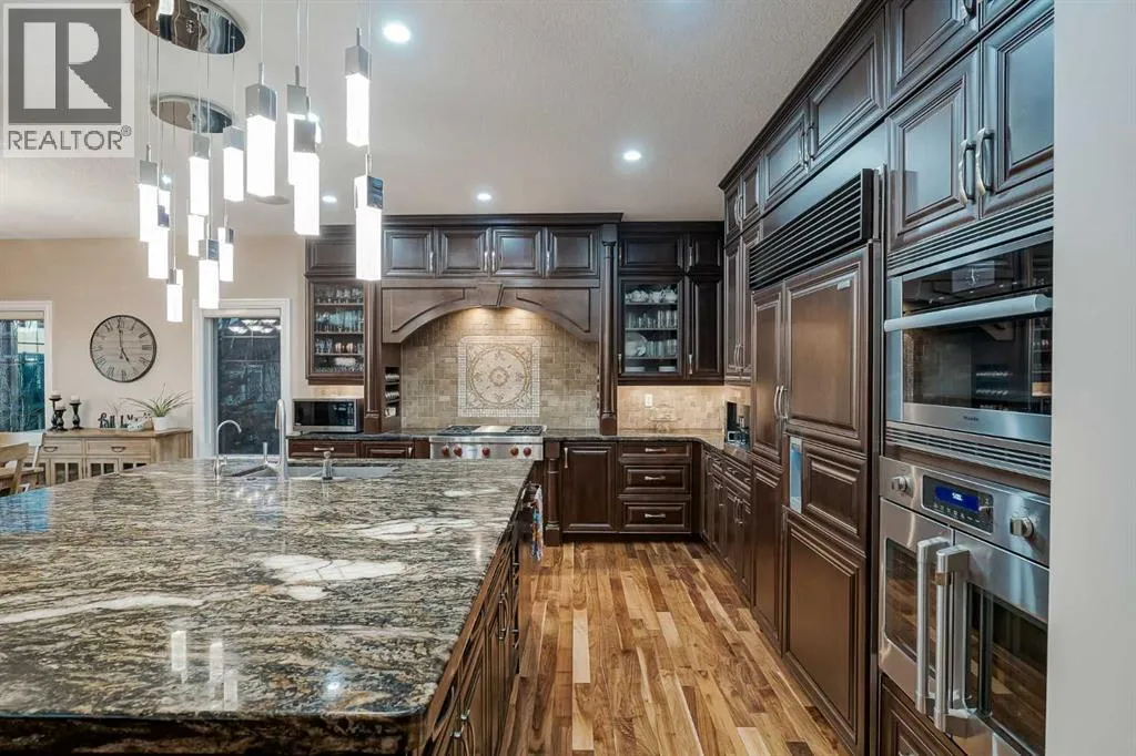 Experience the pinnacle of ridge-side living in this masterfully updated executive estate, where architectural grandeur meets "better-than-new" turnkey peace of mind. Perched on a premier lot in the prestigious community of Cranston, 30 Cranridge Heights SE offers a rare combination of custom craftsmanship and breathtaking natural beauty. This expansive home, boasting over 5,300 square feet of meticulously developed living space, has been thoughtfully refreshed from top to bottom. Recent investments elevate this property into a class of its own, including a fresh coat of paint throughout the entire interior, two brand-new high-efficiency furnaces, and two new air conditioning units to ensure year-round climate perfection. The exterior has been equally refined with upgraded stucco exterior, newer garage doors, and landscaping completed in 2023 that features roughed-in irrigation, allowing you to move in with absolute confidence.The heart of this home is centered around its world-class location and the unmatched vistas of the Bow River Valley and the majestic Rocky Mountains. The addition of a stunning sunroom in 2025 serves as a private gallery for nature, providing an incredible space to soak in Calgaryâs most iconic sunsets and valley views. Inside, the grand foyer makes a lasting impression with its soaring ceilings, crystal chandelier, and elegant spiral staircase. The main floor is an entertainerâs dream, featuring massive windows that frame the mountains and a designer kitchen equipped with professional-grade Wolf, Sub-Zero, and Miele appliances. A two-story, double-sided fireplace anchors the formal living and dining areas, while a dedicated executive office with custom built-ins offers a private retreat for the modern professional.The upper level continues the theme of luxury, connected by a walkway that offers views from nearly every angle. The primary suite is a sanctuary of tranquility, complete with a private balcony, its own double-sided fireplace, and an expansive spa-like ensuite featuring a marble-detailed steam shower and a relaxing aerated tub. With a total of six generous bedrooms and 4.5 bathrooms, there is ample space for family and guests alike. The fully finished walk-out basement is designed for recreation and high-end hosting, featuring heated floors, a full wet bar, and a large family area.Stepping outside, the west-facing backyard is a landscaped oasis, complete with gas lines for your BBQ and propane firepit, perfect for enjoying crisp Alberta nights while watching the sun dip below the peaks. Beyond the property line, Cranston offers an unparalleled lifestyle with an expansive network of pathways along the Bow River, convenient access to the South Health Campus and YMCA, and a wealth of local dining and retail. Combining a prime location with significant recent upgrades and over 5,300 square feet of luxury, this home is a rare, one-of-a-kind opportunity in one of Calgaryâs most sought-after communities. (id:27476)
