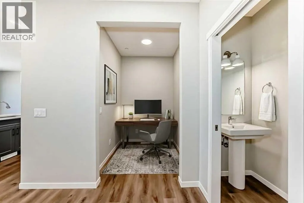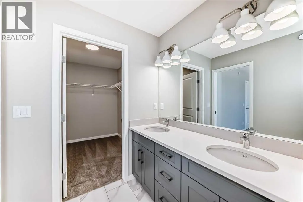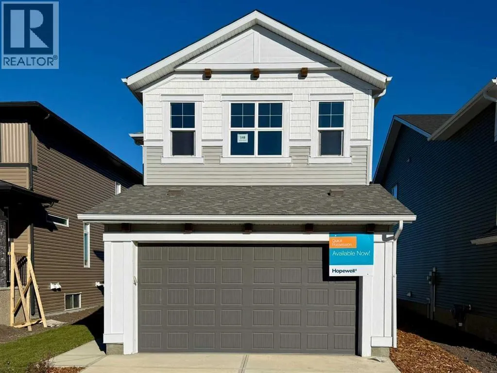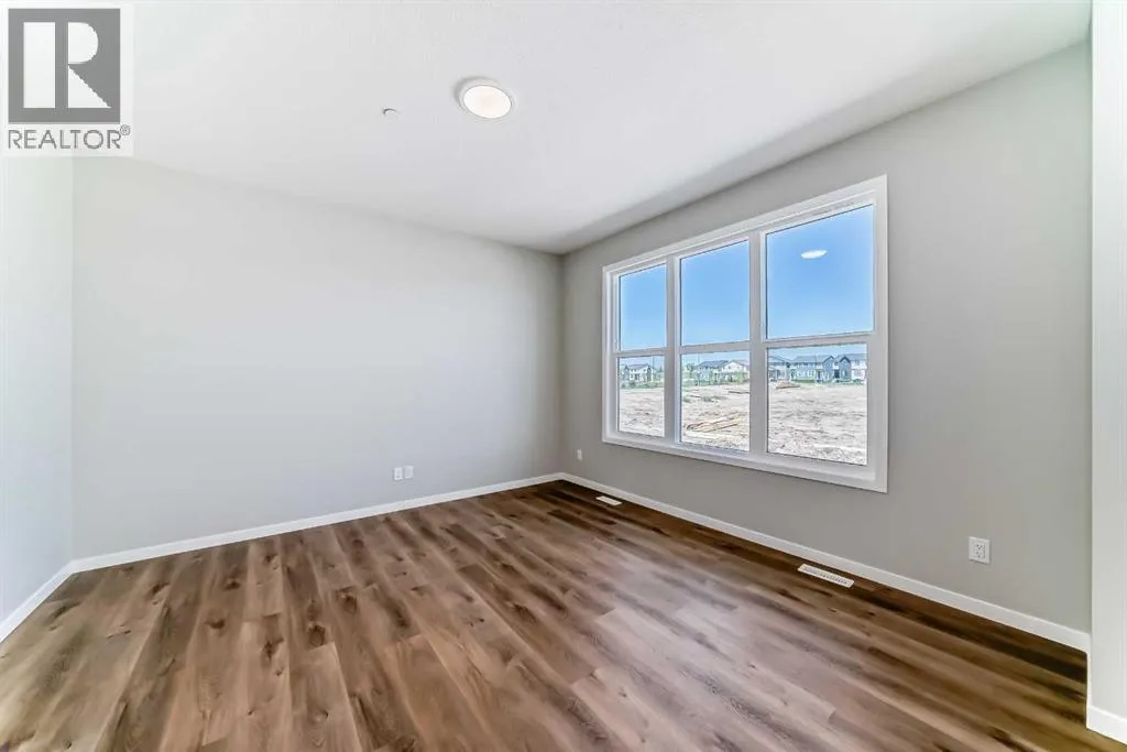 Welcome to the exquisite "Carisa" floor plan, where nearly 1,700 SqFt of thoughtfully designed space combines modern elegance with unmatched functionality. This homeâs layout is tailored for both comfort and style, creating the perfect setting for family living and entertaining. As you step inside, youâll be greeted by the warmth and durability of vinyl plank flooring that flows seamlessly throughout the main level, accentuating the modern finishes and striking architectural details. Natural light pours in through the back wall of windows, infusing the open-concept living areas with an inviting ambiance. Dual sliding patio doors extend your living space to the expansive backyard, ready for your personal touch to create the ultimate indoor-outdoor oasis. At the heart of the home, the kitchen is a chefâs dream. Featuring two-tone cabinetry, sleek quartz countertops, and a stylish tile backsplash that wraps elegantly around a chimney-style hood fan, this kitchen is as functional as it is beautiful. Stainless steel appliances and a thoughtfully positioned mudroom with direct kitchen access ensure that even grocery days are effortless. A cozy dining nook and a spacious living room, are perfectly positioned to enjoy the homeâs abundant natural light. The smartly designed pocket office offers the perfect work-from-home setup or a dedicated homework space for the kids. Upstairs, a versatile bonus room serves as the ideal family retreat, separating the serene primary suite from the secondary bedrooms. The primary suite is a tranquil haven, complete with a luxurious 4-piece ensuite featuring an oversized shower and ample space to unwind. The two additional bedrooms are generously sized, making them ideal for children or guests. With an upstairs laundry room and a stylish 4-piece bathroom, convenience is woven into every detail of this home. **This home also comes complete with full front and backyard landscaping, including sod, mulch on the side yards, and trees/shrubs in the front as per community guidelines. Located in the vibrant southeast Calgary community of Hotchkiss, this home offers more than just a beautiful living space. Residents enjoy stunning mountain views, 51 acres of park space, interconnected walking paths, and a central wetland. Designed with families in mind, Hotchkiss is a community where you can truly belong and thrive. (id:27476)