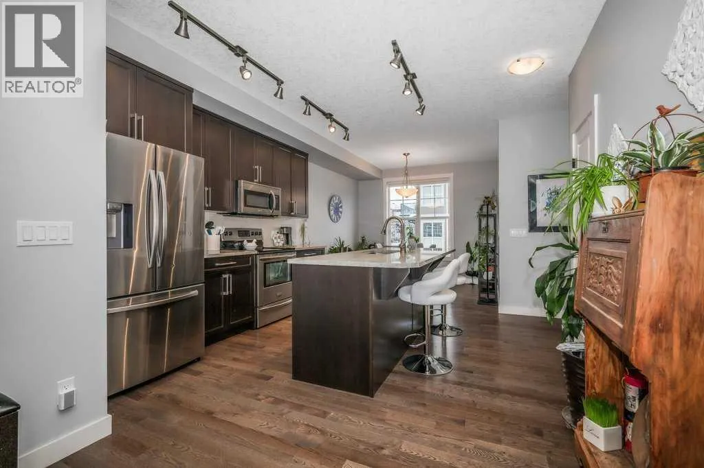 Welcome to this stunning bungalow style townhouse that perfectly blends comfort with convenience in the heart of Cranston! This gorgeous home spanning 1,126 square feet is in impeccable condition and truly shows like it just came off the showroom floor.Enter inside and immediately feel the spaciousness created by soaring nine foot ceilings that fill the home with natural light. The open concept layout features beautiful hardwood and tile flooring throughout, leading you into a generous living room anchored by a cozy gas fireplace flanked by elegant built-in cabinets. The large front window bathes the space in warmth, creating the perfect spot to unwind after a long day.The kitchen is a culinary enthusiast's dream, boasting stunning granite countertops, a substantial island with eating bar that's ideal for casual meals, and gleaming stainless steel appliances. A well appointed pantry keeps everything organized, while the adjacent dining area offers ample room for hosting dinner parties or enjoying family gatherings.The primary bedroom serves as a peaceful retreat, featuring a full ensuite bathroom with a walk-in shower and a generous walk-in closet that will make morning routines a breeze. A second bedroom, main bathroom, and convenient laundry room complete the main floor living experience. Downstairs, the undeveloped basement awaits your creative visionâwhether you envision a cozy den, home office, or simply appreciate the extra storage space.Speaking of perks, the double attached garage provides sheltered parking and plenty of room for your vehicles and gear. No more scraping ice off windshields on chilly Alberta mornings! The large private patio comes equipped with a gas outlet for your barbecue, making summer entertaining effortlessly enjoyable.The neighborhood truly shines with everyday conveniences at your fingertips. Real Canadian Superstore is just a short distance away, while nearby parks offer green space for relaxation or weekend picnics. Transi t options and quality schools, including Joane Cardinal-Schubert High School, make this location ideal for families and professionals alike.Embrace worry-free single level living in this exceptional townhouse. Don't miss out! Call today for more informamtion. (id:27476)