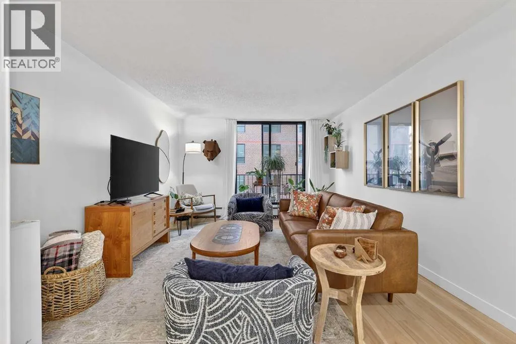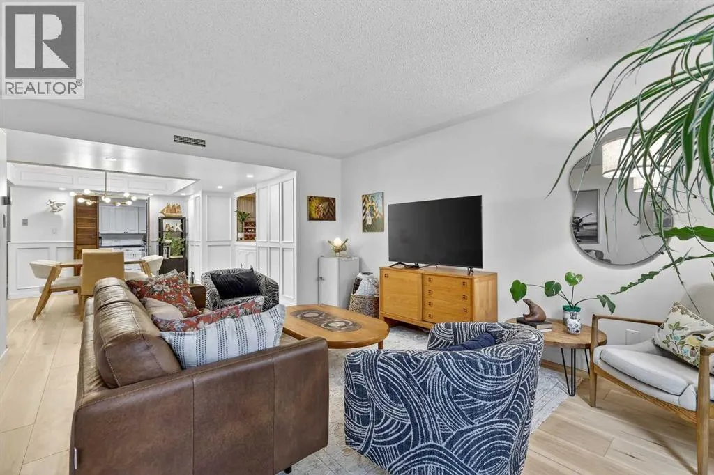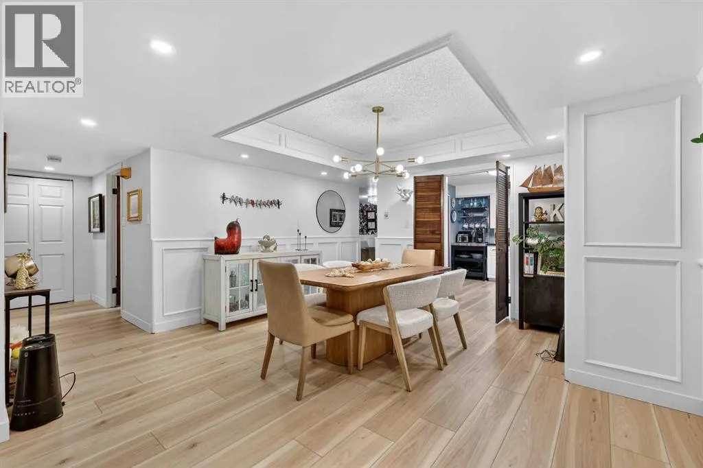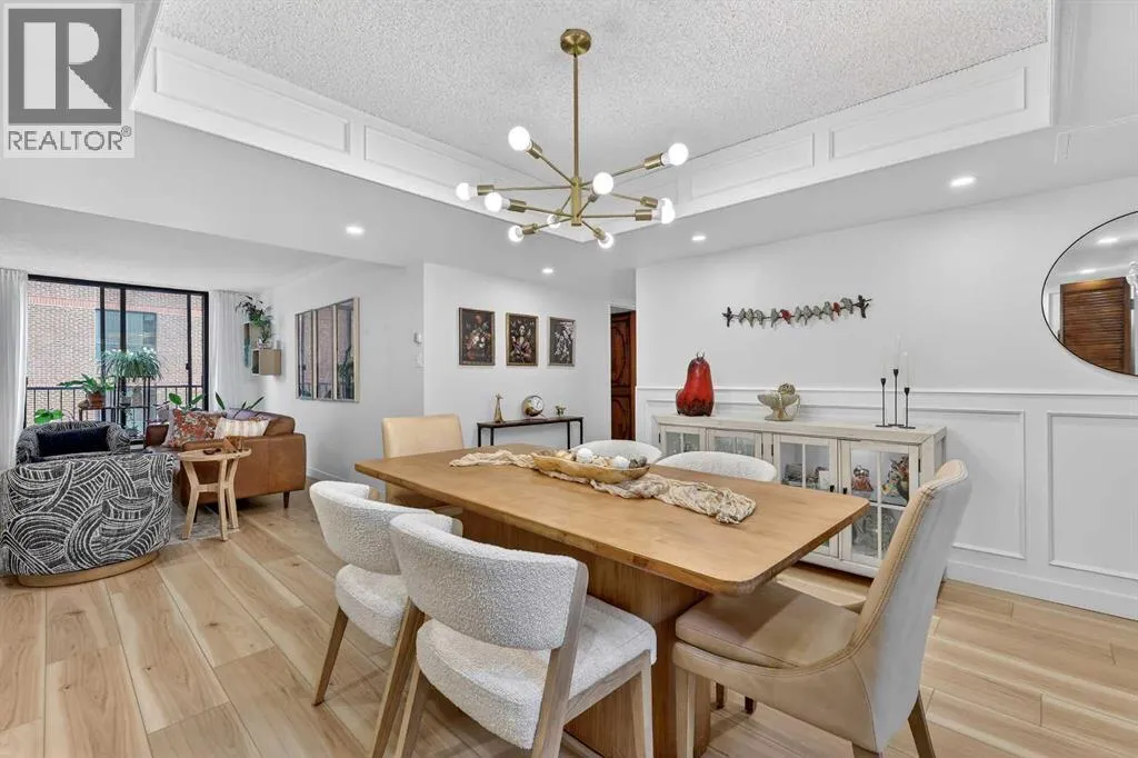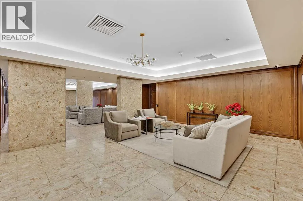 This charming 2-bedroom, 2-bathroom residence with 2 parking stalls is located within the captivating and prestigious Roxboro House. The exceptionally designed floor plan offers the perfect balance of everyday functionality and an inviting layout ideal for entertaining.Upon entry, a spacious foyer welcomes you, with a versatile den or home office conveniently positioned adjacent to the kitchen. The updated kitchen is bright and beautifully appointed, featuring ample storage and counter space, upgraded stainless steel appliances (including an induction stove/oven), granite countertops, and an elegant backsplash with inlay, making it both stylish and practical.The dining room is enhanced by classic wainscoting, a coffered ceiling, refined lighting, and a built-in dry bar, creating an ideal setting for hosting guests. The cozy living room offers a warm and relaxing atmosphere, perfect for unwinding at the end of the day.Designed to maximize privacy, the generously sized bedrooms and bathrooms are thoughtfully tucked away down the hall. Recent upgrades include new flooring, appliances, and fresh paint throughout. Additional highlights include air conditioning, two parking stalls, and condo fees that include electricity, heat, and water.Residents enjoy access to an exceptional suite of amenities, including 24/7 concierge service, games room, party and recreation rooms, fitness centre, pool with hot tub, sauna, woodworking shop, and a truly remarkable rooftop patio.All of this is set in a prime location just steps from the river and its scenic pathways, as well as the boutique shopping and acclaimed dining of 4th Street. Rarely does a Calgary condominium offer such an unparalleled combination of luxury, amenities, and location. Distinctive living defined by truly unique features (id:27476)