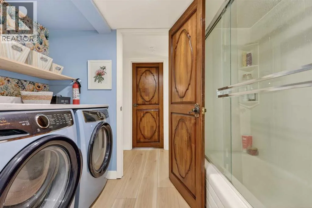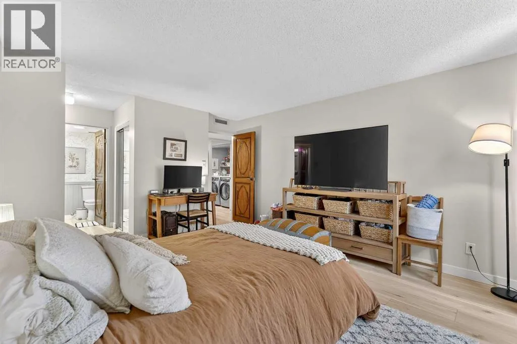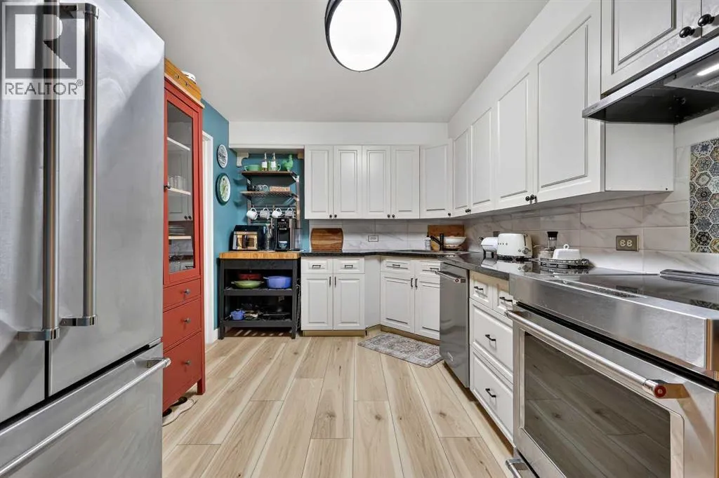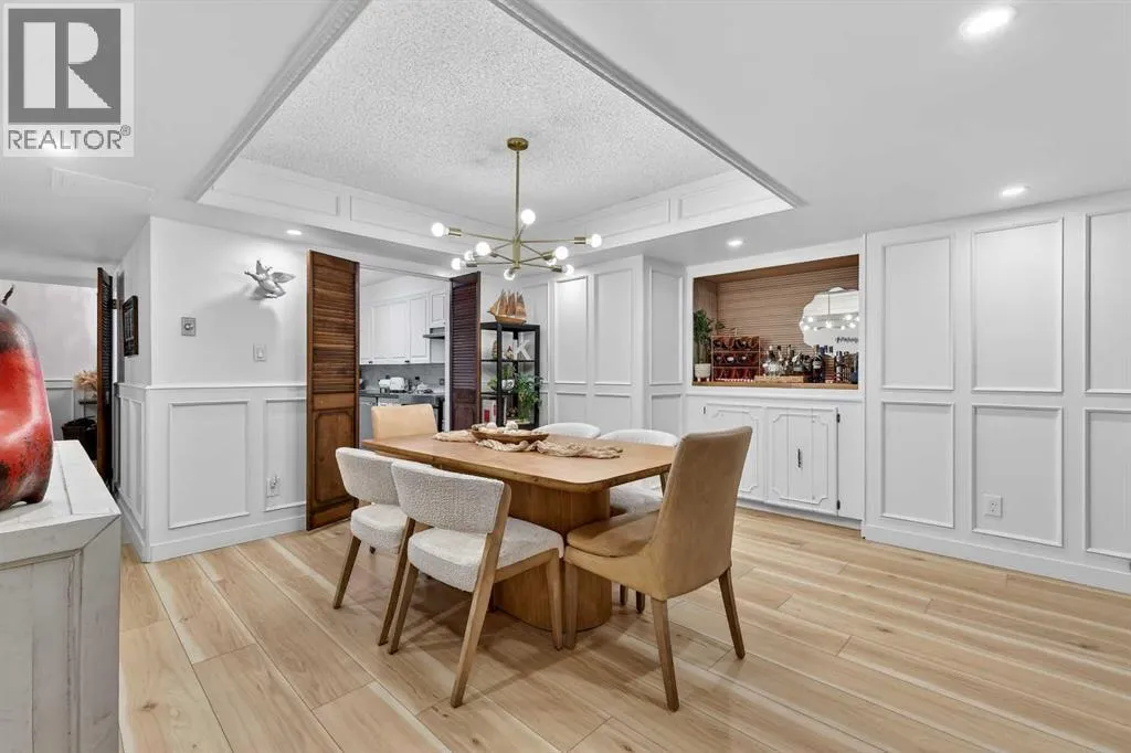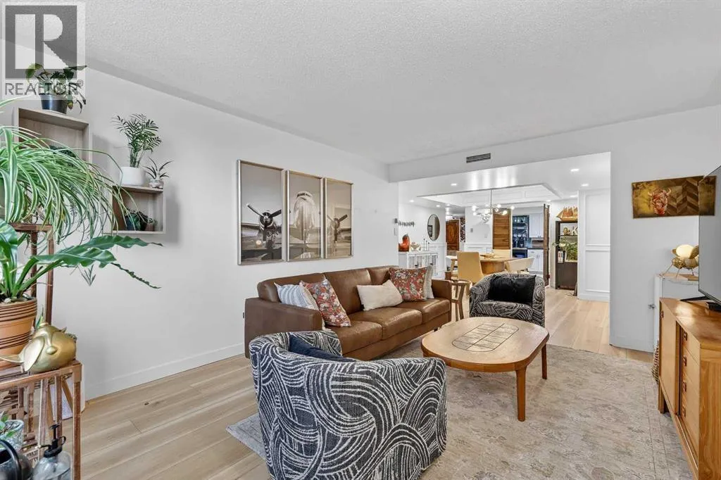 This charming 2-bedroom, 2-bathroom residence with 2 parking stalls is located within the captivating and prestigious Roxboro House. The exceptionally designed floor plan offers the perfect balance of everyday functionality and an inviting layout ideal for entertaining.Upon entry, a spacious foyer welcomes you, with a versatile den or home office conveniently positioned adjacent to the kitchen. The updated kitchen is bright and beautifully appointed, featuring ample storage and counter space, upgraded stainless steel appliances (including an induction stove/oven), granite countertops, and an elegant backsplash with inlay, making it both stylish and practical.The dining room is enhanced by classic wainscoting, a coffered ceiling, refined lighting, and a built-in dry bar, creating an ideal setting for hosting guests. The cozy living room offers a warm and relaxing atmosphere, perfect for unwinding at the end of the day.Designed to maximize privacy, the generously sized bedrooms and bathrooms are thoughtfully tucked away down the hall. Recent upgrades include new flooring, appliances, and fresh paint throughout. Additional highlights include air conditioning, two parking stalls, and condo fees that include electricity, heat, and water.Residents enjoy access to an exceptional suite of amenities, including 24/7 concierge service, games room, party and recreation rooms, fitness centre, pool with hot tub, sauna, woodworking shop, and a truly remarkable rooftop patio.All of this is set in a prime location just steps from the river and its scenic pathways, as well as the boutique shopping and acclaimed dining of 4th Street. Rarely does a Calgary condominium offer such an unparalleled combination of luxury, amenities, and location. Distinctive living defined by truly unique features (id:27476)