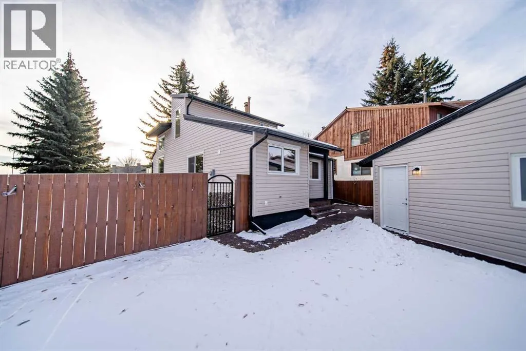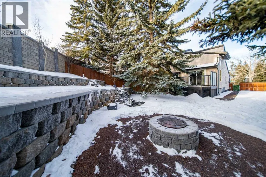 Welcome to this well-maintained 5-level split detached home located in the desirable community of Ranchlands, set on an oversized, beautifully landscaped lot with exceptional outdoor living spaces. Offering approximately 1,425 sq. ft. of living space above grade plus an additional 732 sq. ft. below grade, this home delivers a unique and functional floor plan with room to grow. The main living level features a bright eat-in kitchen and a spacious, separate living room with soaring ceilings, creating an inviting space filled with natural light while maintaining defined living areas. Two comfortable bedrooms are conveniently located on these levels, making the layout ideal for families or downsizers. Step directly from the living room onto a private deck, perfect for morning coffee or evening entertaining while overlooking the backyard. Just a few steps up, the second-floor loft overlooks the living space and serves as an ideal TV or lounge area, complete with a cozy fireplace and a convenient 2-piece powder room. The lower levels expand the living space further with an additional bedroom and full bathroom, a generous recreation n room, a dedicated laundry room, and ample storage for seasonal items and hobbies. Outside, the backyard truly sets this property apart. The extensively landscaped yard features a heated outdoor water feature designed for year-round enjoyment, along with a separate fire pit area creating a private retreat perfect for relaxing or entertaining in every season. The rubber drive and walkways are low maintenance, durable and a safer alternative to concrete and will not crack in the cold. A single detached garage with front drive access adds everyday convenience and additional parking. Located in a quiet, established neighbourhood close to parks, schools, shopping, and transit, this Ranchlands home offers a rare combination of space, character, and standout outdoor living in northwest Calgary. (id:27476)