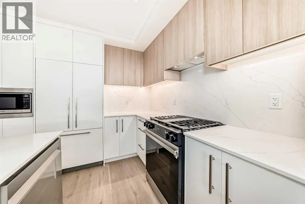 Discover a new level of urban living at West Plaza in the heart of Calgaryâs West District. This beautifully finished 2-bedroom, 2-bath condo offers a perfect balance of modern design, comfort, and convenience in one of the cityâs most desirable communities.The open-concept interior features a stunning kitchen with quartz countertops, premium appliances, contemporary cabinetry flowing into a bright living area designed to feel spacious and inviting. Natural light fills the home creating a warm and elegant atmosphere throughout.The primary suite includes a private ensuite and ample closet space while the second bedroom is ideal for guests, a home office, or added flexibility. Both bathrooms are finished with sleek, modern details that elevate the overall look and feel of the home.With a heated underground parking and access to premium building amenities including a fitness centre, owner's lounge, pet wash and car wash bay, this residence offers both luxury and practicality.Step outside to enjoy boutique shops, dining, cafes and the beautifully designed Central Park, all just moments from your door. (id:27476)