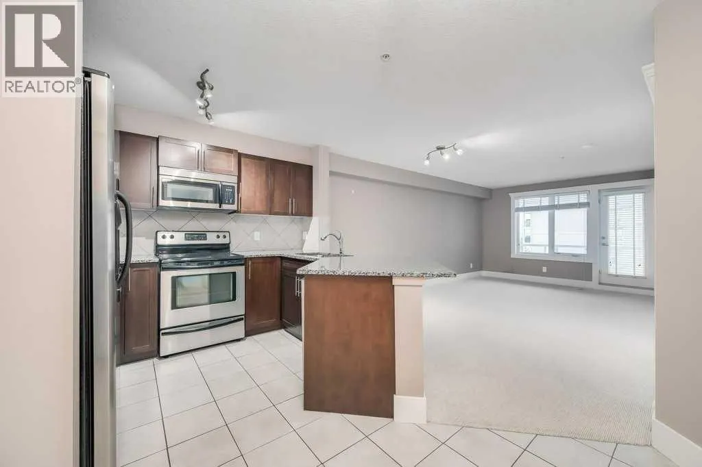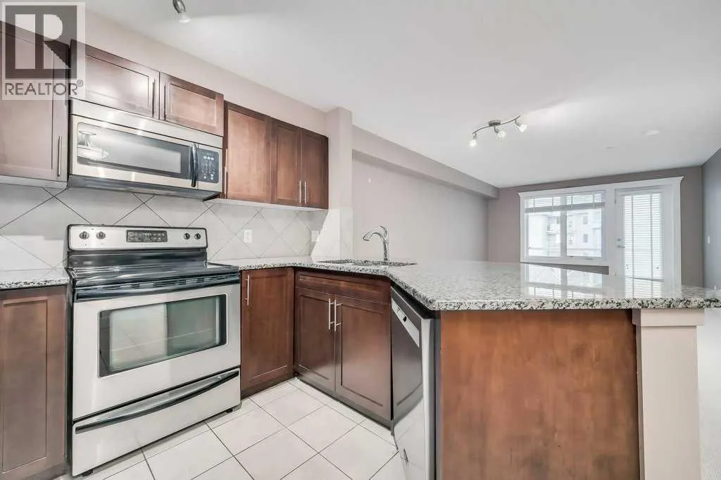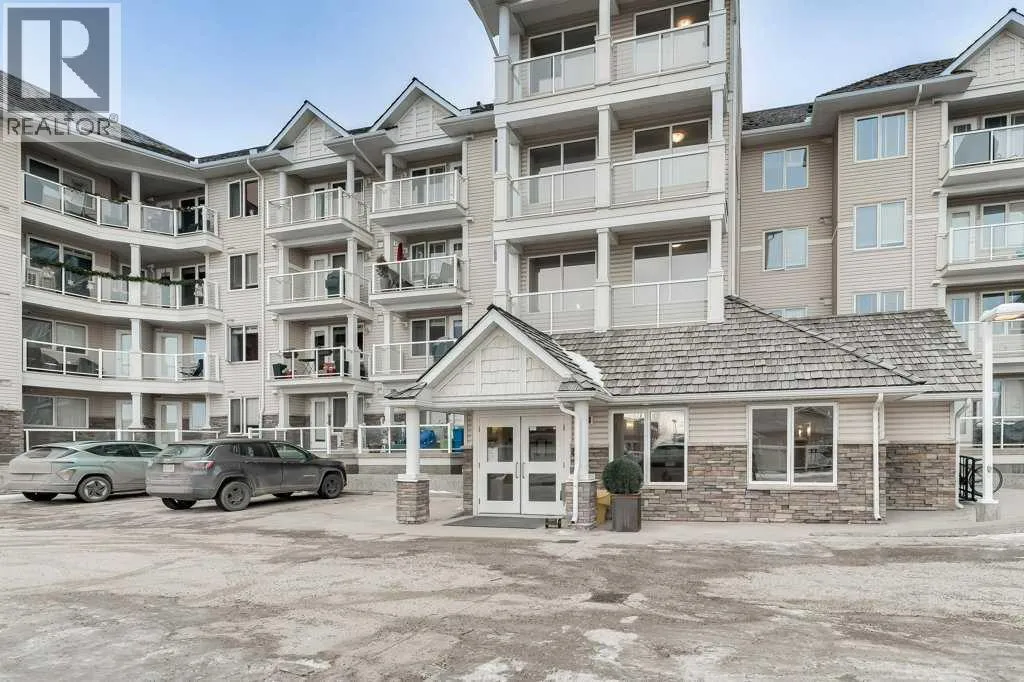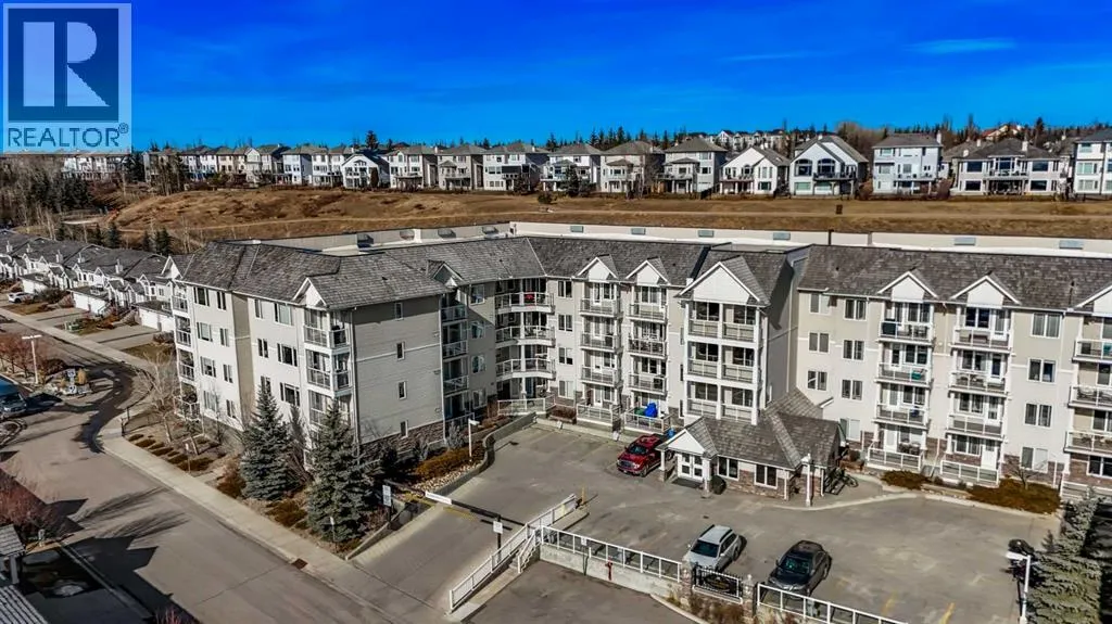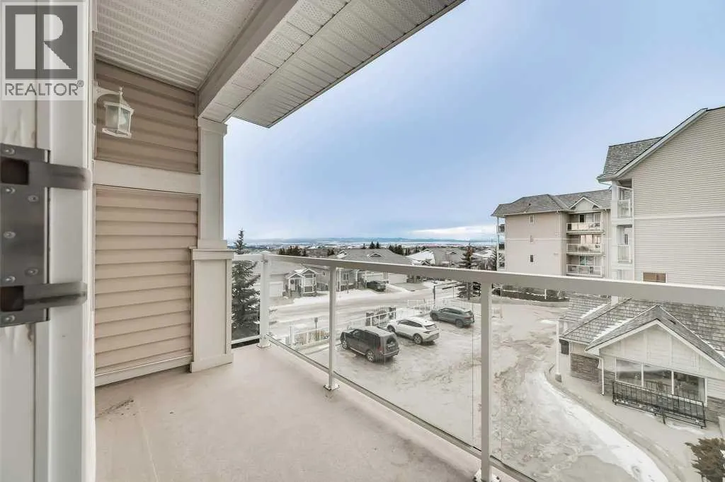 Welcome to this 3rd-floor condo in the desirable community of Rocky Ridge with unobstructed west-facing views of the Rocky Mountains. This well-maintained 1-bedroom plus den unit features a functional open-concept layout, ideal for first-time buyers, downsizers, or investors. The pet-friendly complex offers secure underground resident parking along with ample visitor parking. The kitchen is finished with granite countertops, upgraded cabinetry, stainless steel appliancesâincluding a new dishwasher, sink, and faucet, opening into a spacious living and dining area filled with natural light. Step onto the private balcony to enjoy stunning Rocky Mountain views and evening sunsets. The primary bedroom features a walk-through closet and a 4-piece ensuite with a new toilet, while the versatile den works well as a home office or additional storage. Added conveniences include in-suite laundry, an assigned underground parking stall, and a separate storage locker. Residents enjoy access to on-site amenities including a fitness centre and entertainment room, plus Rocky Ridge Ranch membership with year-round amenities such as a lake, splash park, skating, tennis courts, and basketball. Walking distance to the Tuscany LRT station with quick access to Crowchild Trail, Stoney Trail, shopping, schools, and the YMCA. Move-in ready and easy to show. (id:27476)