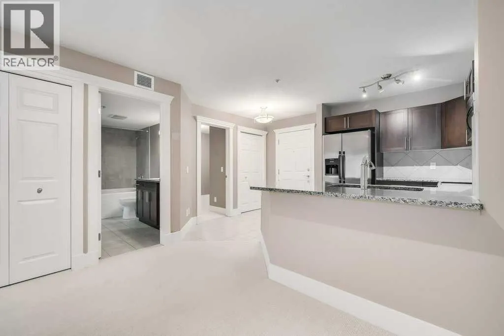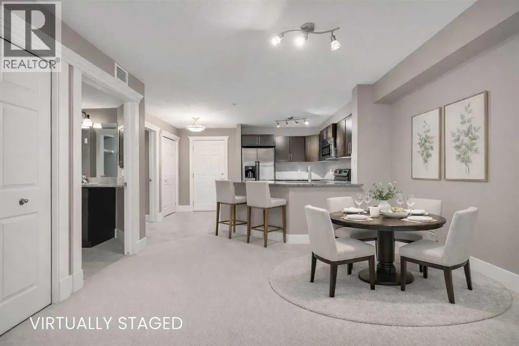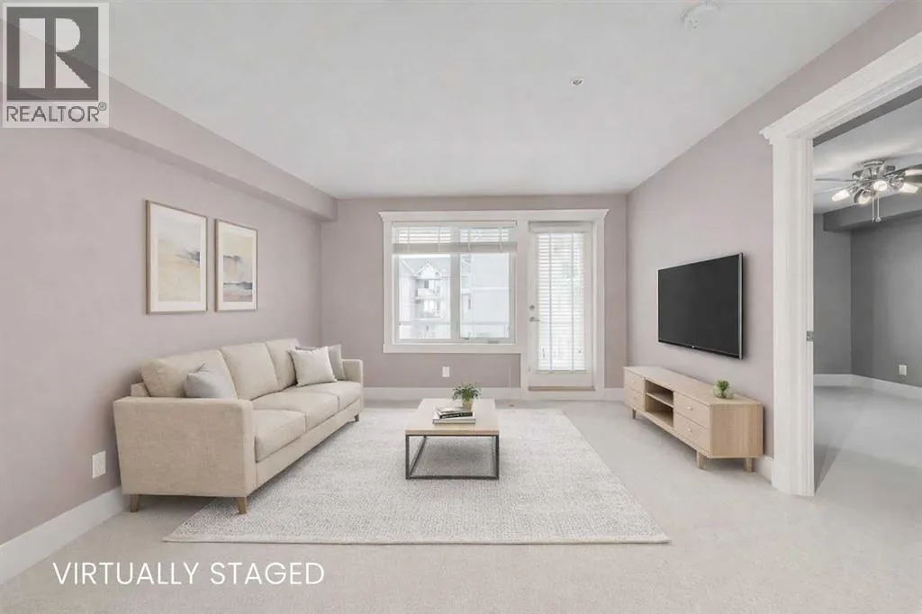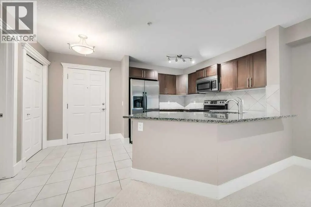 Welcome to this 3rd-floor condo in the desirable community of Rocky Ridge with unobstructed west-facing views of the Rocky Mountains. This well-maintained 1-bedroom plus den unit features a functional open-concept layout, ideal for first-time buyers, downsizers, or investors. The pet-friendly complex offers secure underground resident parking along with ample visitor parking. The kitchen is finished with granite countertops, upgraded cabinetry, stainless steel appliancesâincluding a new dishwasher, sink, and faucet, opening into a spacious living and dining area filled with natural light. Step onto the private balcony to enjoy stunning Rocky Mountain views and evening sunsets. The primary bedroom features a walk-through closet and a 4-piece ensuite with a new toilet, while the versatile den works well as a home office or additional storage. Added conveniences include in-suite laundry, an assigned underground parking stall, and a separate storage locker. Residents enjoy access to on-site amenities including a fitness centre and entertainment room, plus Rocky Ridge Ranch membership with year-round amenities such as a lake, splash park, skating, tennis courts, and basketball. Walking distance to the Tuscany LRT station with quick access to Crowchild Trail, Stoney Trail, shopping, schools, and the YMCA. Move-in ready and easy to show. (id:27476)