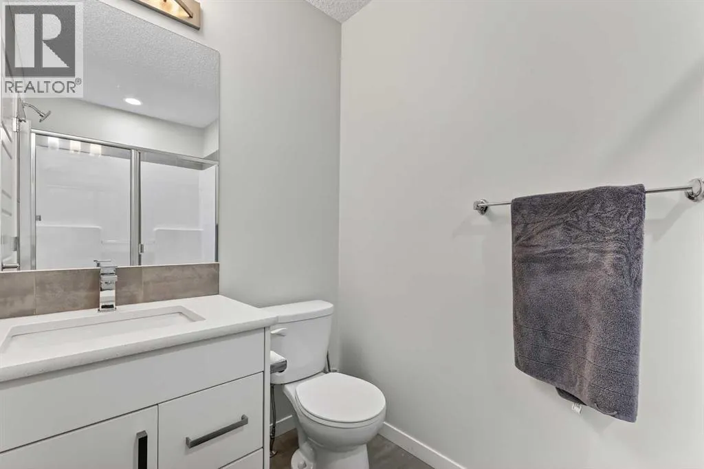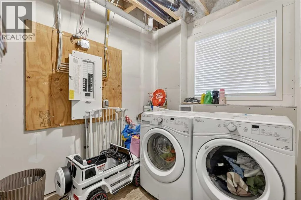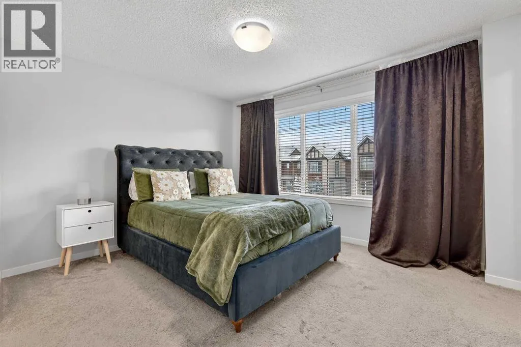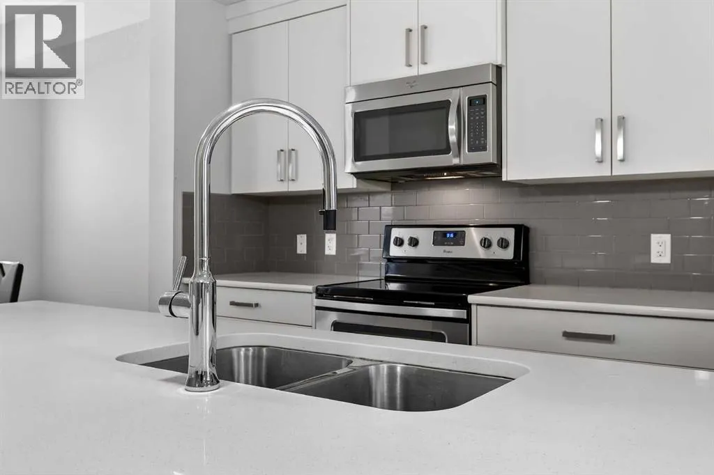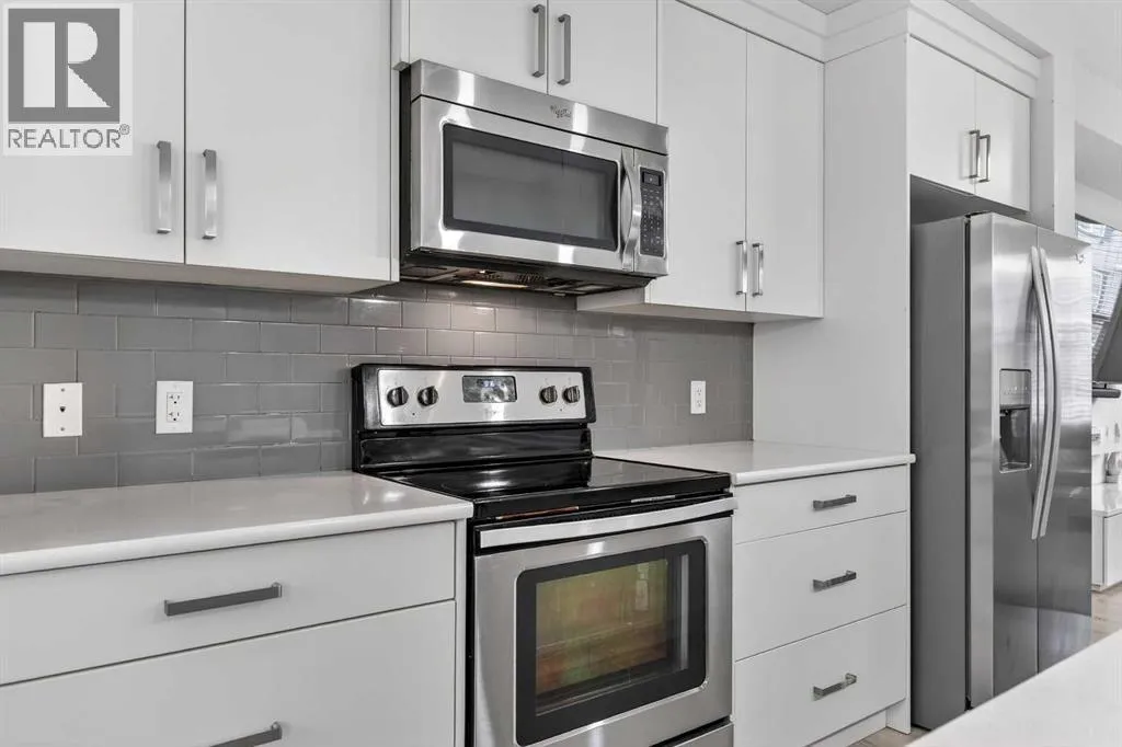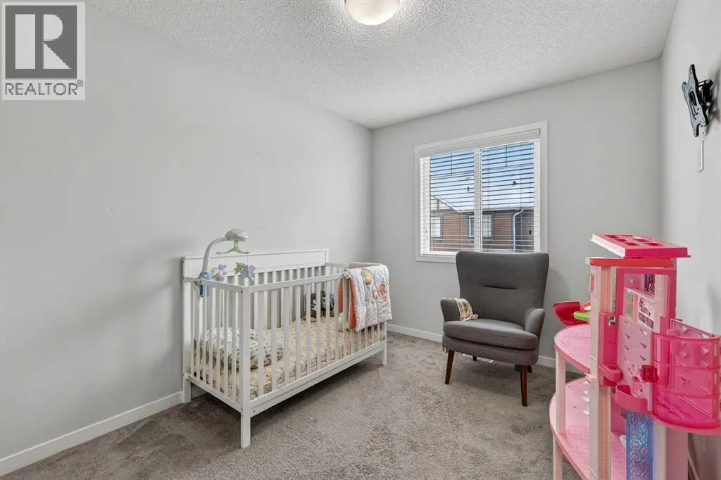 DOUBLE ATTACHED GARAGE with PARKING PAD, and green space. 1600 sq/ft TOWNHOME in the upscale community of New Brighton. The front patio area faces a sunny green space and walkway providing the perfect space for you to sit and relax. Upon entering you are greeted with a LARGE foyer with TONS of storage, a separate laundry room and access to your attached double garage with a full double driveway to allow for extra parking. Upstairs on the second level is a bright airy common space with lofty 9 FT CEILINGS. The spacious bright kitchen features white QUARTZ countertops, full upper cacbinets, a pantry and an OVERSIZED 10 FT ISLAND - perfect for entertaining! The dining area provides ample seating space. while the bright living room flows seamlessly onto the covered balcony with a gas line BBQ hookup. Adjacent to the living area, you'll find a handy office nook. A 2-piece guest bath adds extra convenience. Third level is the Master Bedroom with WALK-IN closet and 3 pce ENSUITE bathroom. Two additional Bedrooms and another 4pce bathroom complete the upstairs. Don't miss this opportunity to live in this beautiful area. This home has everything you or your young family needs. Close to Parks, Schools, South Trail Crossing Shopping, Transit, New Brighton Community Center and Athletic Park with Skating, Water Park, Tennis & more! (id:27476)