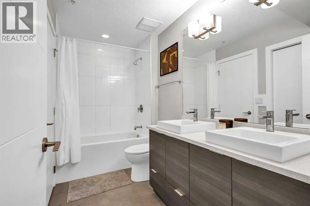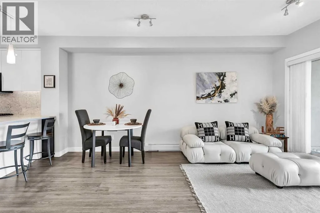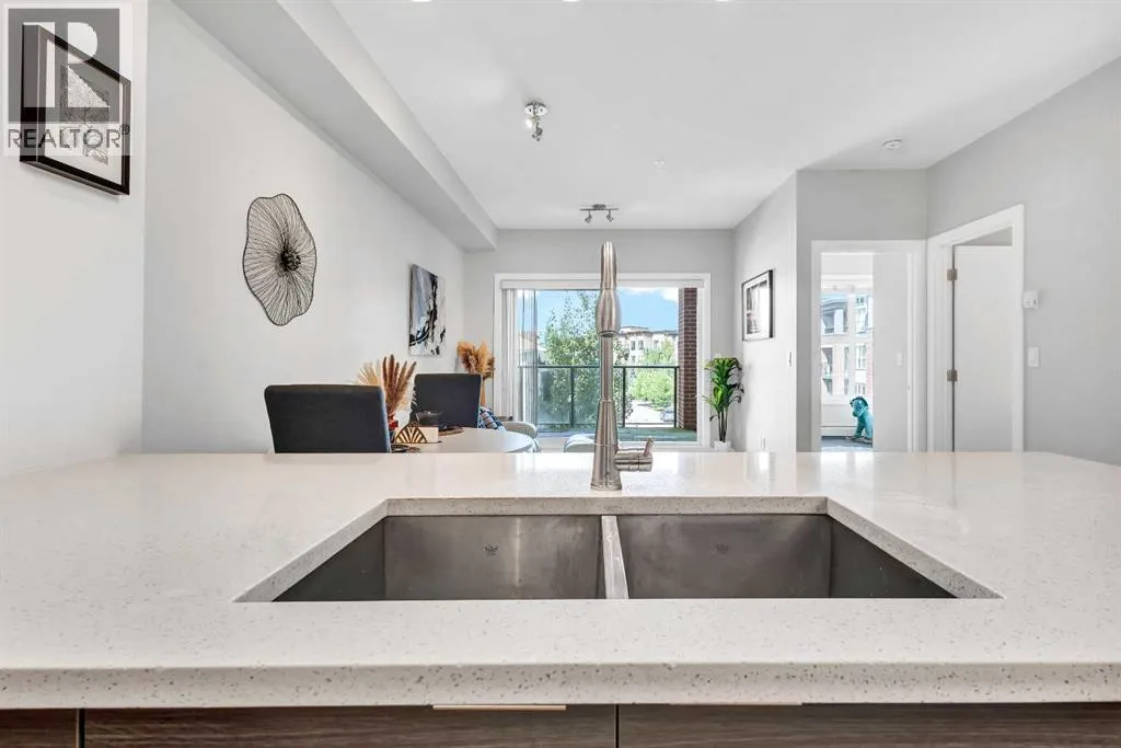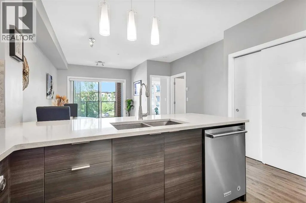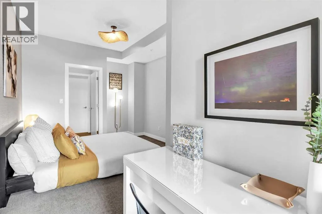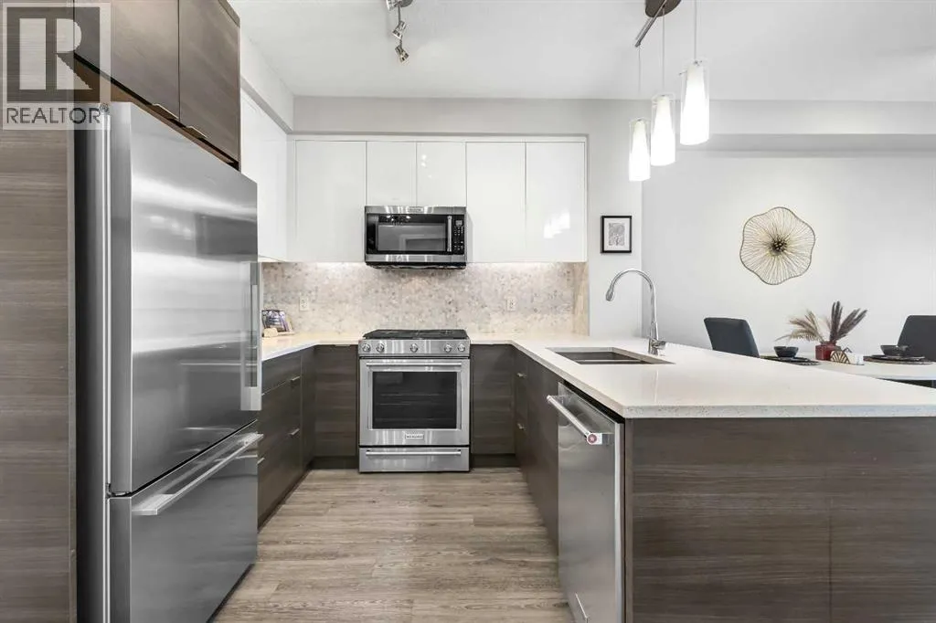 Discover the perfect blend of style and convenience in the highly sought-after SW community of Currie Barracks. This stunning 700+ sq. ft. residence in a prestigious complex offers a sophisticated urban lifestyle, perfect for first-time buyers and savvy investors alike. The heart of this home is a bright, open-concept living area featuring durable laminate flooring and a seamless flow. Natural light pours in through large sliding glass doors that lead to your spacious private balcony - an ideal spot for morning coffee or evening relaxation. Prepare to be impressed by the sleek, modern kitchen featuring contemporary cabinetry, stylish tile backsplash, premium stainless-steel appliances, elegant quartz countertops and a large kitchen island. There are two generous bedrooms: Including a primary suite complete with a spacious walk-in closet. A refined 5-piece bathroom and dedicated laundry area provide convenience for all occupants. Enjoy the perks of a well-maintained complex that include access to a car wash bay, secure bicycle storage, and ample visitor parking for your guests. Located in one of Calgaryâs most vibrant neighborhoods, you are minutes away from the trendy shops and dining of Marda Loop. A quick drive to Downtown Calgary and easy access to public transit. Walking distance to Mount Royal University and top-rated local schools. Experience the best of SW Calgary living. Schedule your private viewing today! (id:27476)