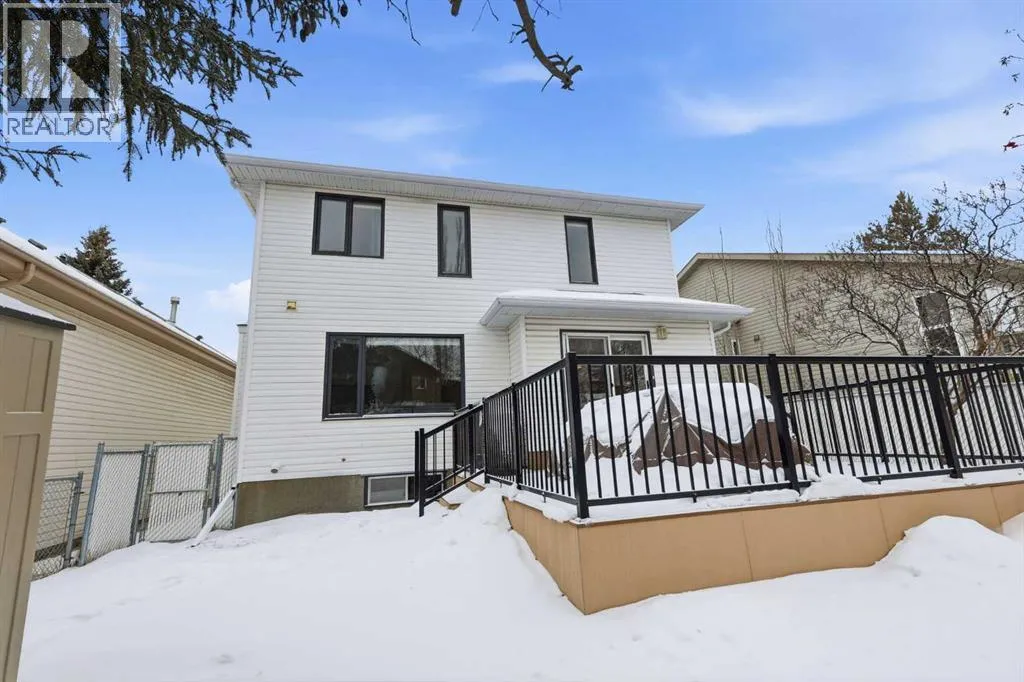 Welcome to this fantastic family home in Citadel, ideally situated on a quiet street within walking distance to schools and parks. Step inside and be greeted by impressive double-height ceilings and an abundance of natural light in the formal living and dining areas. The spacious kitchen features new appliances, a bright breakfast nook, patio doors leading to a beautiful new oversize composite deck (2023), and seamless access to the cozy family room with a fireplaceâperfect for everyday living and entertaining. The main floor is complete with convenient laundry, a dedicated office, and a newly renovated powder room. Upstairs, youâll find a generous primary retreat with a large walk-in closet and a brand-new, modern 3-piece ensuite, along with two additional bedrooms and a renovated 4-piece bathroom. The unfinished lower level offers a blank canvas ready for your personal vision. Additional highlights include air conditioning, professionally removed Poly-B plumbing (2023), and a radon mitigation fan installed in 2025. Located in a highly desirable community, this home is within walking distance to Citadel Park Elementary School (Kâ5), the community association, tennis courts, outdoor rink, baseball diamonds, green spaces, multiple playgroundsâincluding a charming âhiddenâ playground in the cul-de-sacâand more. With quick access to Stoney Trail, commuting is effortless. Book your private showing today and experience everything this wonderful home has to offer. (id:27476)