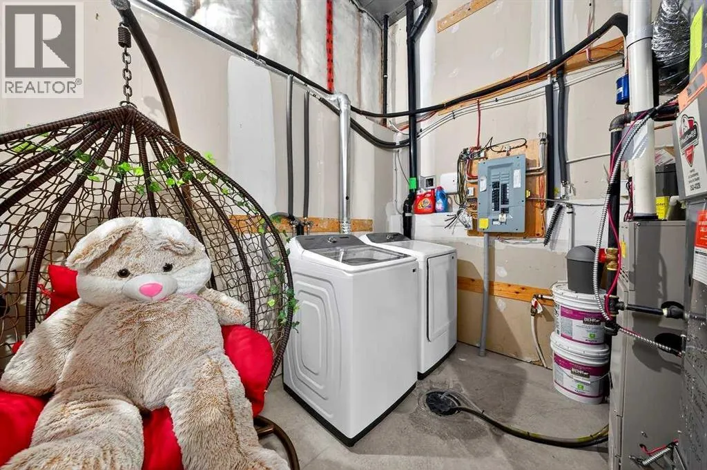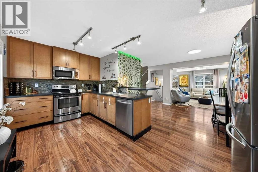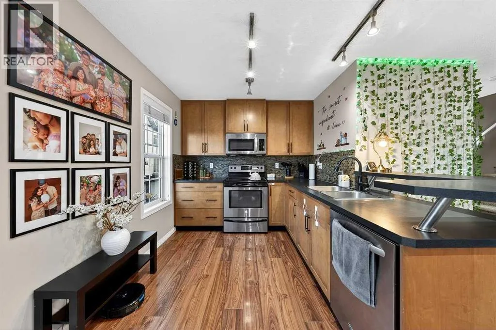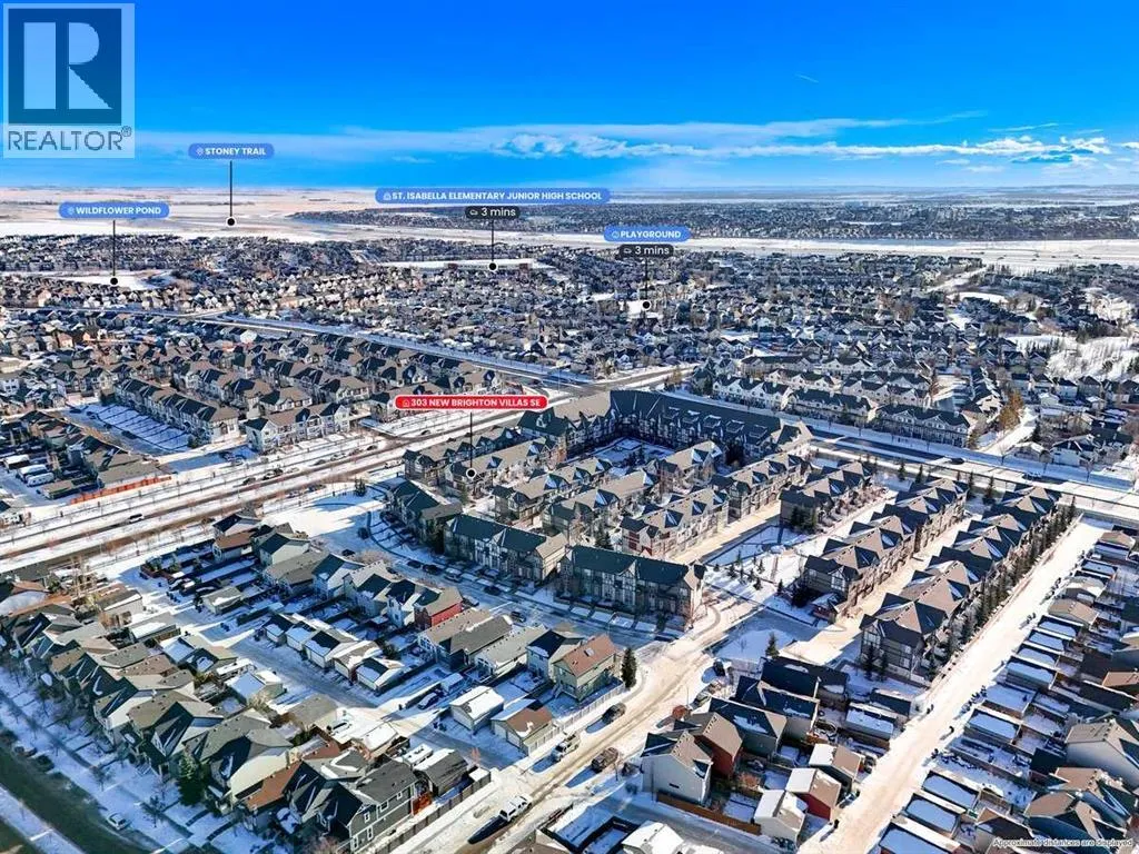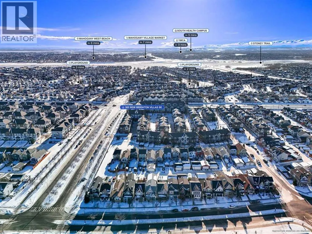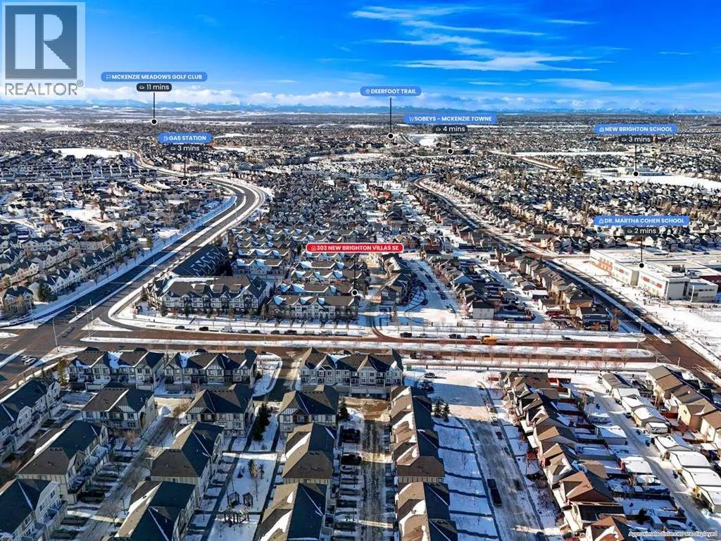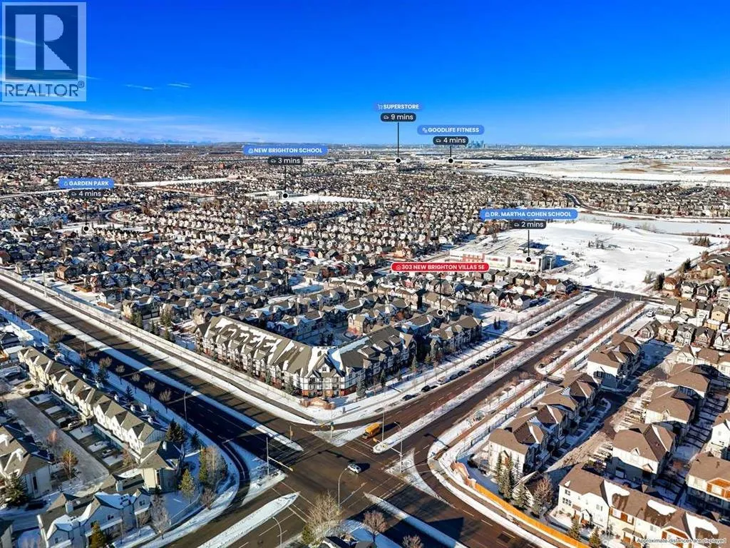 *** OPEN HOUSE SATURDAY JANUARY 10TH AND SUNDAY JANUARY 11TH 12-4 PM *** Welcome to your new home at 303 New Brighton Villas SE! A truly impressive and majestic end unit townhome that immediately captivates right as you enter with its high ceiling, tiled entryway, stunning chandelier, and an abundance of natural light streaming through the extra windows that only an end unit like this can offer. The bright, airy, and thoughtfully designed open concept main level is ideal for both everyday living and entertaining, featuring a spacious living room that flows effortlessly into a dining room and beautiful kitchen with ample cabinetry, generous counter space, and a convenient breakfast bar. A 2 piece bathroom completes the main floor, while air conditioning ensures year round comfort throughout your home. Adding exceptional value and convenience is the fully drywalled double attached garage, perfect for secure parking that can fit 2 bigger SUV's and additional storage. Upstairs, the home truly shines with two impressively large primary bedrooms, each designed as its own private retreat, both complete with a walk in closet and a full ensuite bathroom, a rare and highly desirable layout that offers outstanding comfort, flexibility, and privacy. Pride of ownership is evident throughout with numerous updates including a new hot water tank (2022), dishwasher (2022), microwave hood fan (2023), hand held shower head (2023), washer and dryer (2023), and all lighting upgraded in 2023. The well managed complex has also seen a full roof replacement approximately three years ago, offering peace of mind while maintaining impressively low condo fees. Enjoy the charming front patio for relaxing mornings or evenings, and take advantage of the unbeatable location in the vibrant community of New Brighton, close to playgrounds, schools, walking and biking paths, and nearby shopping plazas. This is a home that feels special from the moment you arrive and continues to impress at every turn. Make it yours today! (id:27476)