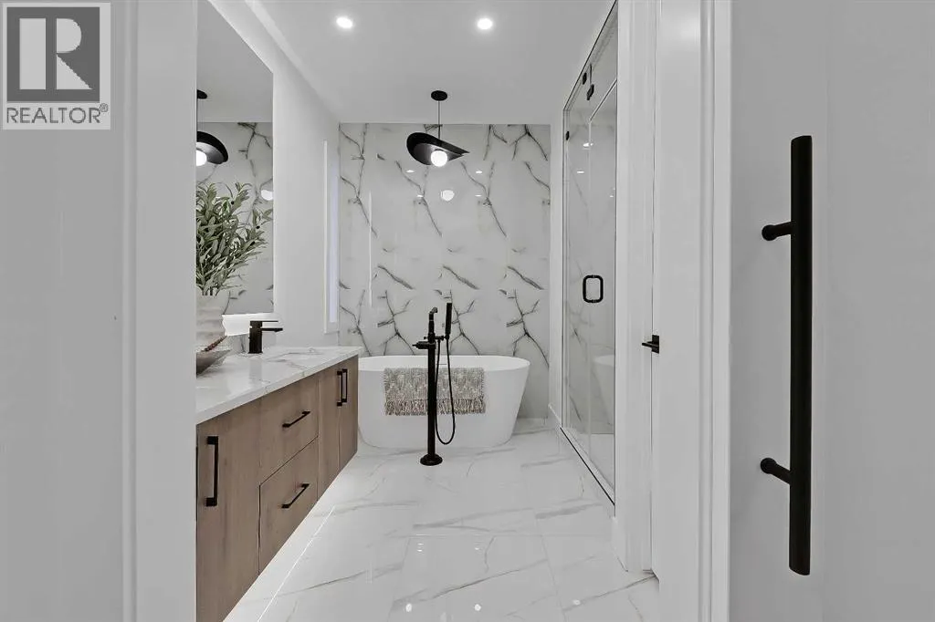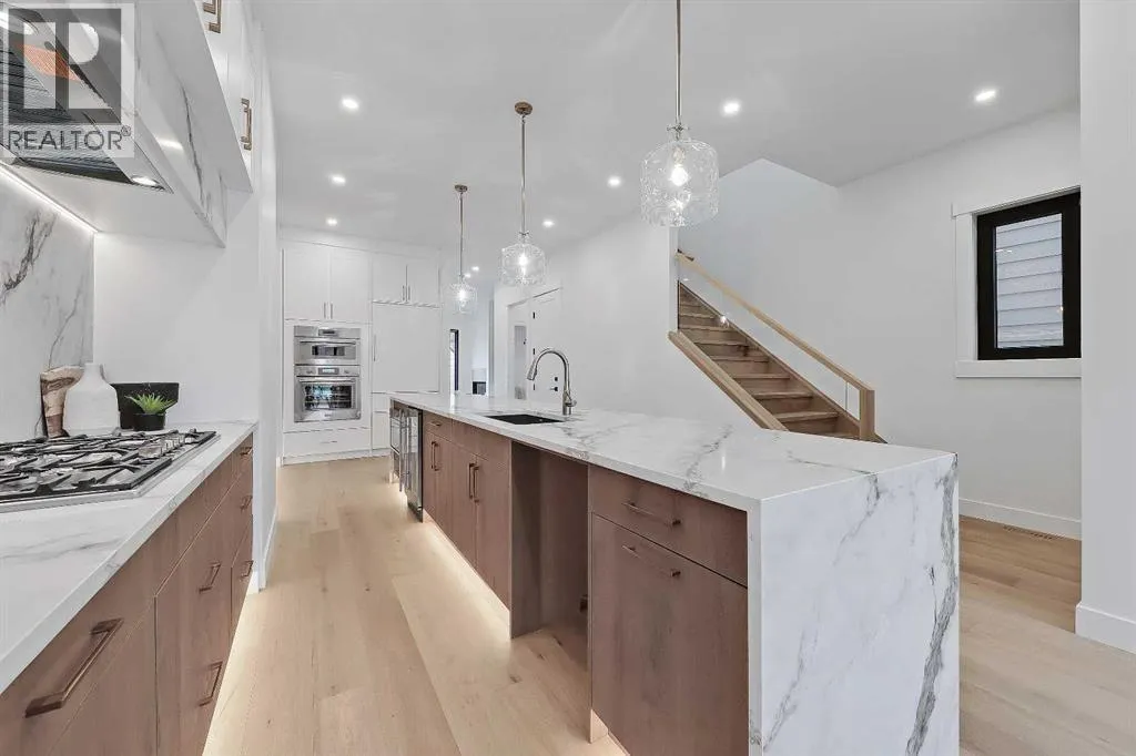 Welcome to a home where sophistication meets functionality in one of Calgaryâs most sought-after inner-city communities â West Hillhurst! Set on a SOUTH-FACING lot, this stunning NEW BUILD is designed to impress with its modern architecture, thoughtful layout, & high-end finishes. Step inside & experience a bright, open-concept main floor that feels both inviting & luxurious. The heart of the home is the designer kitchen â a true showpiece featuring a massive waterfall island w/ bar seating, extensive custom millwork, quartz countertops, a built-in pantry, & premium appliances, including a gas cooktop & built-in wall oven. A full-height backsplash, stylish pendant lighting, & sleek soft-close cabinetry complete the space. The nearby dining area is perfect for hosting, w/ room for a large table to gather friends & family. The living room is designed for both relaxation & entertaining, centred around a striking gas fireplace w/ a floor-to-ceiling surround that creates a bold statement next to the modern built-in media wall. Large sliding doors flood the space w/ natural light & open onto the rear deck, seamlessly blending indoor & outdoor living. A functional mudroom on the side of the home is equipped w/ a built-in bench, & an upscale powder room completes the main floor. Upstairs, the primary retreat is a sanctuary w/ soaring vaulted ceilings & not only an expansive walk-in closet but a stylish built-in wardrobe & shelving in the main area for additional convenience. The spa-inspired ensuite features a STEAM SHOWER, a freestanding soaker tub, dual vanities, & heated floors. Two additional JUNIOR SUITES are well-sized, & each has a beautifully finished ENSUITE w/ walk-in showers, while a full-size laundry room w/ built-in cabinetry & sink adds everyday convenience. The lower level offers incredible flexibility w/ a fully self-contained 2-BED LOWER LEGAL SUITE (Approved & subject to final inspection by the city), complete w/ a modern kitchen, spacious living area, ded icated laundry, & a private entrance. Whether you use it for revenue generation, a mother-in-law suite, or a nanny suite, this space offers endless possibilities! Or, it can function as an extension of the home, providing a fantastic rec room, home gym, or media space. West Hillhurst is one of Calgaryâs most desirable inner-city neighbourhoods, offering a vibrant community feel w/ unbeatable access to amenities. Youâre just minutes from downtown, Kensingtonâs boutique shops & restaurants, & the beautiful Bow River pathways. Enjoy morning coffee at Vintage Caffeine Co., brunch at Dairy Lane Café, or take a quick stroll to nearby parks, green space & recreation facilities â like the Helicopter Park thatâs just at the end of the street! Top-rated schools, SAIT, the University of Calgary, & Foothills & Childrenâs Hospitals are all close by, w/ easy access to major roadways for a seamless commute. Call your favourite agent today! (id:27476)