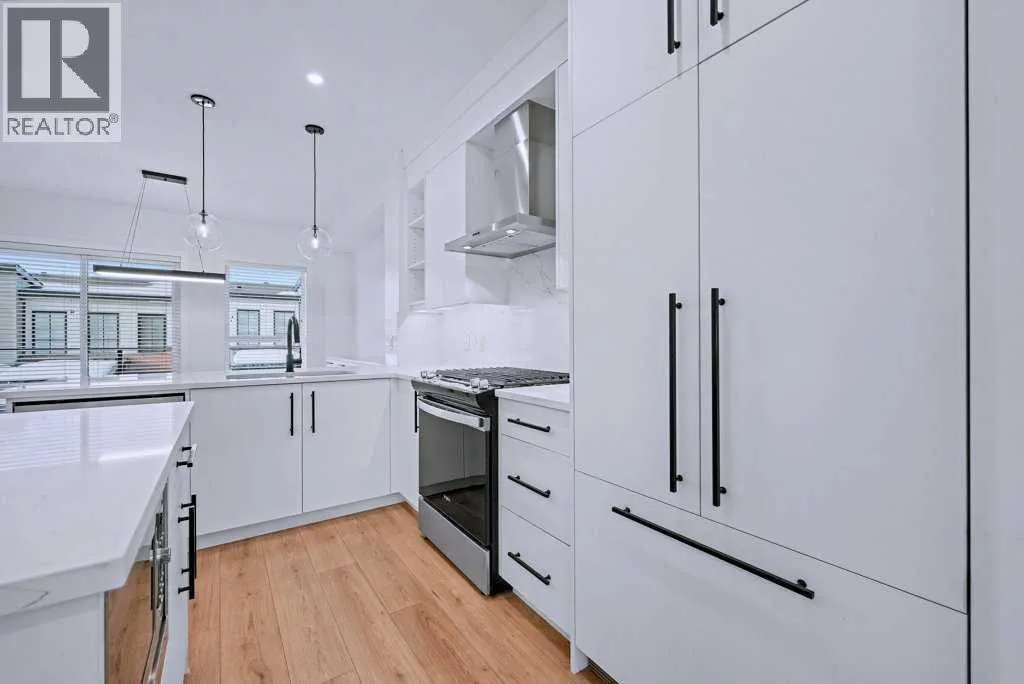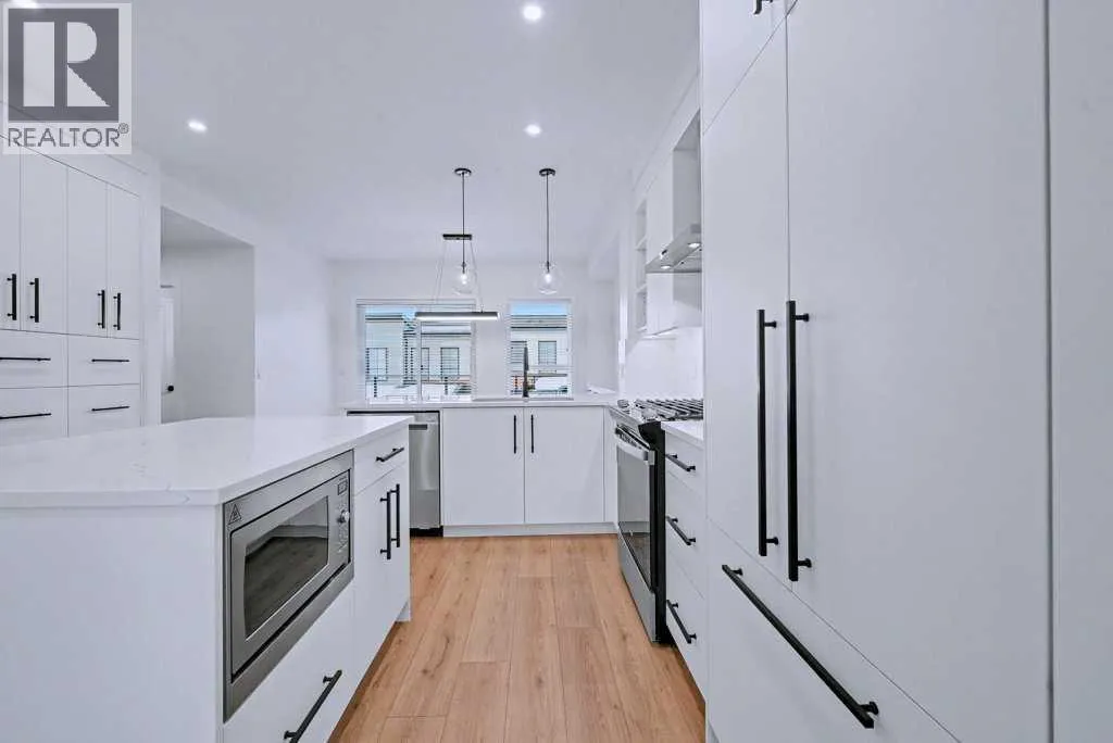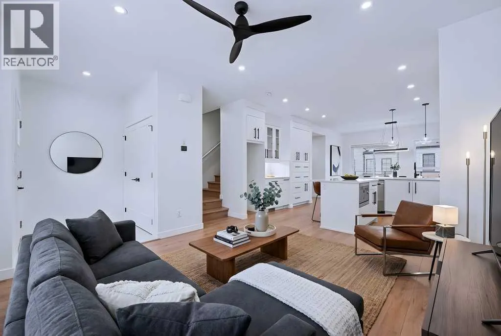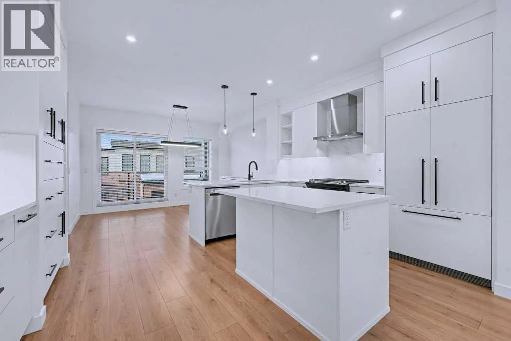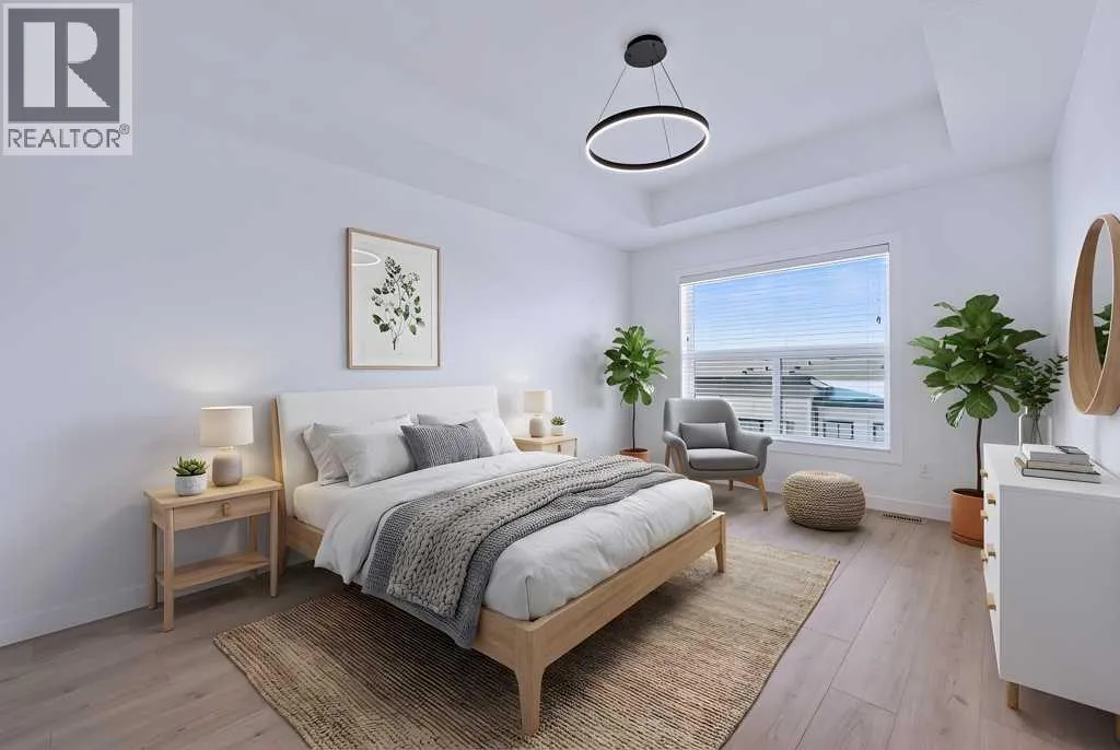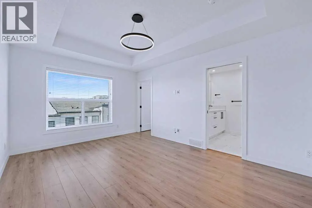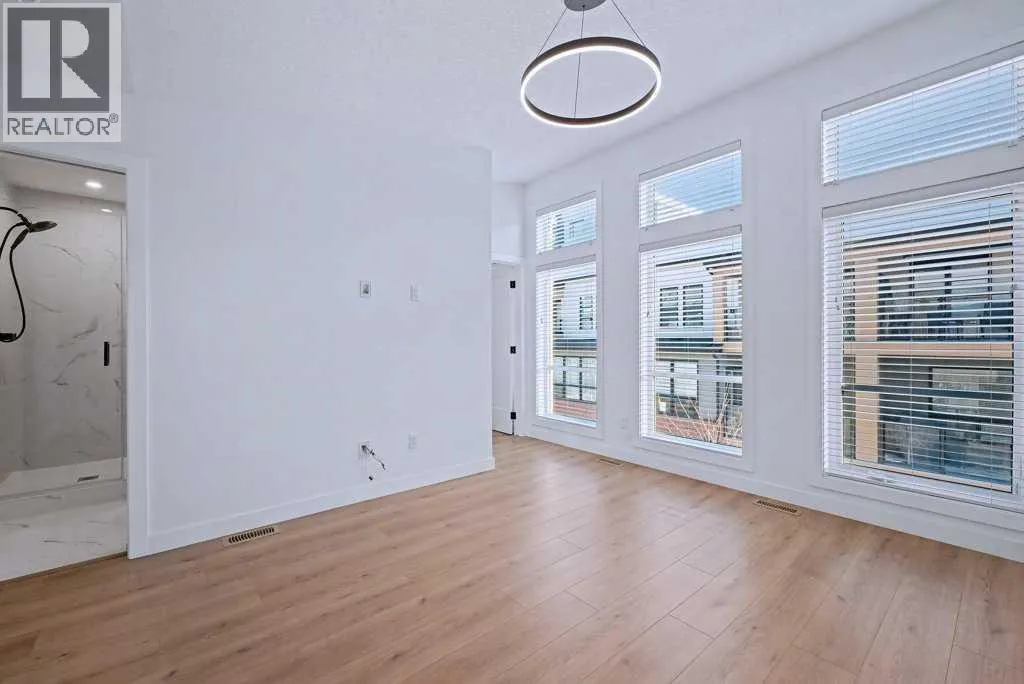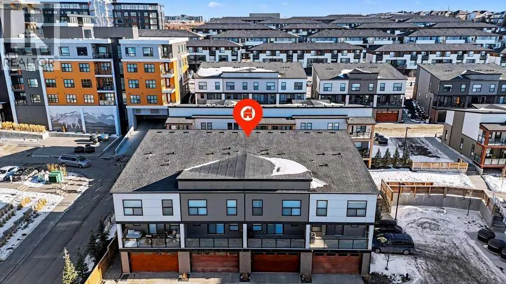 TRIPLE-CAR GARAGE|EXCECUTIVE FINISHINGS|PANORAMIC MOUNTAIN VIEWS. Welcome to effortless elegance in the heart of Springbank Hill, this stunning townhome delivers the perfect balance of upscale living and low-maintenance convenience â ideal for first-time buyers, professionals seeking a refined lock-and-go lifestyle or those looking to downsize without compromising quality. Step inside to an open floorplan where the Living room, kitchen, and Dining areas flow seamlesslyâideal for those that love to entertain. The chef-inspired kitchen is a true highlight, featuring both a peninsula and island for extra prep and seating, a wall of custom cabinetry for organized storage, and a quartz coffee bar with pantry âeverything you need at your fingertips. Hosting is effortless with the Dining roomâs additional custom cabinetry and expansive quartz serving area. A stylish powder room and a sunny west-facing balcony with a natural gas hook-up extend your living space, all framed by 9-foot ceilings that add light and openness. Upstairs you will enjoy the privacy of two spacious primary suites, each with its own spa-like ensuite and custom walk-in closet. The main retreat feels like a boutique hotel, complete with soaring vaulted ceilings, oversized windows, and a seamless ensuite-to-closet design to simplify your morning routine. The spacious second suite doubles as a smart home office or guest/additional bedroom. Everyday conveniences are built right in, including second-floor laundry with stackable energy-efficient LG washer/dryer and added shelving for storage. Car lovers and hobbyists will appreciate the rare, heated triple-tandem garage with waterspout and durable polyaspartic flooring (superior to epoxy)âa space as functional as it is impressive. The ultra-quiet central air conditioning system adds to your comfort on those warm summer nights. Set within walking distance of top-rated public and private schools (including Webber, Rundle, and Guardian Angel), endless parks and pathways, the West (69th Street) LRT station, and newly renovated Westside Rec Centreâthis address delivers on location. Shop, dine, and run daily errands within minutes at Aspen Landing, Blush Lane, and nearby boutiques and cafés. This is stress-free living tailored for modern lifestyles. This property is an absolute must see! (id:27476)