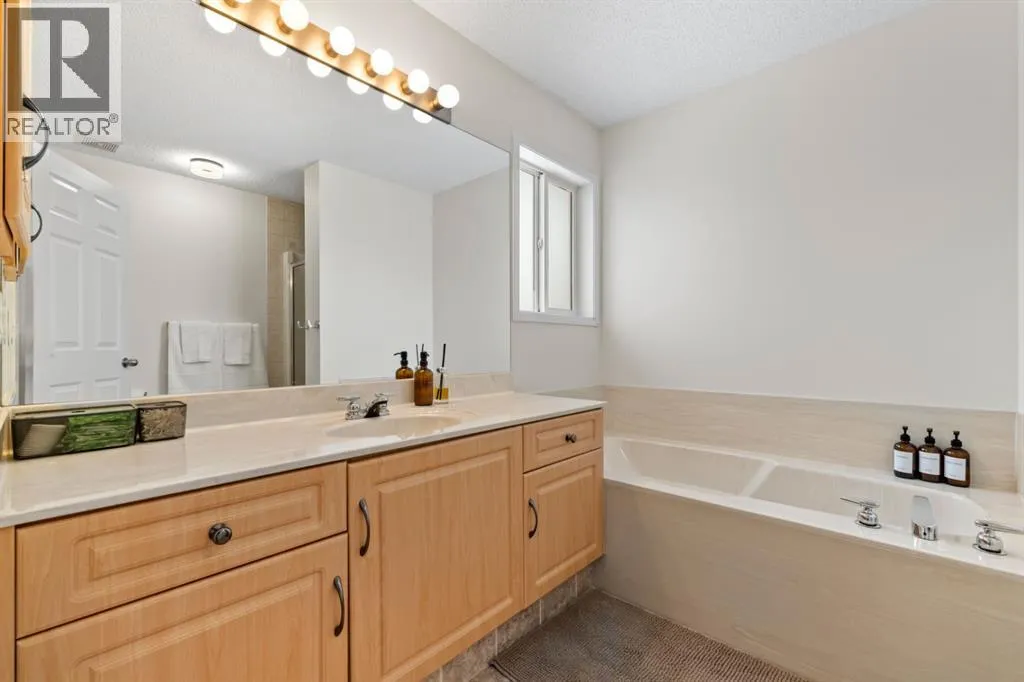 *OPEN HOUSE sun feb 8 2026 1-3pm* Welcome home! Backing onto pathway/green, 4 bed / 3.5 bath, Updated interior, fully finished basement & more! All located in the sought after NW community Panorama Hills - with a plethora of amenities, green spaces, schools, & access to highways. Step inside to your sunlit home that has large windows, and a great layout that connects dining, living and kitchen seamlessly creating a one of a kind oasis for entertainment. Best of all, no neighbours behind with the walking path. Gleaming hardwood floors throughout the entire upper levels leaves the home with an upscale look. The updated kitchen as so much to offer which includes: granite countertops, SS appliances, cabinets to the ceiling, additional lighting, large island with eating bar, pantry, tons of storage space in cabinets, as well as large sliding glass doors off the back to enjoy the BBQs! The main floor is complete with laundry, half bath, mud room. Heading upstairs you will find 3 great sized bedrooms, one being the primary retreat. The primary has a walk in closet, and a full size ensuite that features: vanity, tub, walk in shower, toilet. The complete the upper level is the second full bathroom with vanity, bath/shower combo and toilet. Basement is fully finished and comes equipped with a large rec room / entertainment space, along with another full bath and private room. This home is well kept, updated and ready for its new owners to enjoy. Book your viewing today before it's gone. (id:27476)