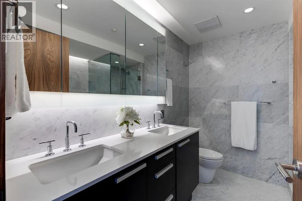 Welcome to The Concord; a magnificent riverside residence reflecting the essence of luxury living. A landmark anchored in the pulse of Calgaryâs most affluent community â offering a harmoniously blended marriage of live, work, & play. Dine at one of many exquisite culinary offerings located within the community which will impress even the most well-traveled palette. Host parties in the amenities rich social lounge overlooking the summer water garden/winter skating rink fully equipped with a wet bar, summer kitchen, BBQ, and two outdoor firepits. Unwind after a long day in your very own yoga room and private gym. Come home and appreciate the opulent convenience of 24hr concierge service and the expediency of a private elevator that leads to nearly 2,000 sq.ft. of thoughtfully designed living space â showcasing some of the most impressive views that Calgary has to offer. Displaying the highest level of craftsmanship and luxurious interior tailoring within each room including: German engineered Poggenpohl kitchen, Miele appliances, engineered hardwood flooring, Bianco Carrara marble features, rich walnut detailing, custom built-ins, tray ceilings, expansive windows, heated tile flooring, and so much more. Complete with a private double garage (with room for a double car lift) and storage. Call today to set up your private tour. (id:27476)