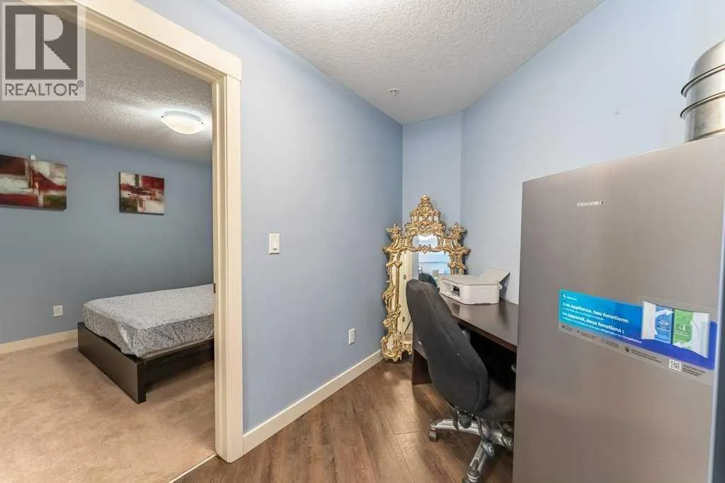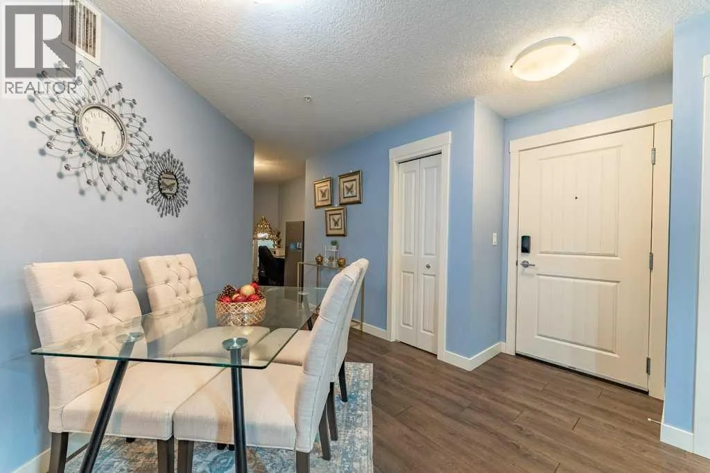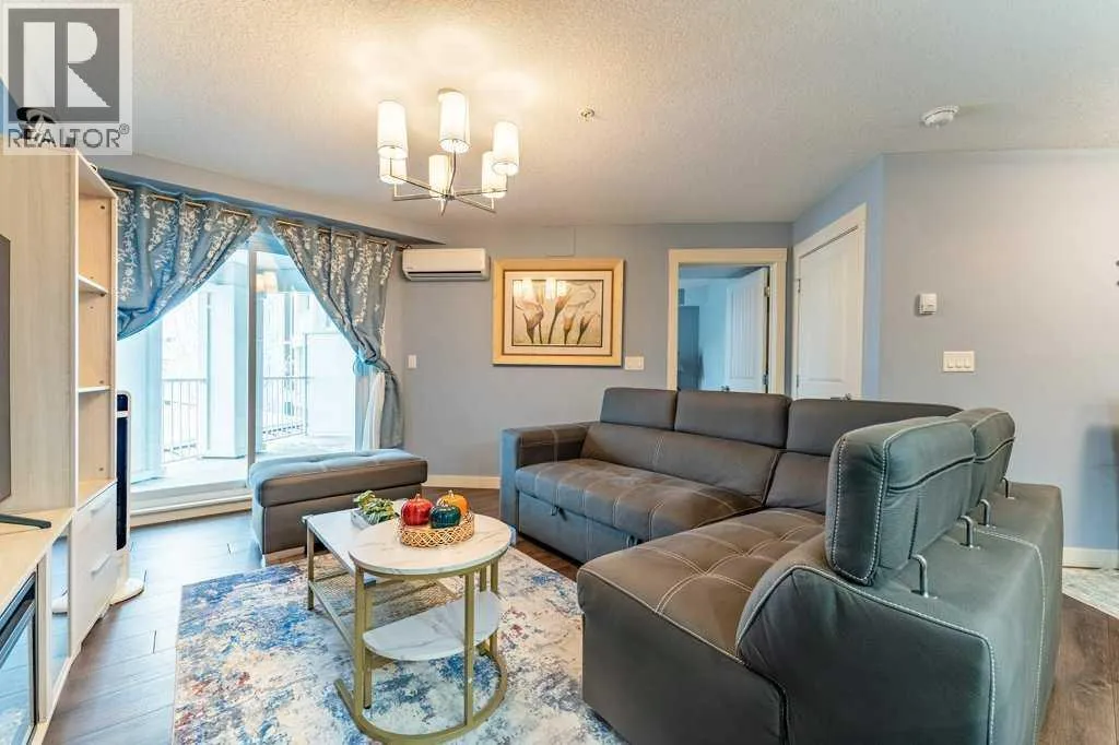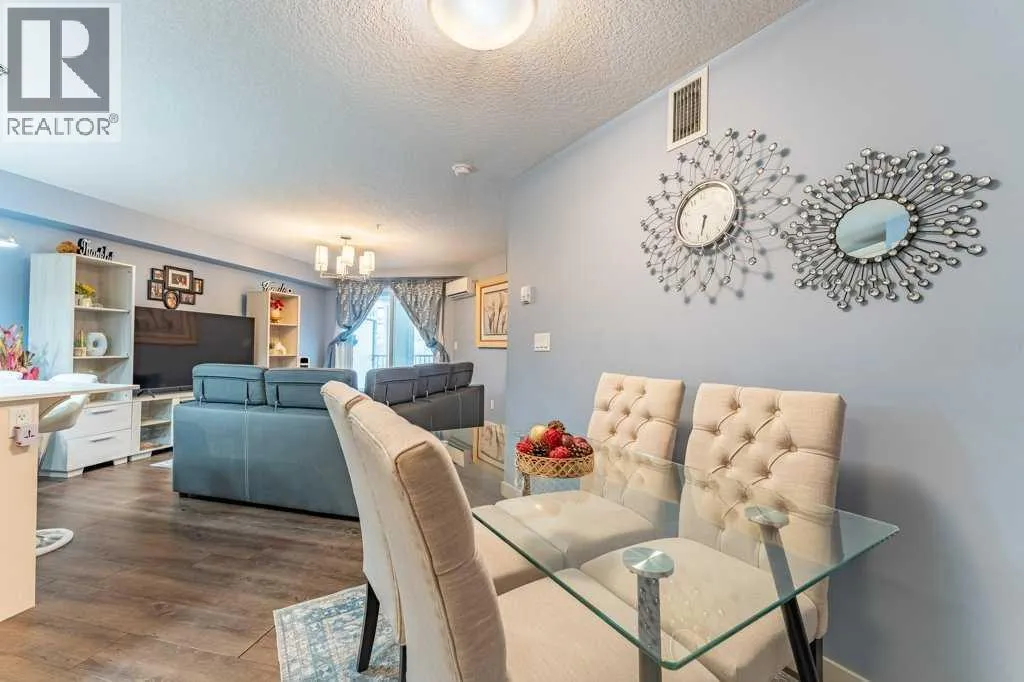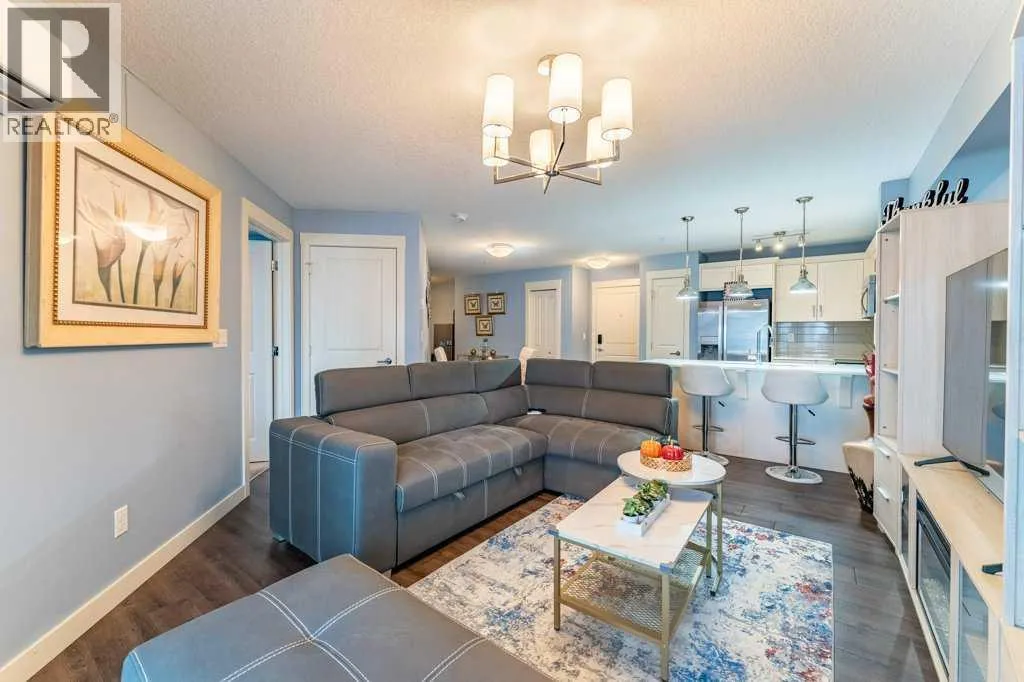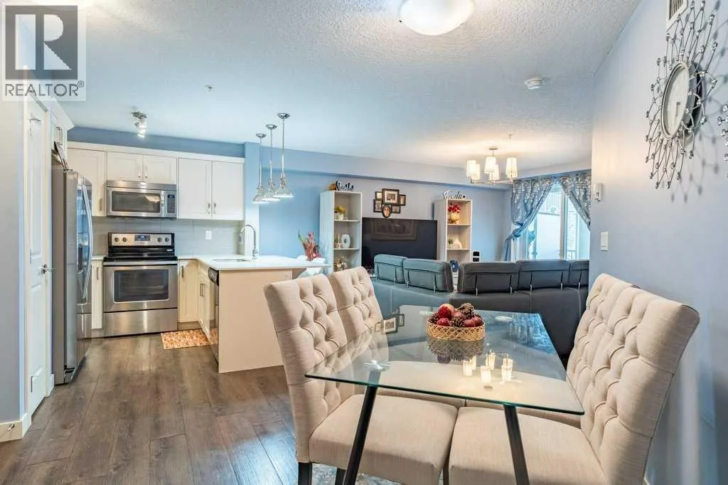Open House: Sat Jan 10th 12:00 - 2:00. Welcome home to this bright and spacious 2-bedroom + den suite featuring an open-concept floor plan, sunny south exposure, and true move-in-ready condition. Located in one of Calgary's best communities - Auburn Bay featuring LAKE ACCESS that offers a wide range of fantastic outdoor activities for both Summer & Winter and proximity to South Health Campus, shopping and restaurants. Thoughtfully designed with durable vinyl plank flooring, in-suite air conditioning, and abundant natural light throughoutThe modern kitchen offers ample cabinetry, stainless steel appliances, quartz countertops, and a functional peninsula with breakfast bar, seamlessly overlooking the dining and living areasâperfect for both everyday living and entertaining. The living room opens directly onto an extra-large private balcony, extending your living space outdoors.The primary bedroom includes a walk-in closet and a 3-piece ensuite with stand-up shower. A generously sized second bedroom, located next to the main bath, is ideal for guests or a roommate. A versatile denâperfect for a home officeâalong with in-suite laundry completes this well-appointed home.Additional features include one titled underground parking stall with storage locker in a heated parkade. The Auburn Walk complex is ideally located just steps from Auburn Station, offering a wide selection of shops, restaurants, pubs, and everyday amenities. The nearby BRT Route 302 provides direct access to downtown, and the home is within walking distance of the future Green Line LRT.An exceptional opportunityâdonât miss out! (id:27476)