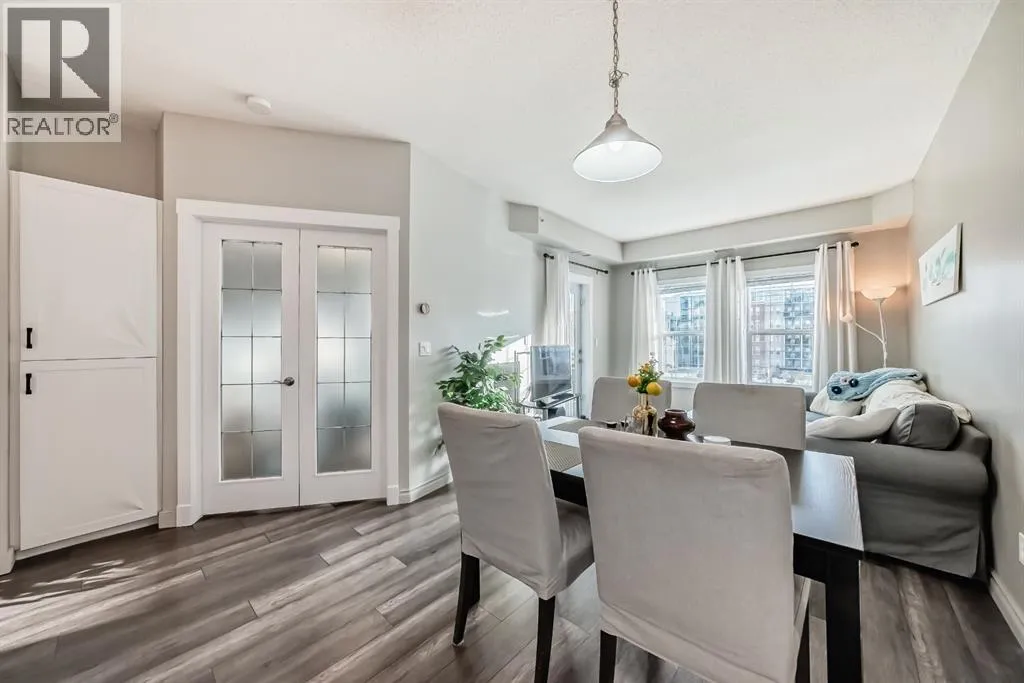 Welcome to this bright and well maintained 2 bedroom, 2 bathroom + den condo, located on the third floor of the award-winning Gateway SouthCentre, proudly named 2025 Condominium of the Year by the Canadian Condominium Institute (CCI), Southern Alberta. This sun-filled, south-facing unit overlooks the peaceful courtyard and green space and is set within a solid concrete, soundproof building. The open-concept layout showcases true pride of ownership, featuring a gourmet kitchen with stainless steel appliances, ample cabinetry, and a functional design ideal for everyday living and entertaining. The den has been thoughtfully converted into a walk-in closet, offering exceptional storage, while a separate laundry closet adds everyday convenience. Step outside to your private balcony with a gas line, perfect for a BBQ or cozy fire table, extending your living space for year-round enjoyment. This single-level home includes one titled, heated underground parking stall with a storage cage conveniently located directly in front of the stall. Residents enjoy outstanding amenities including a fitness centre, party rooms, and guest suites. Ideally located with shopping, restaurants, Fish Creek Park, bus service right outside the complex, and LRT Station nearby, this home offers an exceptional blend of comfort, quality, and convenience. (id:27476)