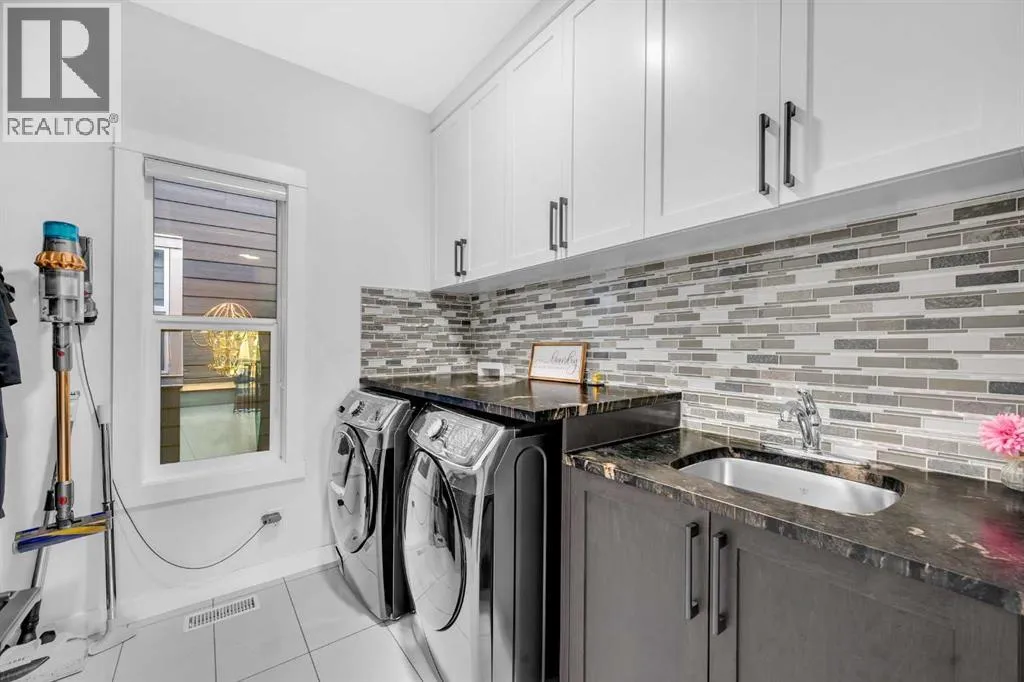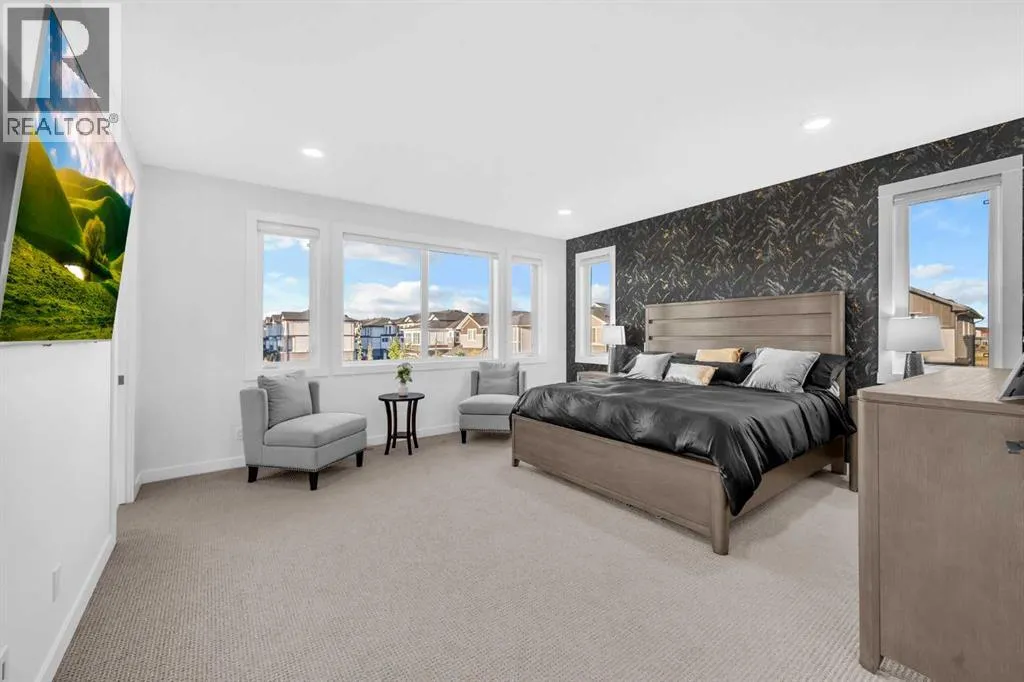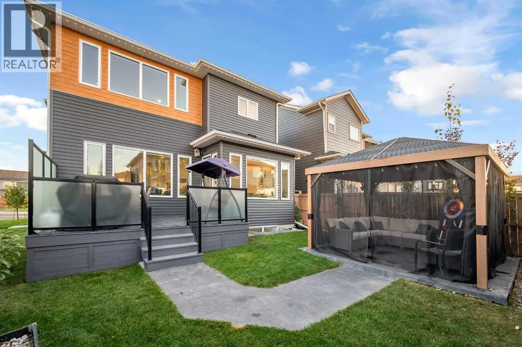 A truly unique home in Cornerstoneâexceptional value on a premium corner lot! This fully custom 6-bedroom, 4.5-bath Shane Homes masterpiece offers over 4,700 sq.ft. of luxurious, functional living rarely found in the area. The main floor showcases 10-ft ceilings, 8-ft solid doors, a stunning upgraded kitchen with stacked cabinets, a massive island, premium built-in appliances, quartz counters, and a full spice kitchen. An elegant living room, grand family room, entertainerâs bar, and a private office with built-ins complete the main level.Upstairs features 4 spacious bedrooms, upgraded baths, convenient laundry, and a vaulted bonus room with a custom media wall. The primary suite offers a spa-inspired ensuite and a custom walk-in closet.The fully developed basement includes 9-ft ceilings, oversized windows, 2 bedrooms, a full kitchen, a huge living/dining area, separate laundry, and a private side entranceâideal for multi-generational living or rental income.Enjoy a professionally landscaped backyard with a large deck, gazebo, and gemstone lighting. Loaded with upgrades including Central A/C, heated garage, engineered hardwood, luxury commercial-grade carpet, central vacuum, built-in speakers, and independent thermostat controls on all three floors.Close to schools, shopping, parks, the airport, and major highwaysâthis one-of-a-kind Cornerstone home delivers unmatched space, luxury, and long-term value. Book your showing today. (id:27476)
