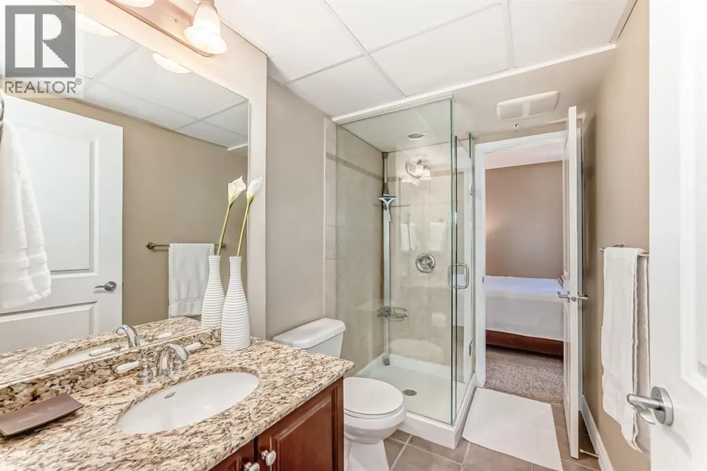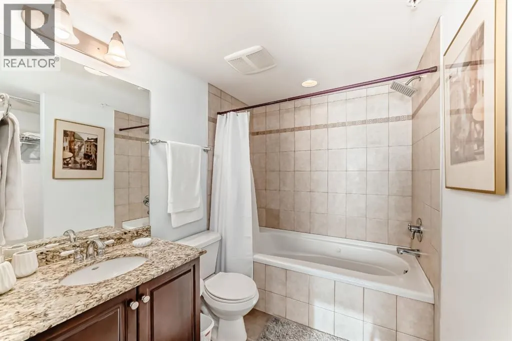 An exquisite residence located in the esteemed FIVE WEST â Phase 2, nestled in the vibrant heart of Downtown. This luxurious haven showcases a clever layout adorned with air conditioning, two secluded bedrooms, two well-appointed bathrooms, a conveniently structured office nook, and a charming fireplace for those cozy evenings. All these attributes speak volume of its move-in readiness that uniformly exudes evident pride of ownership. Situated in the epicenter of all amenities, this property is within an arm's reach to the serene Bow River, an extensive pathway system, a diverse range of restaurants, and shopping outlets. The Downtown Core and LRT access are effortlessly walkable, engraving a superb urban living experience. Entering this home you will find a modernized kitchen adorned with pristine granite countertops and stainless appliances. It flawlessly opens onto the dining and living room, illuminated by floor-to-ceiling windows that radiate natural light. The corner fireplace amplifies the ambiance, and a private balcony comes complete with a gas bbq outlet, perfect for the al fresco dining experience. The generously sized master bedroom boasts a comprehensive 4-piece ensuite with jetted tub and sizeable walk-in closet. The second bedroom ingeniously features a door to a second 3-piece bathroom, ensuring privacy for all occupants. Further home amenities include a custom-built computer nook and spacious in-suite laundry, showcasing well-thought-out efficiency. The building's perks include a heated, underground parking, a dedicated storage unit, an inviting party room that opens onto a private sun deck, dutiful concierge service, and a handy car wash. Indoor visitor parking is also graciously provided, putting your company's convenience at the forefront. Don't miss this golden opportunity. Contact your agent today for a private viewing and let this property pique your house-hunting desire! (id:27476)