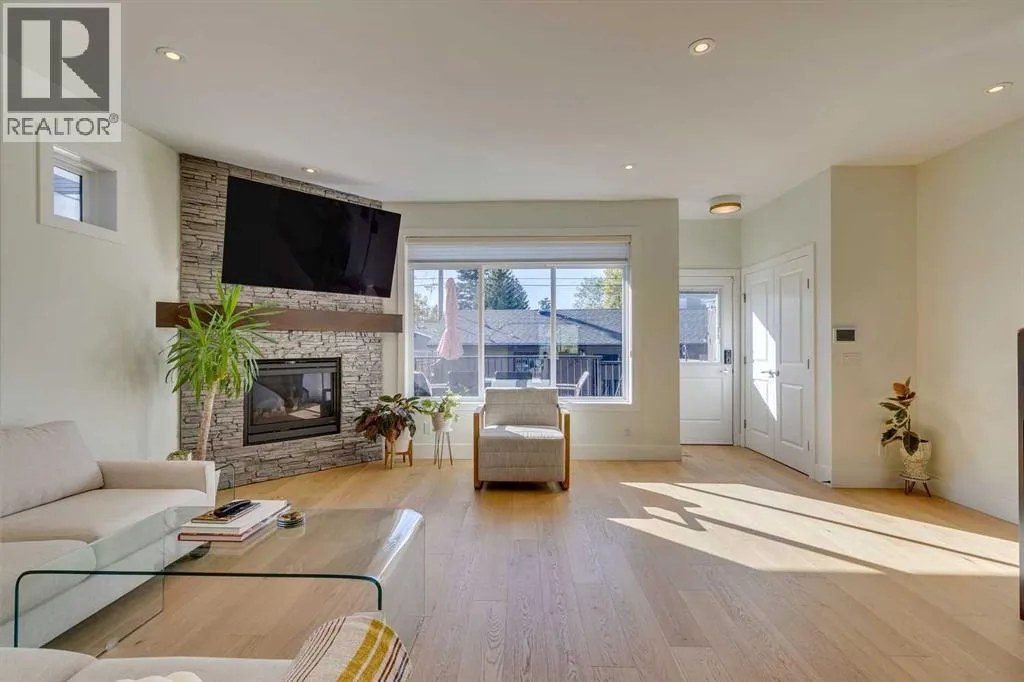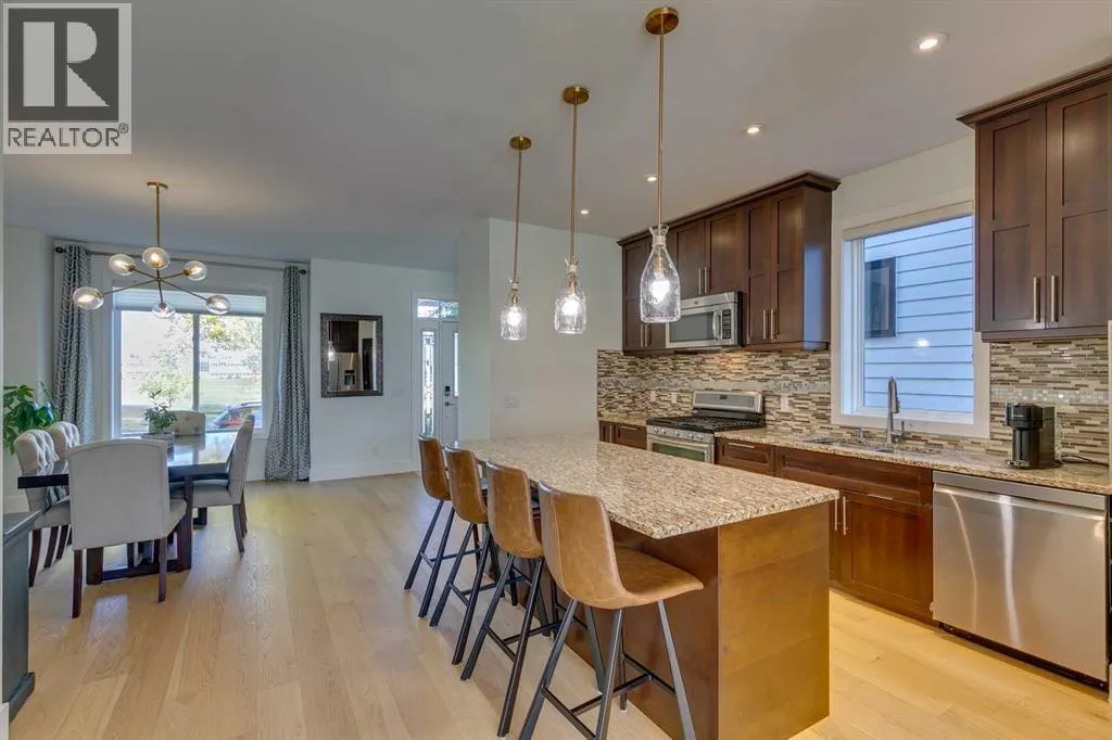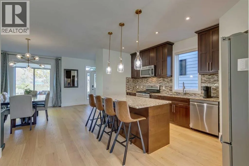 Welcome to this beautifully updated, move-in ready semi-detached home in the heart of Glenbrook, offering the perfect blend of space, comfort, and location. With 1,827 sq ft above grade plus an additional 825 sq ft of fully finished basement, this 4-bedroom, 4-bathroom home is ideal for families or professionals seeking both functionality and style.Recent upgrades provide peace of mind and modern appeal, including fresh paint throughout (Aug 2025), new hardwood flooring on the main level (2025), central air conditioning (2022), water softener (2022), and LeafFilter gutter protection (2022).The bright and welcoming main floor features a spacious dining area with a large picture window overlooking green space and a schoolyard across the street. The gourmet kitchen is a true standout with granite countertops, gas stove, stainless steel appliances, central island, a brand-new dishwasher, and a generous walk-in pantryâperfect for cooking and entertaining. The cozy living room with a gas fireplace opens onto a sun-filled west-facing deck and a low-maintenance backyard with artificial turf, ideal for relaxing or hosting guests.Upstairs, the west-facing primary retreat is a highlight, complete with a large walk-in closet and a spa-inspired ensuite featuring dual sinks, a soaking tub, and a separate shower. Two additional bedrooms, a full bathroom, and convenient upper-floor laundry complete this level.The fully finished basement expands your living space with high ceilings, a spacious recreation room with a built-in bar cabinet, a large fourth bedroom, a full bathroom, and plenty of storage.Pride of ownership is evident throughout. The location is exceptionalâsteps from green space, minutes to shopping, restaurants, and amenities, and offering quick access west for easy mountain getaways. Enjoy sunny afternoons in the backyard and the convenience of an established, family-friendly community. (id:27476)