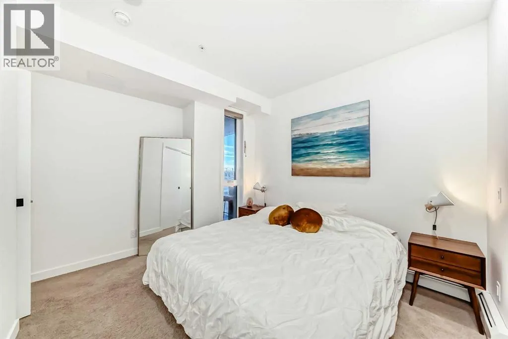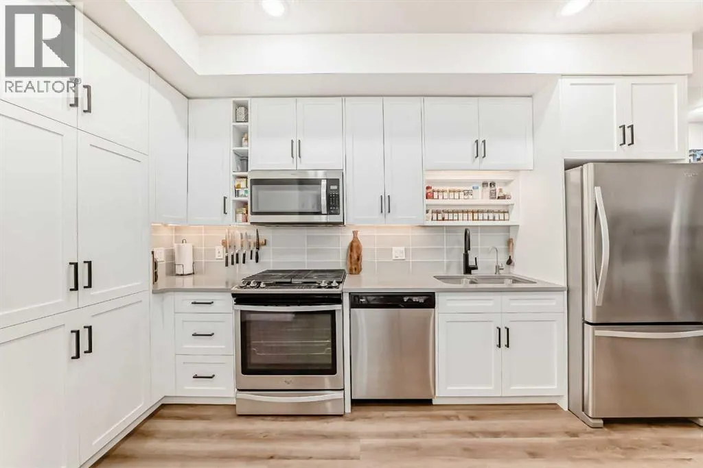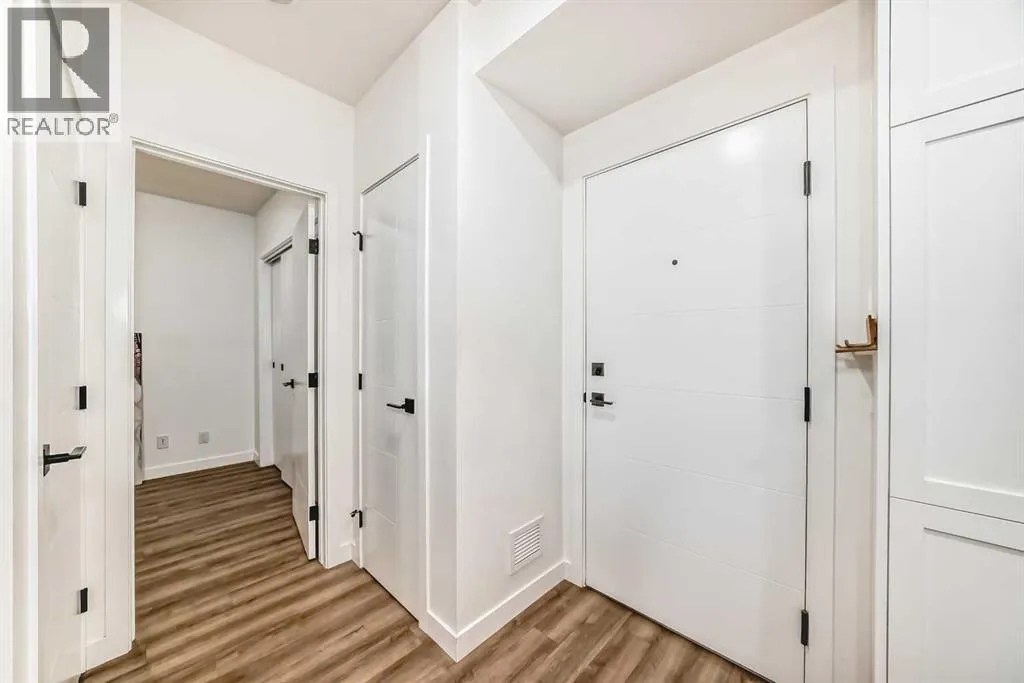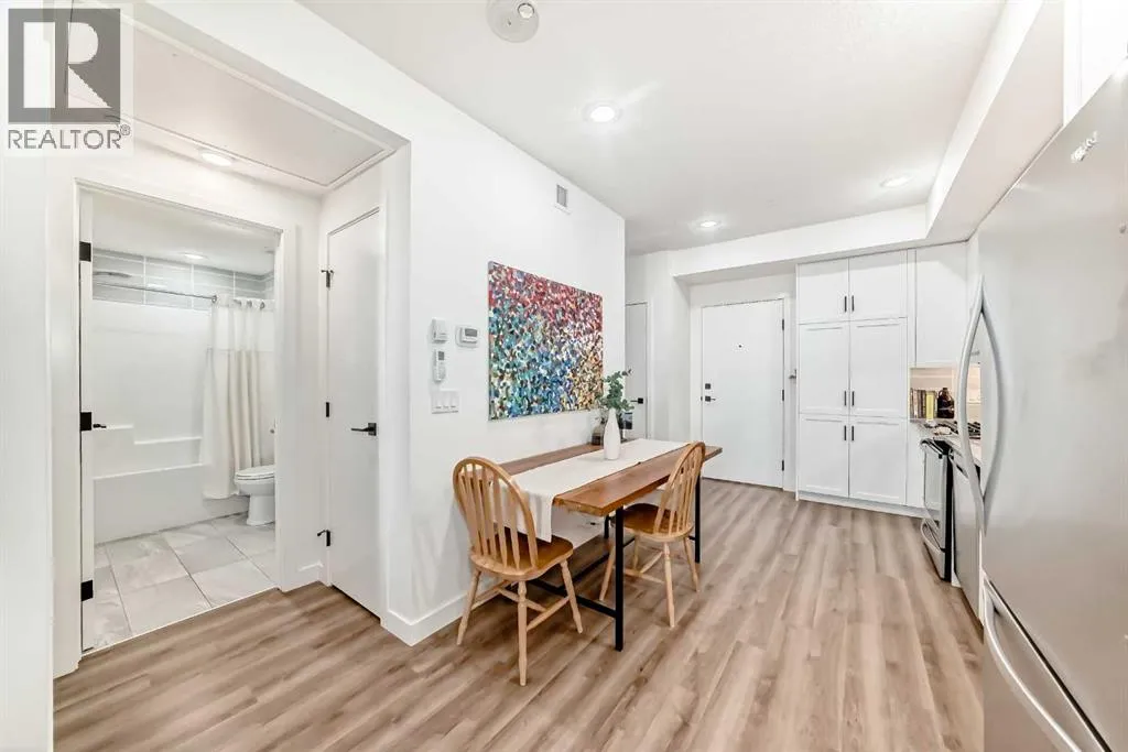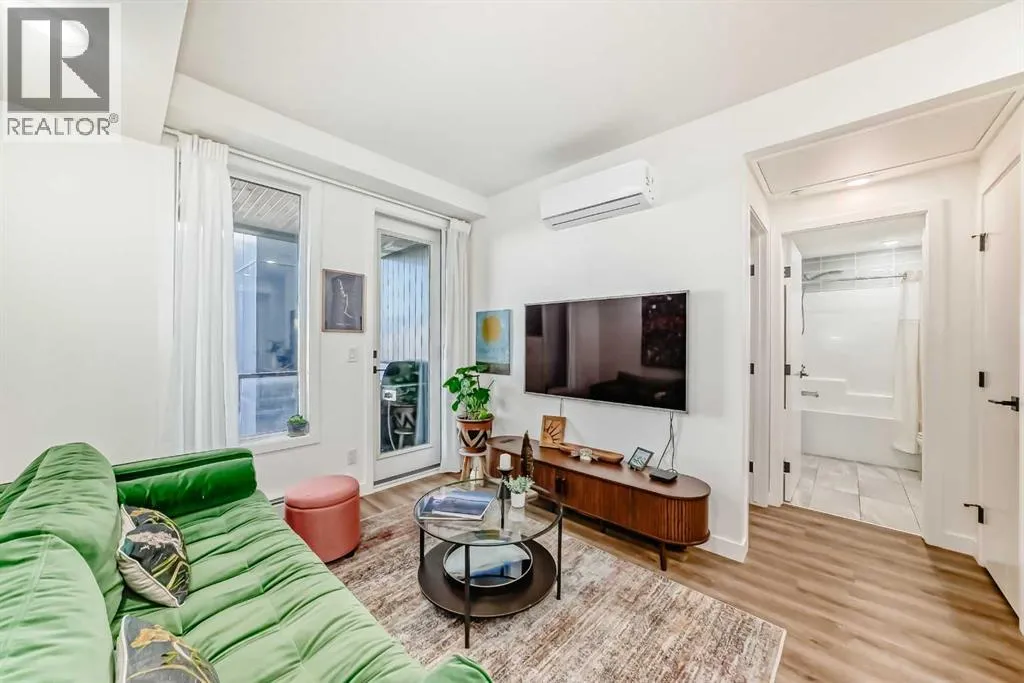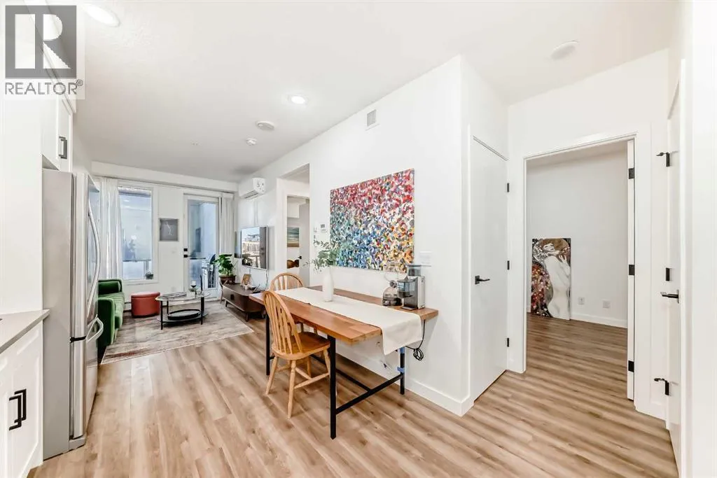Welcome to this gorgeous 1 bed/1 bath + den unit in the heart of the University District! The unit features an open concept living space w/9' ceilings, luxury vinyl plank throughout the living space and loads of light through the large windows. The kitchen/dining features gorgeous white cabinetry, quartz counters, gas range, stainless appliances and enough space for a farm style table. The living area is great for entertaining, with mini split AC for the summer and walks out to a good sized balcony with extra storage & gas line for your BBQ., perfect for al fresco dinners The good sized primary bedroom has room for a king sized bed and amazing closet fitted with California Closet built ins. The den/office is great for those who work or study from home & also feature closet built ins. The bright 4 piece bath & in unit laundry complete the property. As well, there is one titled parking spot and an assigned storage unit, underground visitor parking, bike storage & car wash. The August in University District features a warm contemporary lobby and large common room w/kitchen, perfect for celebrating with family & friends. The building is ideally located next to the Alt Hotel by Le Germaine & Charcut restaurant, one block from the Children's Hospital, just blocks from U of C, and a quick walk to Save On, Cineplex cinemas, fitness centres, and many more restaurants & services. As well, it's close to the Bow River, Bowness Park, the Calgary Farmers Market and Winsport., and an easy jaunt out to the mountains. Book your showing today! (id:27476)