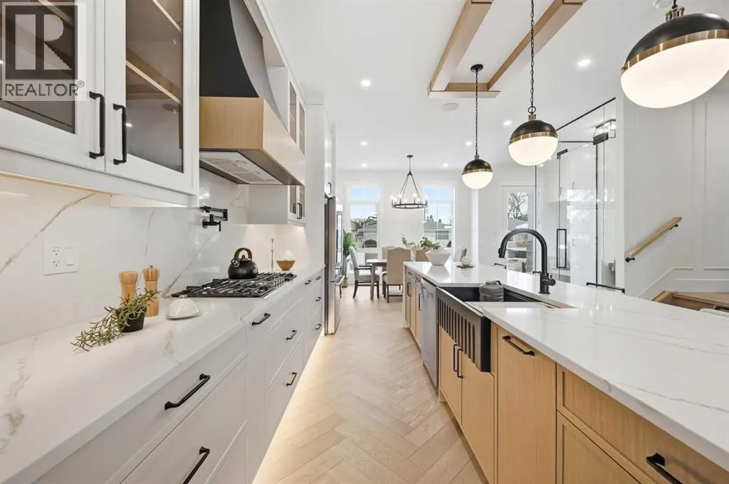 **OPEN HOUSE SATURDAY JAN 10TH BETWEEN 2PM-4PM** | **ONLY ONE SIDE AVAILABLE THE OTHER SIDE IS SOLD & QUICK POSSESSION AVAILABLE!** Welcome to this truly remarkable residence in the heart of the highly desirable Banff Trail community, where contemporary architecture meets meticulous craftsmanship. This property seamlessly blends luxury, functionality, and investment potential. South-facing backyard, and a 2-bedroom legal basement suite, this home offers unparalleled comfort, elegance, and versatility for families and investors alike. From the moment you step through the door, youâll be captivated by the open-concept layout, high-end finishes, and abundance of natural light. The main floor is an entertainerâs dream, designed to maximize functionality without compromising style. The central gourmet kitchen is the heart of the home, featuring stainless steel appliances, custom high-rise cabinetry, quartz countertops, a spacious built-in pantry, and a large island with bar seating. Whether youâre hosting dinner parties or enjoying casual meals with family, this kitchen is sure to impress. Adjacent to the kitchen, the dining area is flooded with light from oversized windows, creating a warm and inviting space for gatherings. The main-floor office, thoughtfully tucked away, provides the perfect environment for productivity, whether for remote work, study, or personal projects. A well-organized mudroom, complete with built-in storage and a bench, adds a layer of convenience, while the elegantly designed half bathroom enhances the functionality of this level. The upper floor continues to impress with its focus on luxury and practicality. The primary suite is a true retreat, featuring sky-high vaulted ceilings, a walk-in closet, and a spa-like 5-piece ensuite. The ensuite is a masterpiece in itself, offering a free-standing soaker tub, a walk-in rain shower, dual sinks, and premium finishes, creating a space that feels like your own private sanctuary. Two additional bedrooms , each with sophisticated tray ceiling accents, provide comfort and style for family members or guests. A spacious laundry room with a sink, counter space, and linen storage ensures organization and efficiency on this level. One of the homeâs standout features is the fully developed legal basement suite, which offers a host of possibilities. With its own private side entrance, this legal suite is designed for maximum privacy and functionality. It includes two spacious bedrooms, a sleek kitchen with quartz countertops and modern finishes, a stylish 4-piece bathroom, and its own laundry facilities. Whether used as a mortgage helper, a rental property, or a space for extended family, this legal suite is a valuable addition to the home. Just steps from the Banff Trail LRT station, quick and easy access to downtown Calgary, shopping, dining. The University of Calgary is only minutes away! (id:27476)