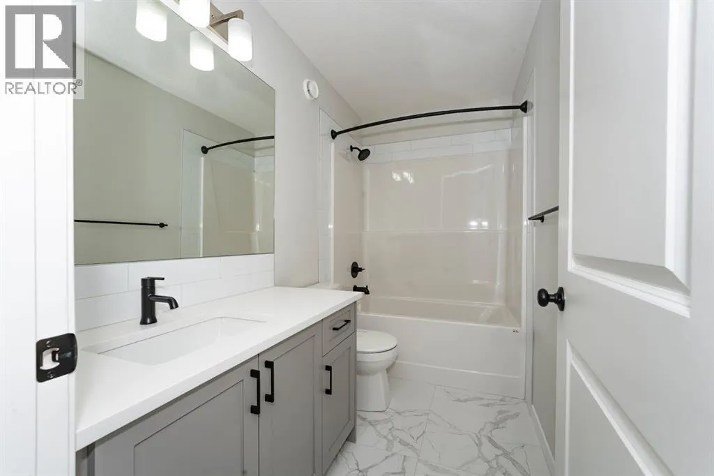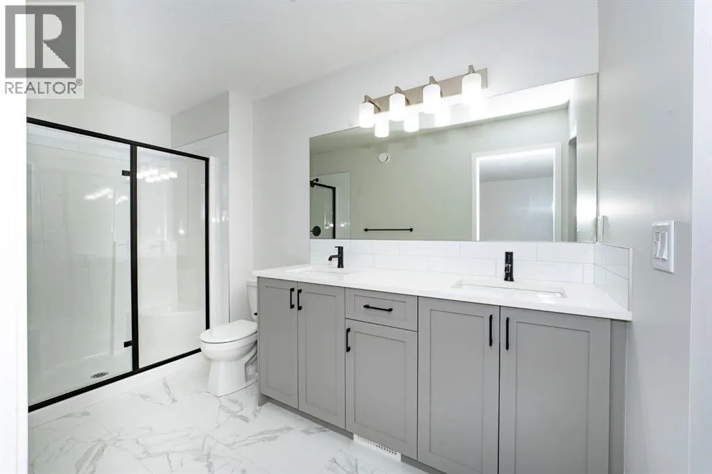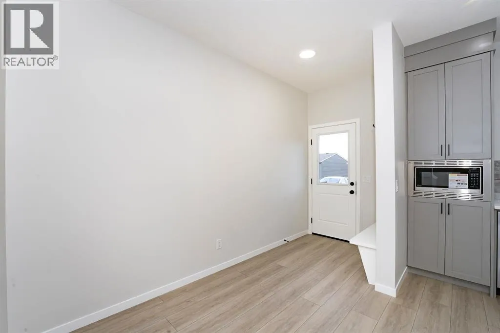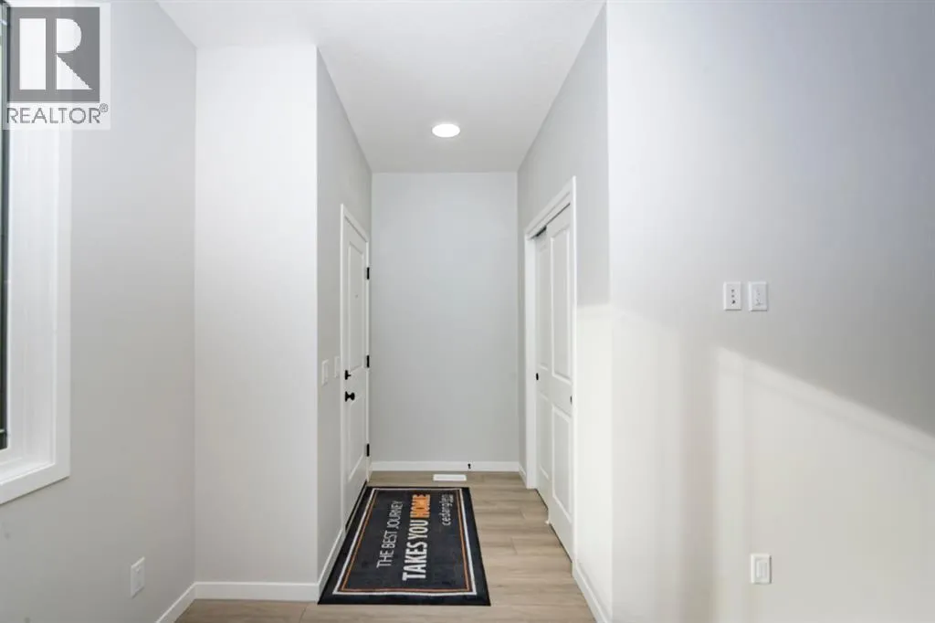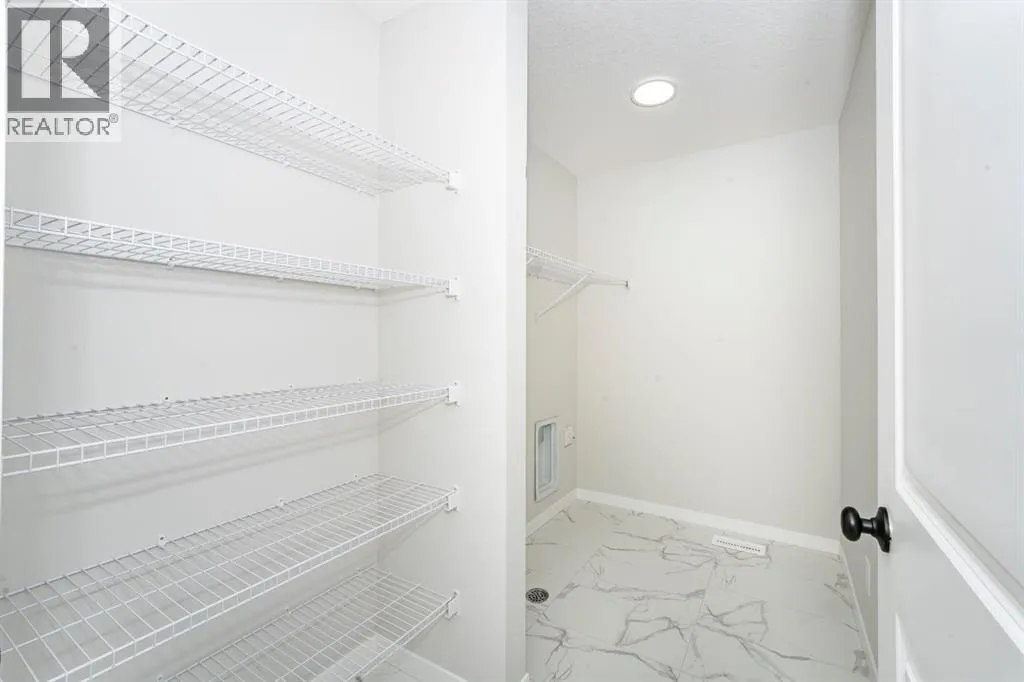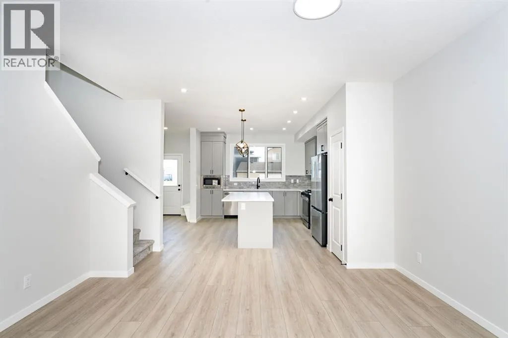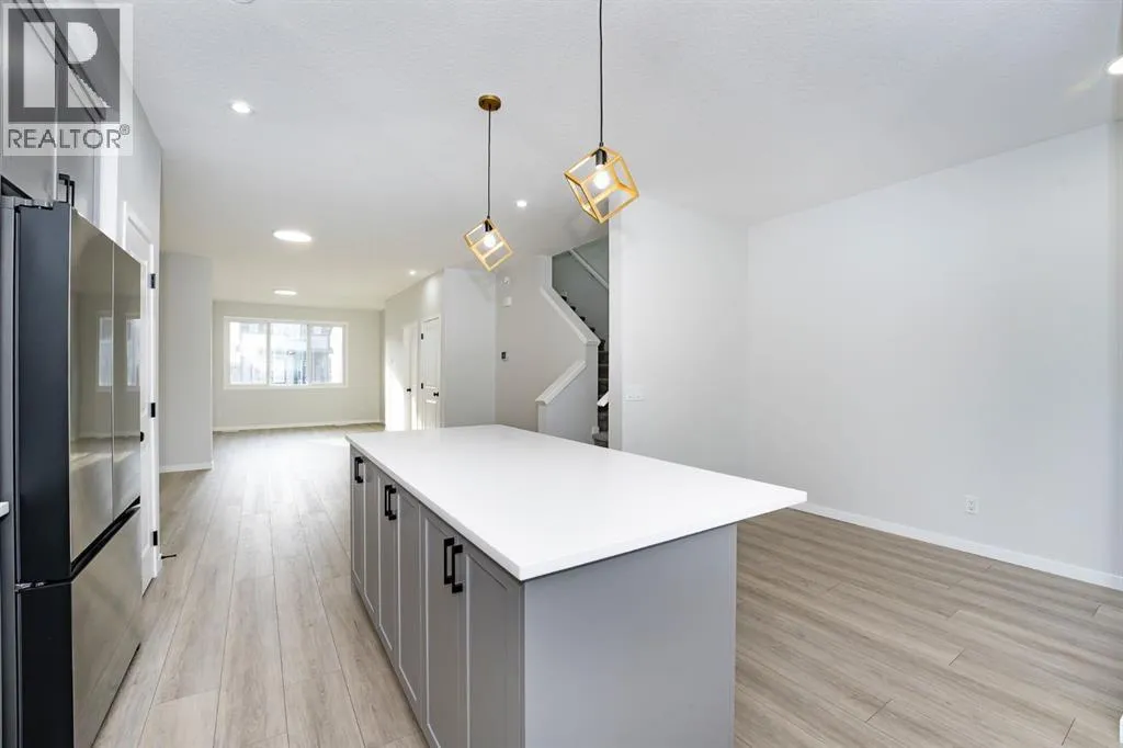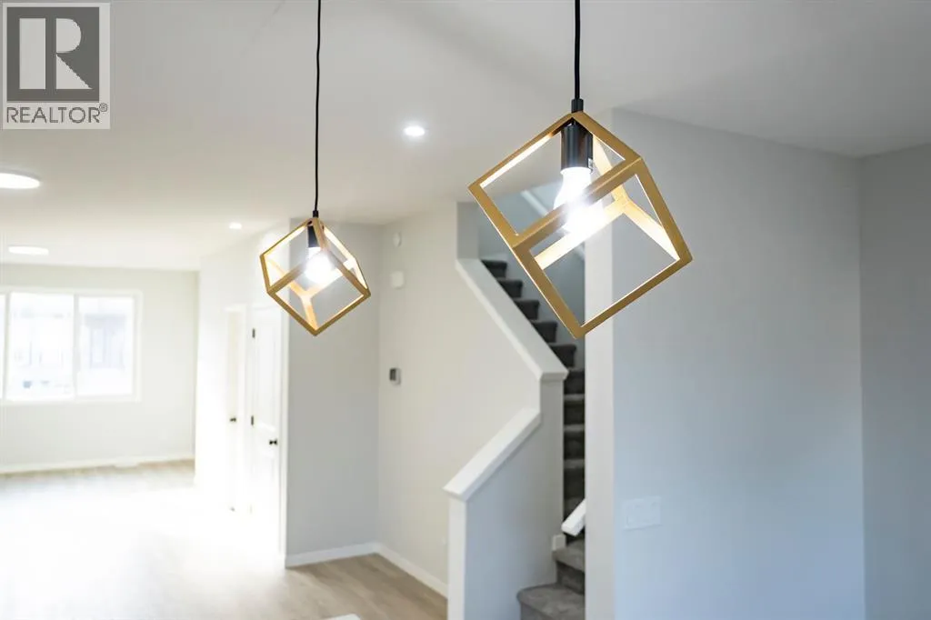 Welcome to this beautifully finished 1,738 sq ft home in the vibrant community of Livingston. Designed with modern living in mind, this three-bedroom, two-and-a-half-bath property combines style, comfort, and function.The main floor features 9-foot ceilings, luxury vinyl plank flooring, and a bright open-concept layout, perfect for everyday living and entertaining. The chef-inspired kitchen is complete with quartz countertops, extended upper cabinetry, stainless steel appliances, a built-in microwave, a chimney hood fan, and a knock-down ceiling finish.Upstairs, you will find three generously sized bedrooms, including a primary suite, a spa-like ensuite with dual sinks and a walk-in shower, and a spacious walk-in closet. A full bathroom and a convenient laundry room with extra shelving complete the upper level. Plenty of natural light and thoughtful upgrades throughout add to the homeâs appeal. A separate side entrance provides direct access to the unfinished basement. With its modern finishes, functional layout, and sought-after location, this home is an ideal choice for families. (id:27476)