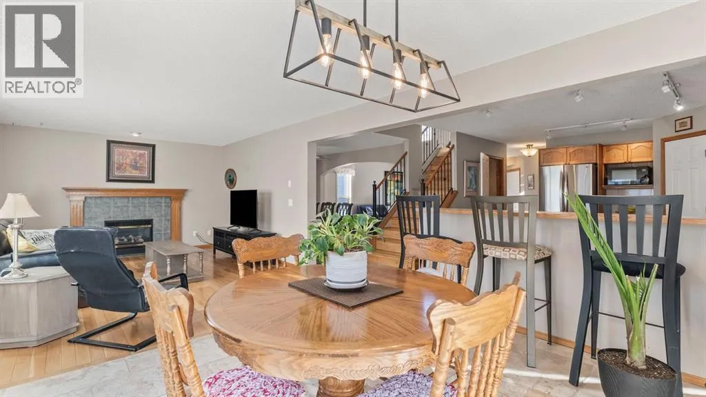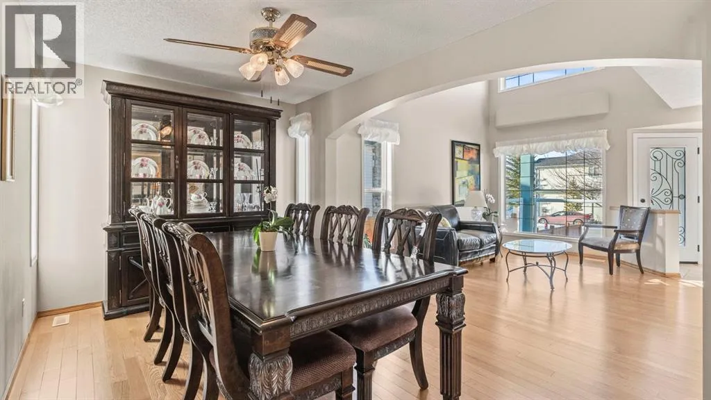 Welcome to this beautifully maintained two-storey home in the highly sought-after community of Rocky Ridge, offering 2,201 sq. ft. of thoughtfully designed living space above grade, plus a fully developed basement. With mountain views, abundant natural light, and an ideal family-friendly layout, this home blends comfort, functionality, and timeless style in one of northwest Calgaryâs most desirable neighbourhoods. The main floor impresses with soaring ceilings, expansive windows, and a bright, open layout that feels both spacious and welcoming. A large living room with fireplace provides a cozy setting for everyday living, while the formal dining area is perfectly positioned for hosting family dinners and special occasions. The well-appointed kitchen features ample cabinetry, generous counter space, a central island, and exceptional storageâdesigned for both practicality and effortless entertaining. A convenient main-floor laundry room, 2-piece powder room, and central air conditioning complete this level, ensuring everyday comfort and ease. Upstairs, a charming loft overlooks the main living area, offering a flexible space ideal for a home office, reading nook, or additional family lounge. The upper level is bathed in natural light and features three generously sized bedrooms and two full bathrooms. The spacious primary retreat is a true highlight, complete with large windows, excellent closet space, and a spa-inspired ensuite featuring a soaker tub, separate shower, and bright double-vanity areaâyour own private place to unwind. The fully developed basement expands the living space with a fourth bedroom and a 3-piece bathroom, making it perfect for guests, teenagers, or a private home office, along with additional room for recreation or hobbies. Outside, enjoy mountain views and a low-maintenance yard, while the attached garage provides everyday convenience and additional storage. The homeâs bright interior, easy-care finishes, excellent storage throughout, and th oughtful layout reflect the ownersâ pride of ownership. Located in the vibrant community of Rocky Ridgeâclose to parks, walking paths, schools, shopping, and transitâthis home offers exceptional value, space for the whole family, and a lifestyle youâll love. Bright. Spacious. Exceptionally functional. This is Rocky Ridge living at its finest. (id:27476)