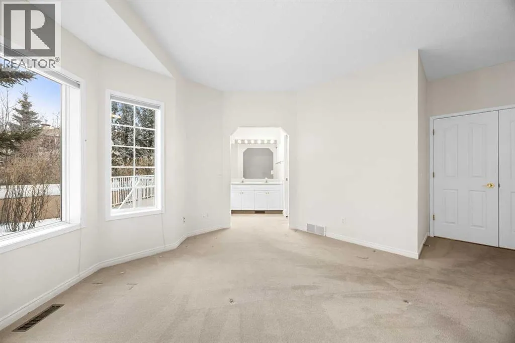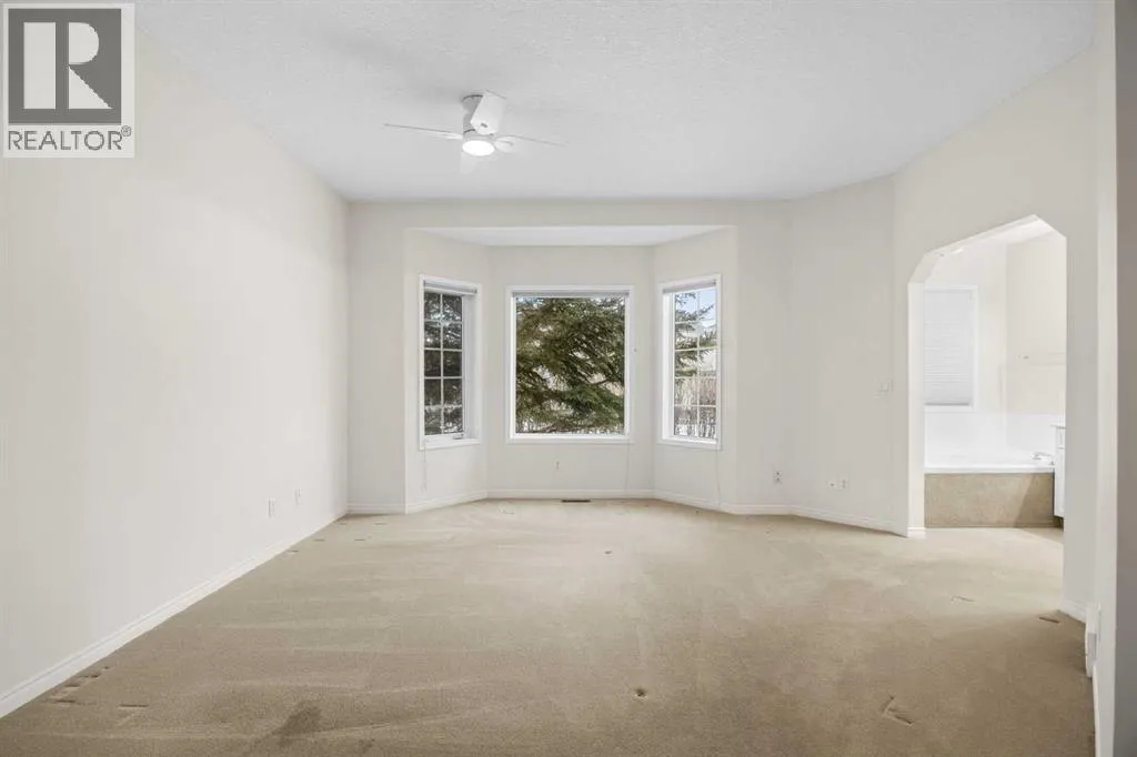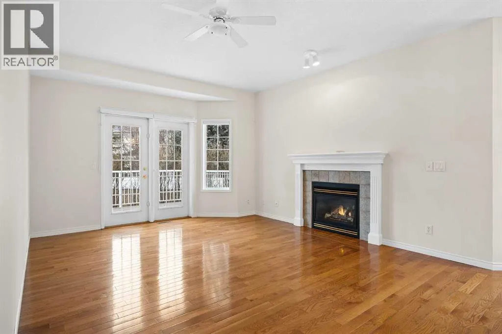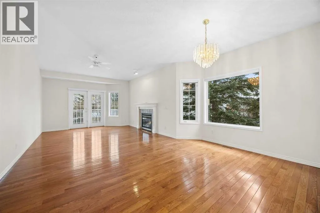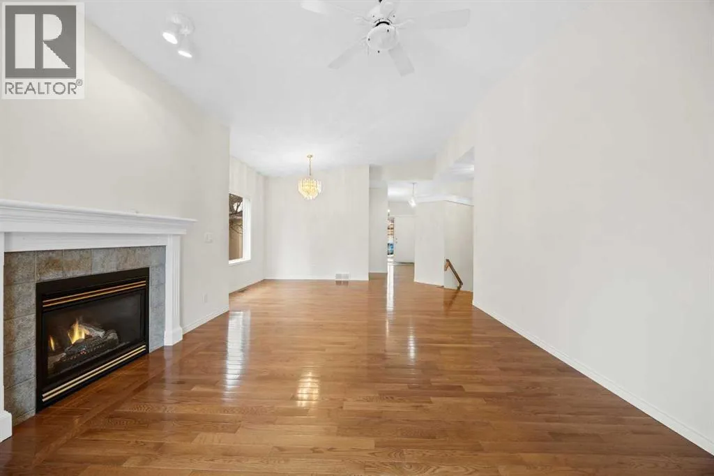 Step inside this villa-style bungalow that feels both spacious and welcoming. The quiet, mature neighbourhood in the established southwest community of Coach Hill is known for its elevated setting, tree-lined streets, and easy access to downtown, West Calgary amenities, and major roadways.The bright white kitchen provides plenty of counter and storage space, with room for everyday meal prep and casual dining. Refaced cabinetry, an eating nook, and a new Kitchen Aid oven & microwave are included. Beautiful oak pre-finished hardwood is found throughout the main floor kitchen and family room. A large window in the family room provides an abundance of light, and the natural gas fireplace is perfect for those cold winter nights. Double doors open to the balcony, providing an additional entertaining or relaxing area.The primary suite is generously sized, and includes a bay window, walk in closet, corner tub and separate shower. Also upstairs, you will find an additional bathroom, and a laundry room with storage and a sink.Extra living space in the developed basement provides the potential for additional storage, a home office, a hobby room or gym. This bonus area is a perfect set-up for family to visit and stay. A natural gas fireplace, 2 large bedrooms, a 4-piece bathroom, and rec room complete this space. Outdoors, you will find a spacious yard with mature trees situated on a corner pie shaped lot. Enjoy maintenance-free living as the exterior (snow removal, recycling, tree care, and underground sprinklers) is maintained by the management company.Additional inclusions to note are Air Conditioning, natural gas at the deck, epoxy garage floor coating, hose bib in the garage, and central vacuum.This functional home offers a practical layout designed for comfortable everyday living, with generous living spaces and plenty of natural light throughout. Enjoy the ease of single-floor living - ideal for seniors seeking comfort, accessibility, and peace of mind. Whether youâ re downsizing, upsizing, or looking for a low-maintenance option in a great location, this property presents a perfect opportunity to put your own touches on a home in a highly desirable area.Residents enjoy close proximity to walking paths, parks, transit, shopping, and quick access to Bow Trail and Sarcee Trail, making it easy to get around the city while still enjoying a peaceful residential setting. A great option for buyers looking to get into Coach Hill and enjoy the convenience of southwest living. (id:27476)