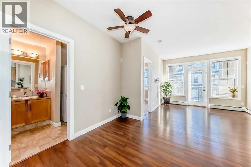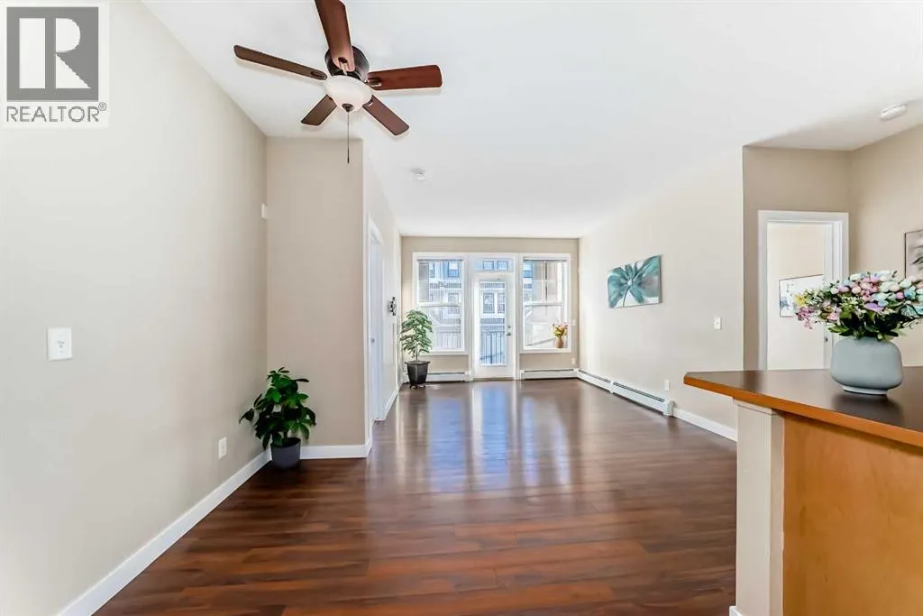 Excellent opportunity for comfortable living or investment. This well-maintained 2-bedroom, 2-bathroom corner unit is located in a quiet, modern building in the highly desirable Panorama Hills community. It includes a titled heated underground parking stall with an adjacent storage locker, offering both convenience and value. The bright open-concept living, dining, and kitchen area features 9-foot ceilings, creating a spacious and welcoming atmosphere. The kitchen is equipped with a large breakfast-bar island, ample cabinetry, and generous counter spaceâperfect for both everyday living and entertaining. The east-facing balcony provides abundant natural light and an ideal spot to enjoy your morning coffee or BBQ. The primary bedroom features a 4-piece ensuite and a rare walk-in closet with a side window, adding extra light and comfort. The second bedroom is generously sized and conveniently located next to another 4-piece bathroom, along with in-suite laundry for added practicality.Enjoy a prime location within walking distance to elementary and junior high schools, scenic ponds, and walking trails. Close to shopping centres, banks, restaurants, and playgrounds, with easy access to Stoney Trail, the airport, and the mountains. (id:27476)