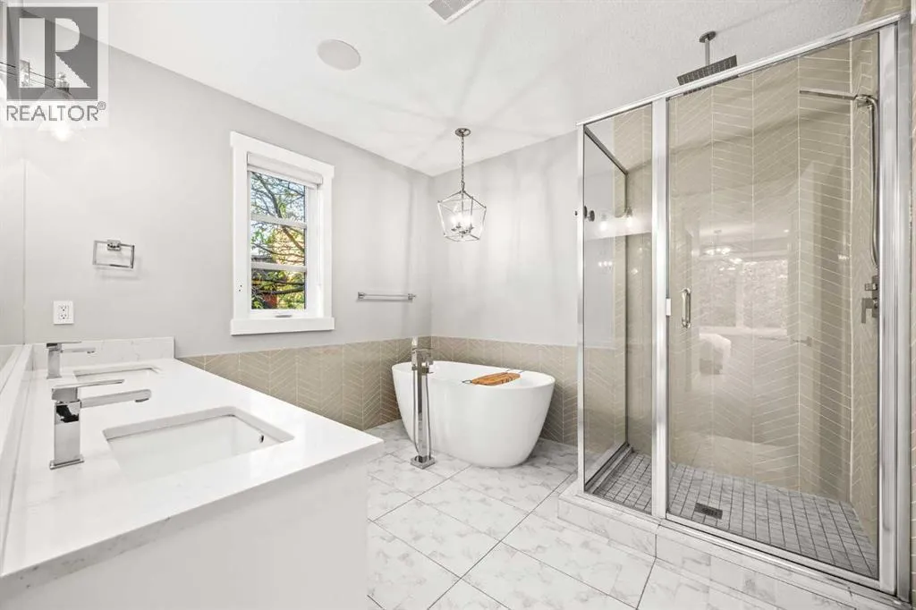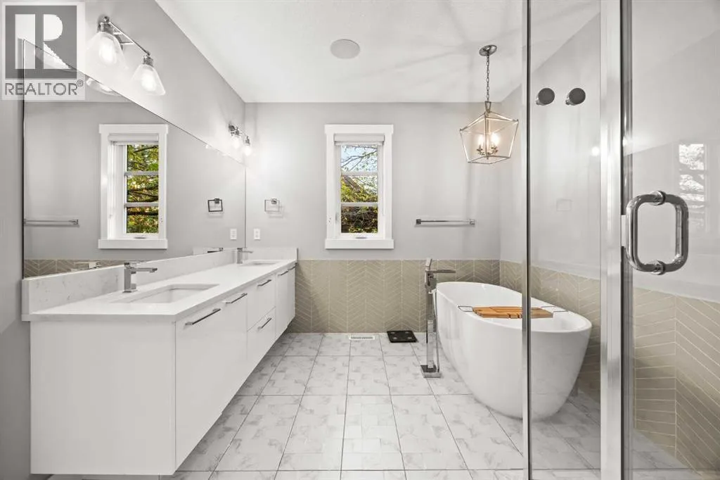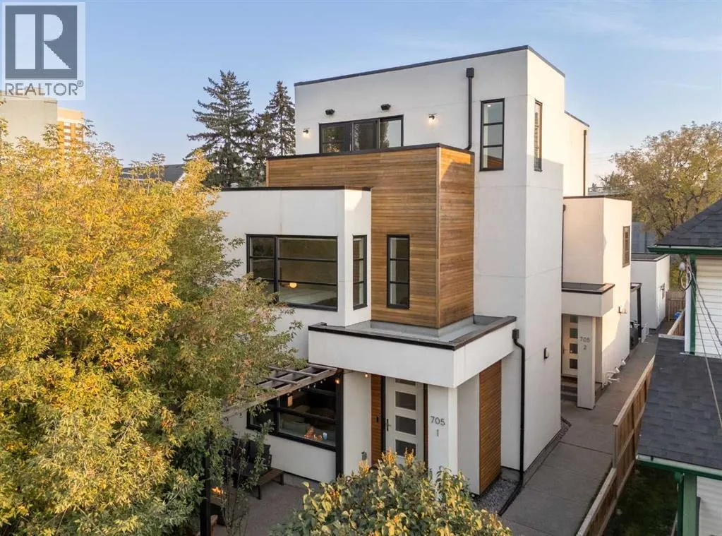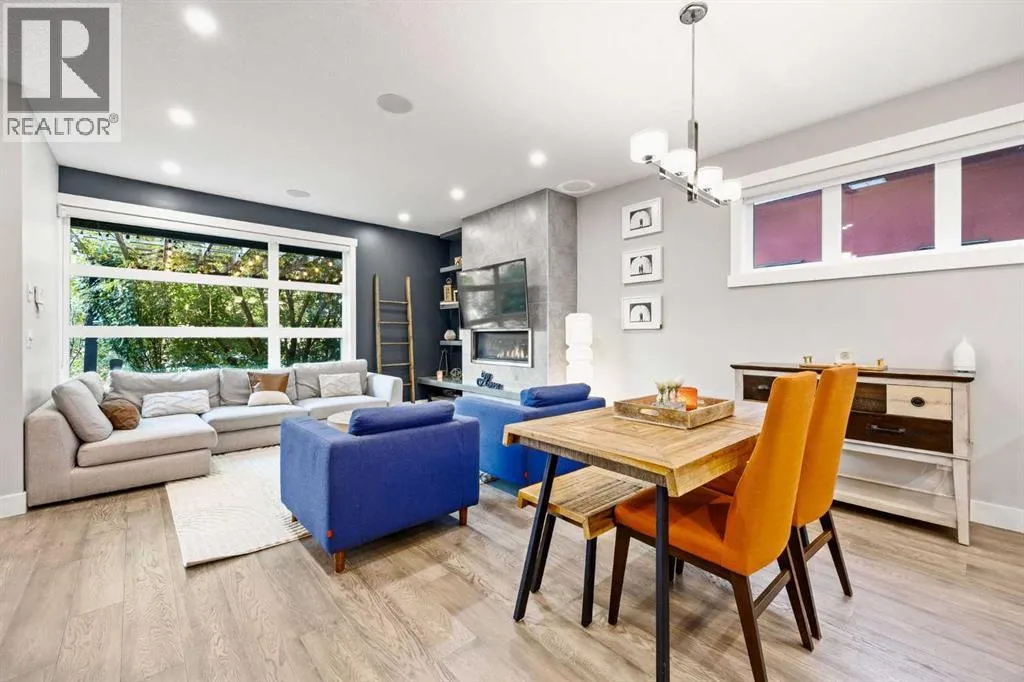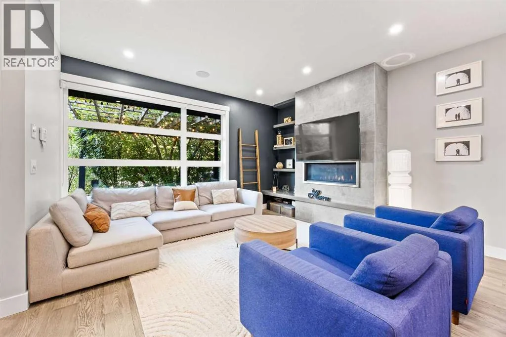Incredible opportunity to own one of the best priced semi-detached luxury infills in the inner city. A beautiful home in the heart of Bridgeland offering all the perks of city living with no condo or HOA fees. A 5 minute walk from Downtown, Bow River Pathway, and all the amenities the beautiful community of Bridgeland has to offer. Walk or bike to work with the bike lane directly in front of your home. This is not your typical semi-detached property, offering 3 bedrooms + an office with an adjacent rooftop balcony & 3.5 baths, CENTRAL AC, situated on a 36-foot-wide lot, it offers a noticeably more open and spacious feel throughout. Perfectly situated across from Flyover Park, this home features over 2,400 sq. ft. of developed living space designed with comfort and style in mind. Upon entering, youâll immediately notice the 9 ft ceilings and engineered hardwood flooring that flow seamlessly across the main floor. The bright, wide living room is anchored by a tile-surround gas fireplace with custom built-in shelving, extending naturally into the dining area and open concept gourmet kitchen. The kitchen showcases beautiful quartz countertops, modern white cabinetry, a subway tile backsplash, and stainless steel appliances. A tucked away pantry and 2-piece bathroom complete the main level. The open riser staircase serves as an architectural focal point connecting all levels. On the second floor, youâll find the serene primary retreat, complete with a walk-in closet and 5-piece spa inspired ensuite. A quiet reading nook within the primary bedroom captures the morning sun through large, bright windows. This level also includes a spacious laundry room for added convenience. Heading up to the third floor, natural light floods the hallway with beautiful downtown views. The open bonus room offers flexible space for a home office, studio, or entertainment area, and opens onto the rooftop deck equipped with a built-in gas line and stunning city skyline views. This level is comp lete with an additional bedroom and a 4-piece bath overlooking downtown. The fully developed basement includes a spacious media room, perfect for movie nights, a fully equipped wet bar, bedroom, and 4-piece bathroom, ideal for guests or extended family.Out front, your private patio is enveloped by mature trees that naturally screen the space from the street, creating a serene and intimate retreat in the heart of the city. Complete with a built-in gas line, itâs the perfect setting for summer BBQs or quiet evenings outdoors. The detached garage offers plenty of space for your car parking needs and generous built in storage for bikes, tools, and all your outdoor essentials. A Walk Score of 94 and a Bike Score of 97, this home offers unbeatable convenience. Steps from Blush Lane Organic Market, Bridgeland Market, Lukeâs Drug Mart, UNA Pizza, Village Ice Cream, coffee shops & a variety of beloved local spots. Donât miss this opportunity. Homes like this with this location rarely come to market in Bridgeland. (id:27476)