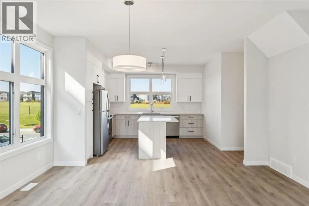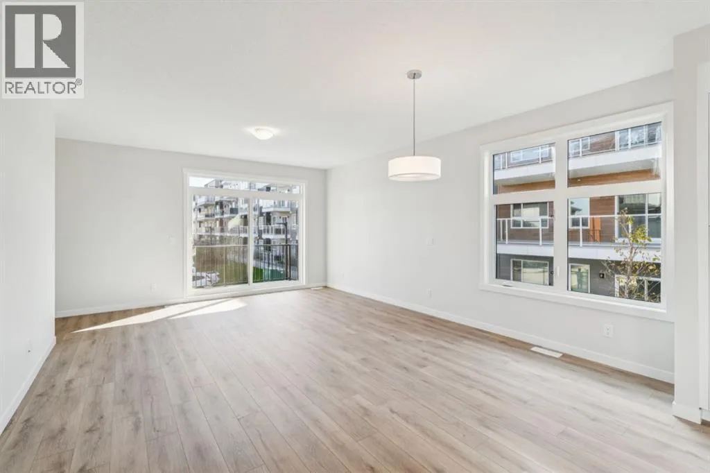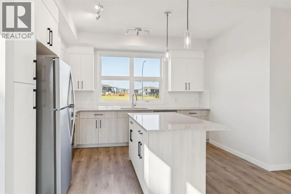 Welcome to Sonoma at Belmont!This brand-new end-unit townhome blends California-inspired design with modern comfort, offering 1,540 sq. ft. (RMS) of bright, stylish living space.The main floor is designed for both everyday living and entertaining, with a sunlit living room framed by oversized windows. The dining area flows into a sleek chefâs kitchen featuring quartz countertops, two-tone European-style cabinetry, stainless steel energy-efficient appliances, wide-plank LVP flooring, and designer lighting.Upstairs youâll find three bedrooms, two full bathrooms, and a convenient laundry closet. The primary suite is a true retreat with a large walk-in closet, window for natural light, and an ensuite boasting a deep soaker tub. Added conveniences include balcony storage, and extra garage space for seasonal gear.Built by Morrison Homes, a 16-time Builder of the Year, this home is set within Belmontâa community created for connection. Enjoy pathways, parks, playgrounds, and nearby shopping, plus quick access to Stoney Trail and Macleod Trail for an easy commute. On weekends, take in the action at Spruce Meadows or catch a Cavalry FC game at ATCO Stadium.Pet-friendly and rental-friendly, this townhome is ideal for both homeowners and investors.Discover your next chapter at Sonomaâwhere style, comfort, and convenience come together. (id:27476)