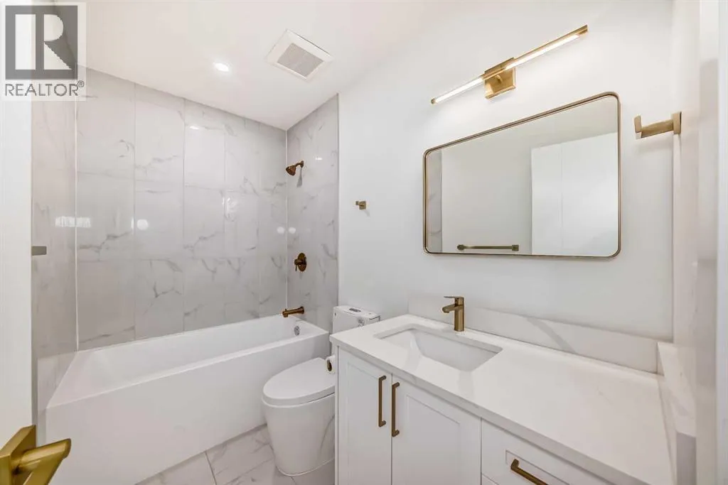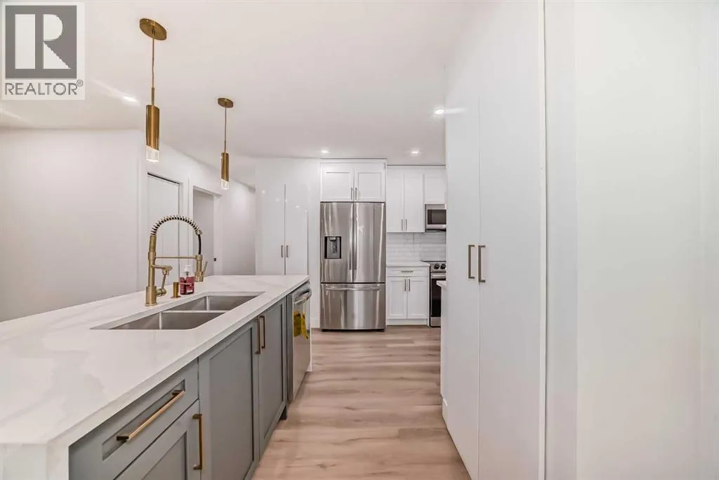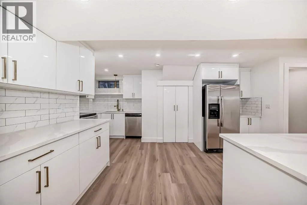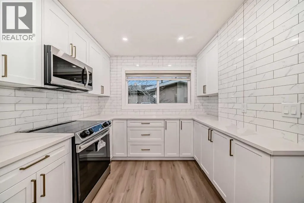 Beautiful, substantially renovated and remodeled bungalow in a superb Huntington Hills location. Original floor plan has been opened up providing spacious contemporary living spaces. 4 bedrooms up plus a new LEGAL 3-bedroom suite down. Luxury vinyl plank flooring stretches throughout the main and lower level. The oversized central island highlights the substantial kitchen. Ample amounts of crisp white cabinetry and beautiful quartz countertops. Classic subway tile backsplash. New stainless-steel appliances include a French door fridge. The adjacent open dining and living room areas are bright and spacious. Lovely primary suite features a 2-piece ensuite bath. New main bath contains a soaker tub/shower with tile surround, tiled floor and new white vanity. The lower legal suite offers a separate entrance and stress-free generational living or mortgage helper. The open plan is highlighted by a large white kitchen with loads of cabinet space and quartz countertops. Central island and stainless-steel appliances round out the kitchen. Large adjacent rec room/living room. 3 more generous bedrooms plus another new full bath complete the lower level. Updated landscaping included the removal of some intrusive trees, new deck, some new concrete walkways, new retaining wall, new sod and exterior paint and stucco. Interior updates included all new plumbing up and down, New electrical panel, new wiring down, most windows are new and window coverings, all new kitchens and baths, new plumbing hardware, new light fixtures, new interior doors, trim, baseboard and casing, new paint, new knockdown ceilings, new flooring. Quiet location backing onto a well treed greenspace. Minutes to all levels of schools, major road arteries, public transit & shopping. The total package! (id:27476)